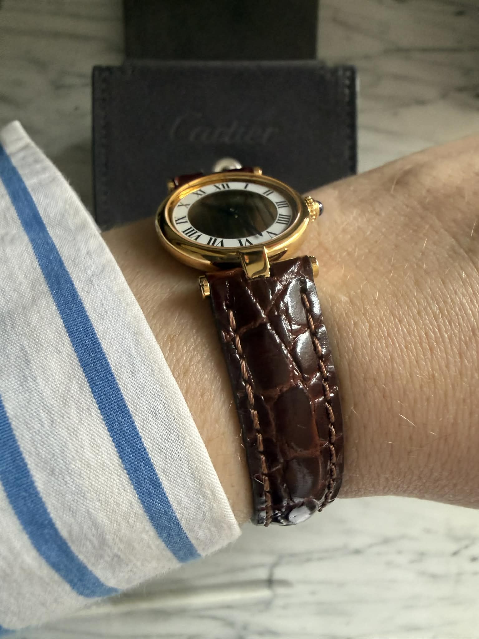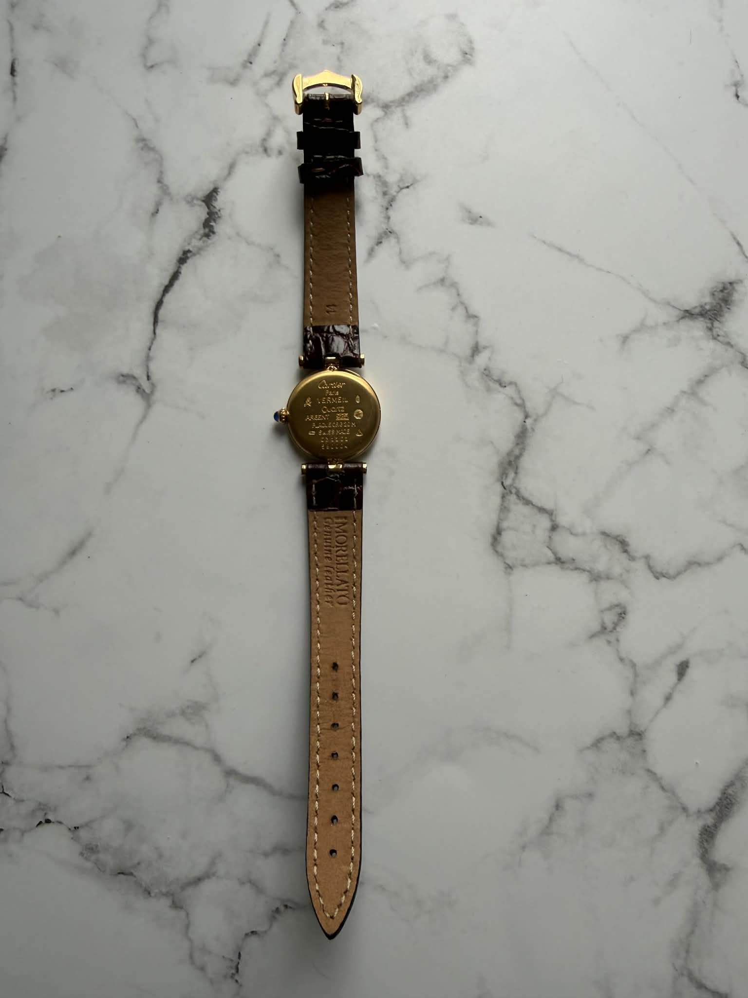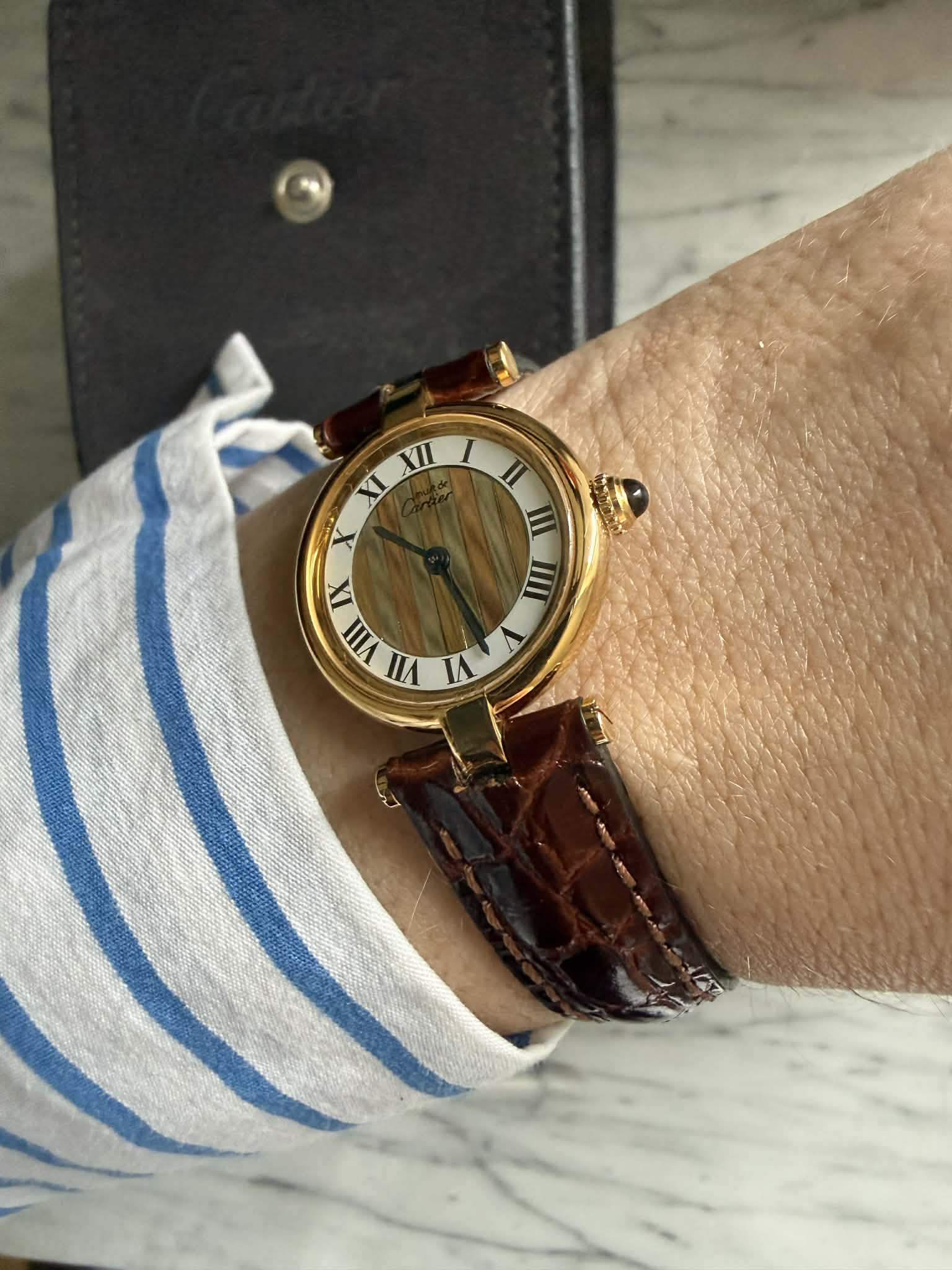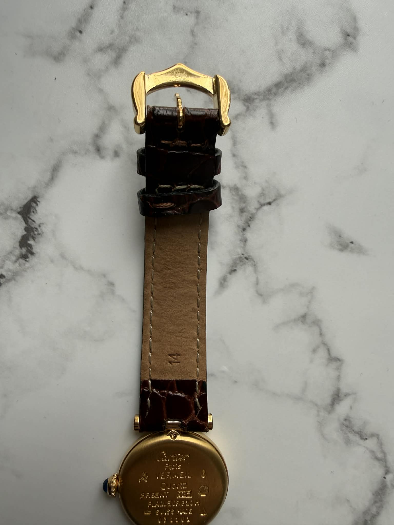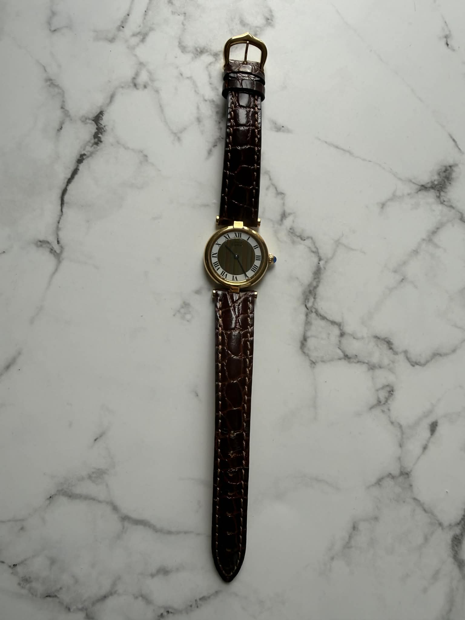 Oryginalny zegarek Cartier Must Vendome Vermeil w eleganckim i bardzo rzadko spotykanym połączeniu trzech kolorów! Piękny, ponadczasowy dodatek dla miłośników luksusowych akcesoriów. Model kwarcowy, w pełni sprawny, z wymienioną baterią. Zegarek idealny na prezent lub do kolekcji.