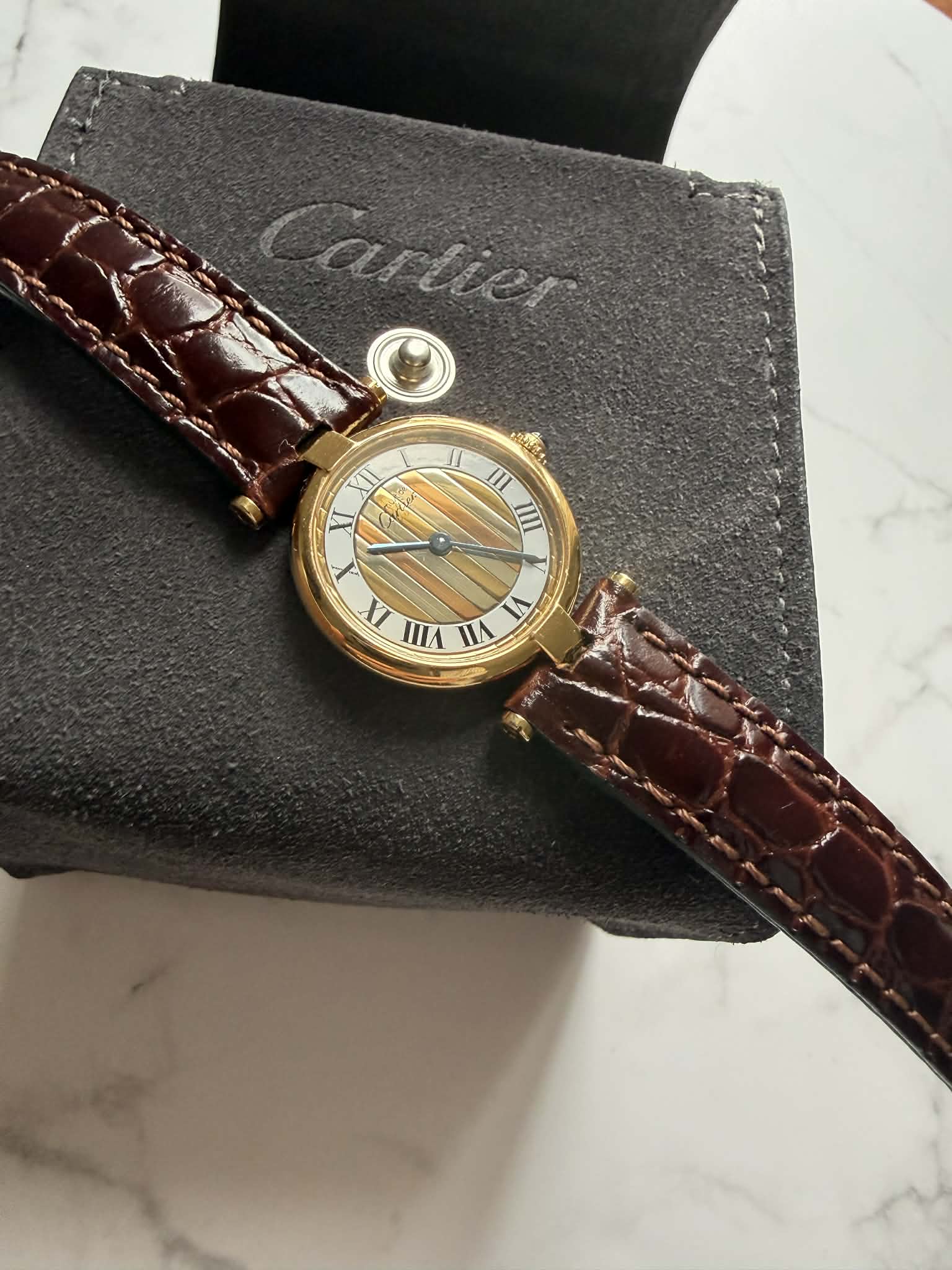 Cartier Must Vendome Vermeil, trzykolorowy, koperta 22mm, pokryty 20 mikronami złota, szwajcarski zegarek vintage, + oryginalny box