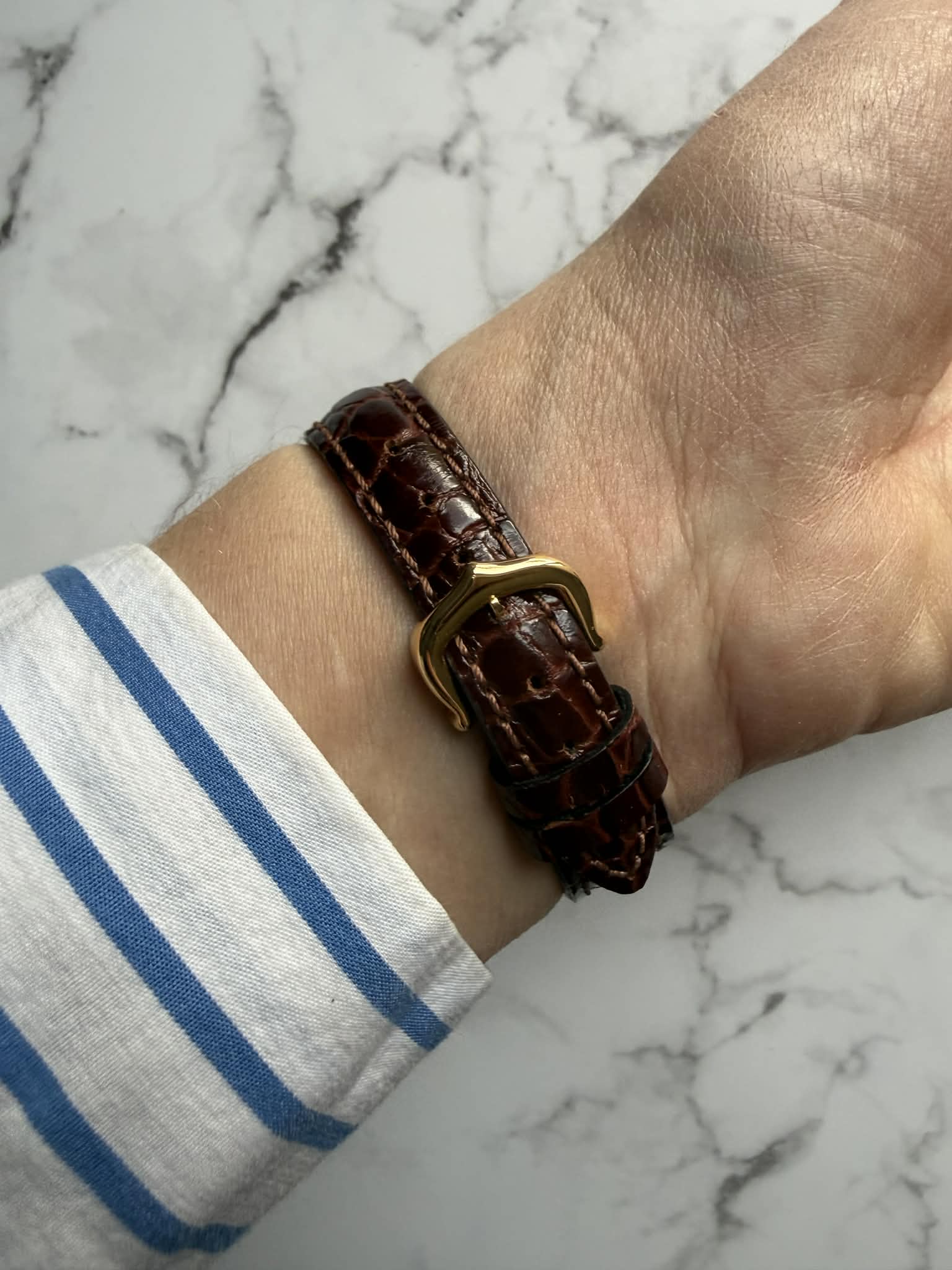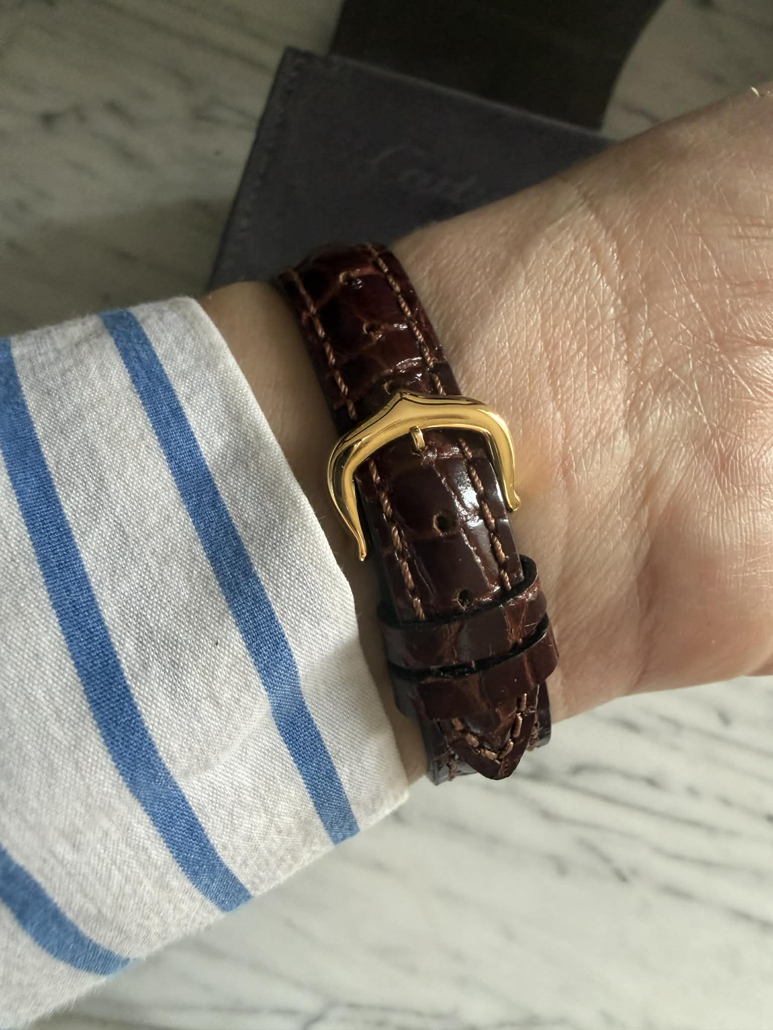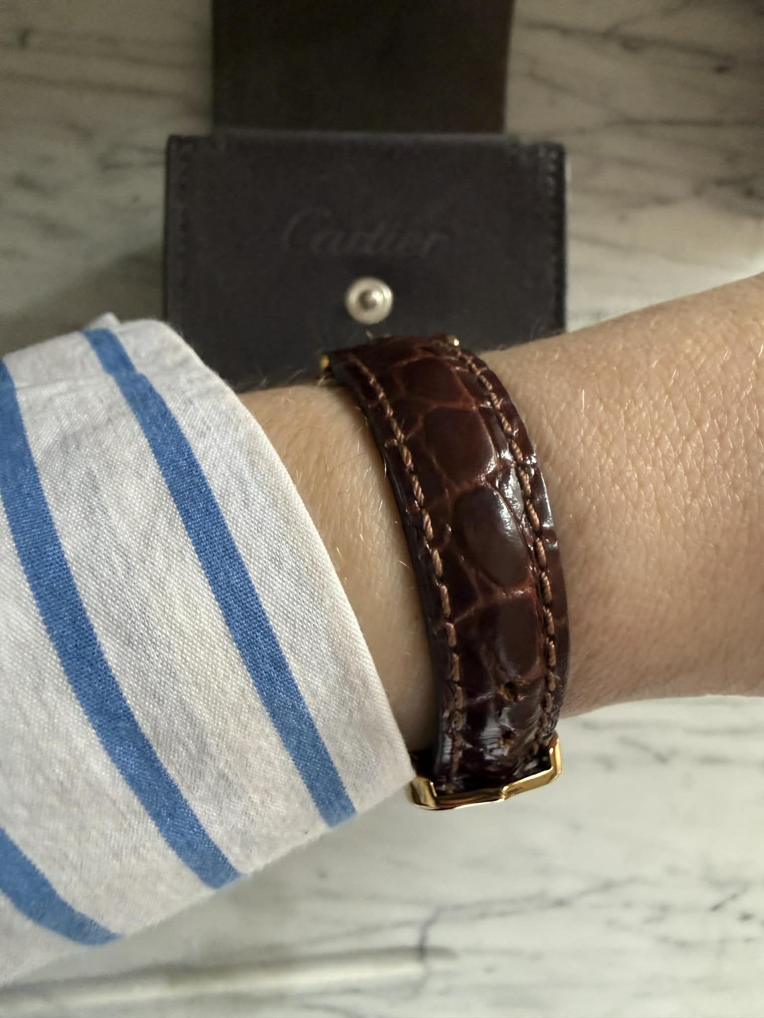 Ten zegarek Cartier to połączenie elegancji, precyzji i ponadczasowego stylu. Doskonale komponuje się z biżuterią w odcieniach srebra i złota. Idealny zarówno do codziennego noszenia, jak i na wyjątkowe okazje.