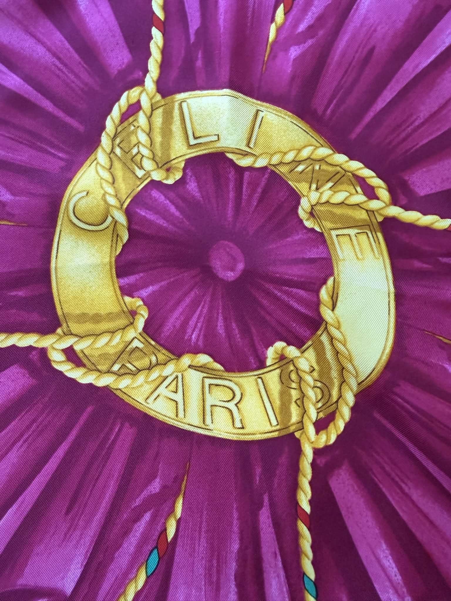 Elegancka jedwabna chusta marki Celine z charakterystycznym motywem wzoru logo marki, utrzymana w szlachetnej kolorystyce różu i niebieskiego. Wykonana w 100% z wysokogatunkowego, mięsistego jedwabiu, który pięknie się układa i podkreśla luksusowy charakter dodatku.