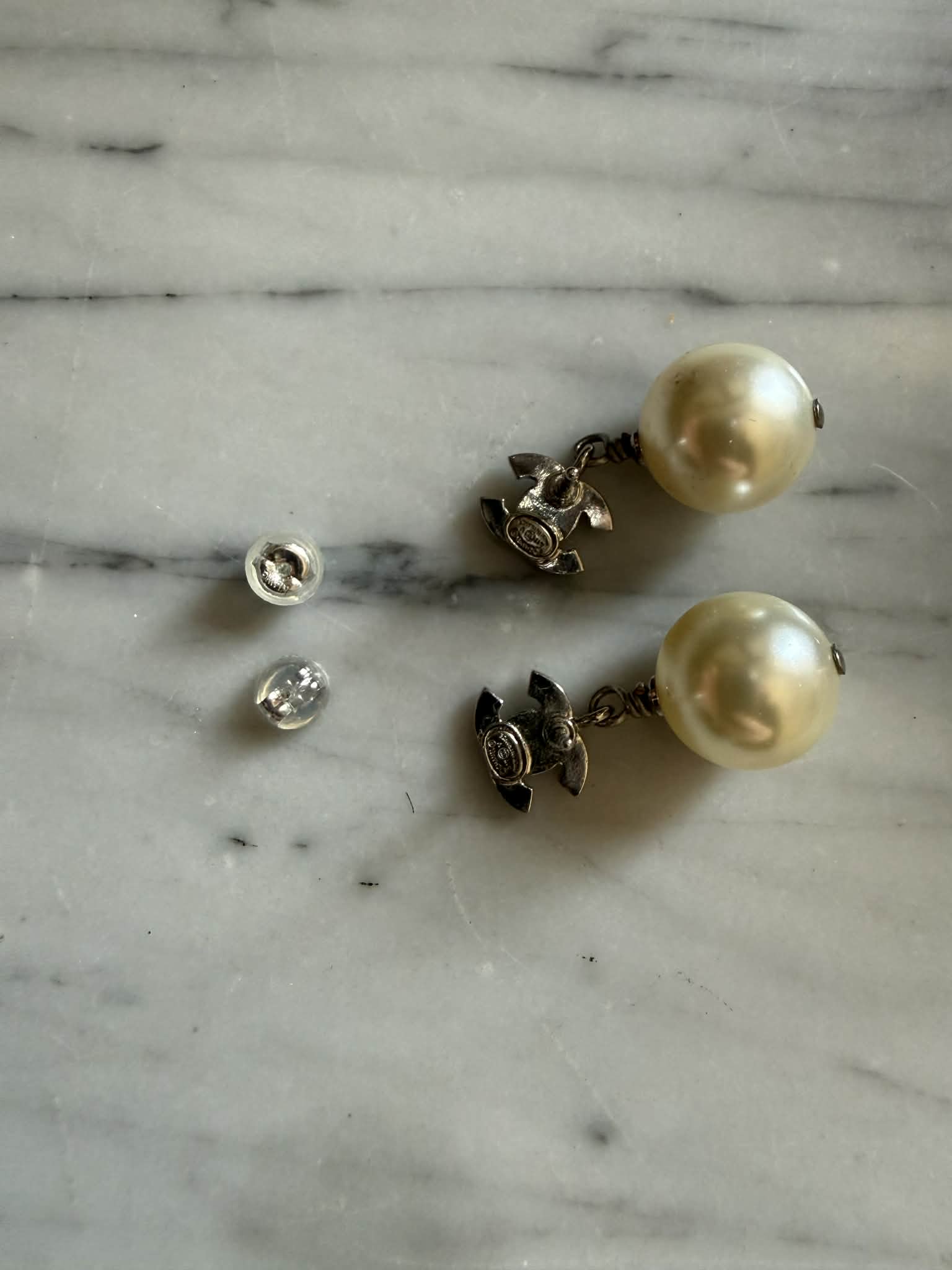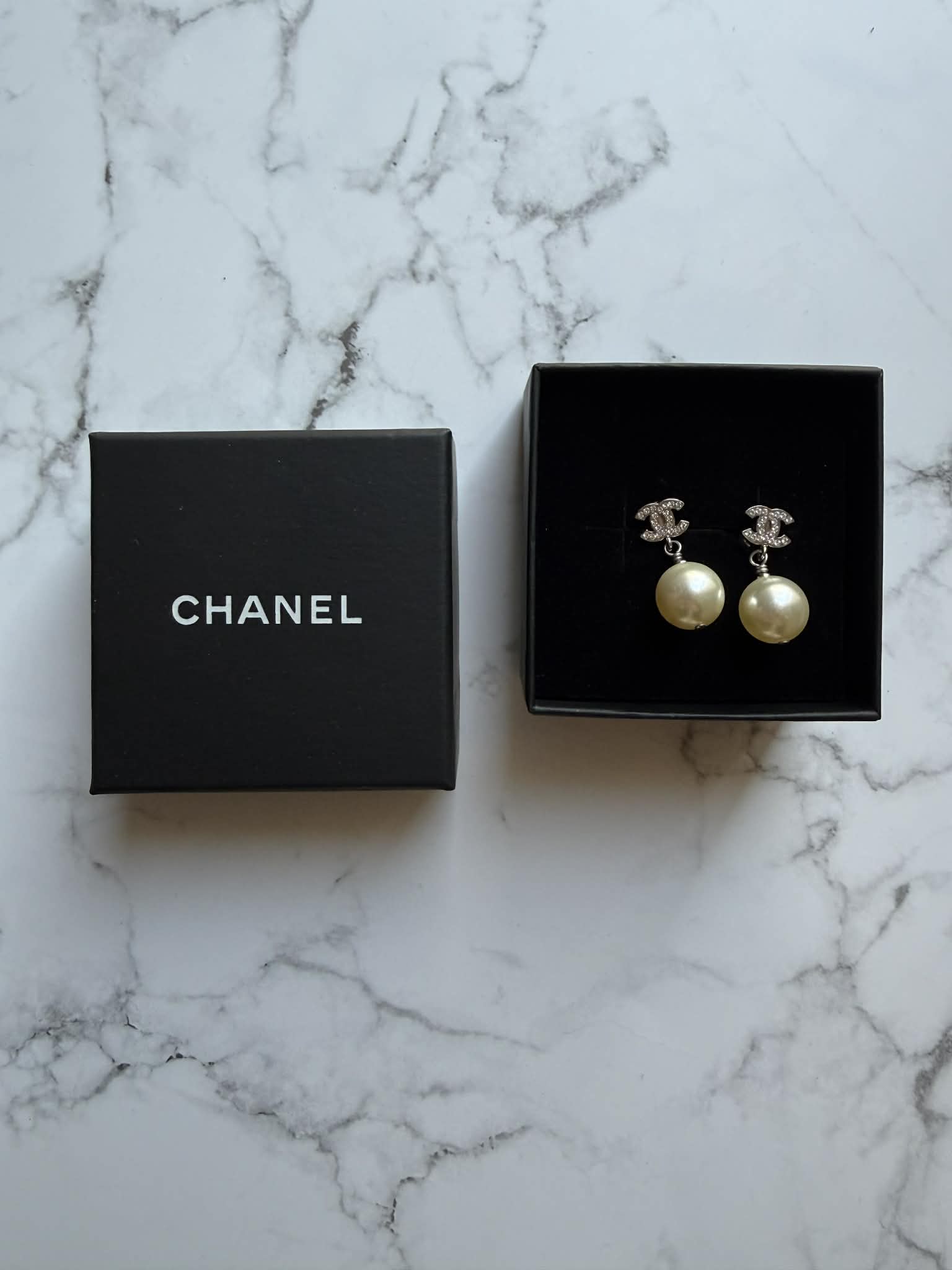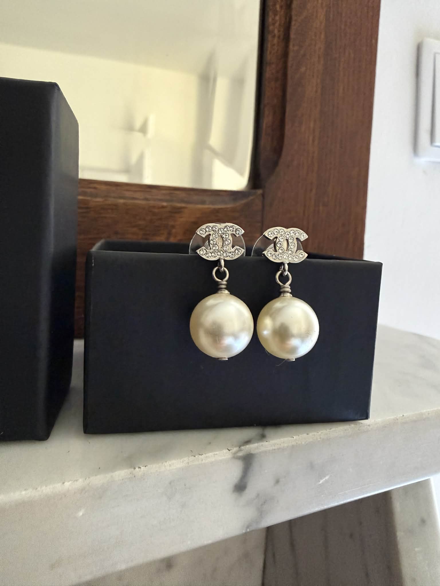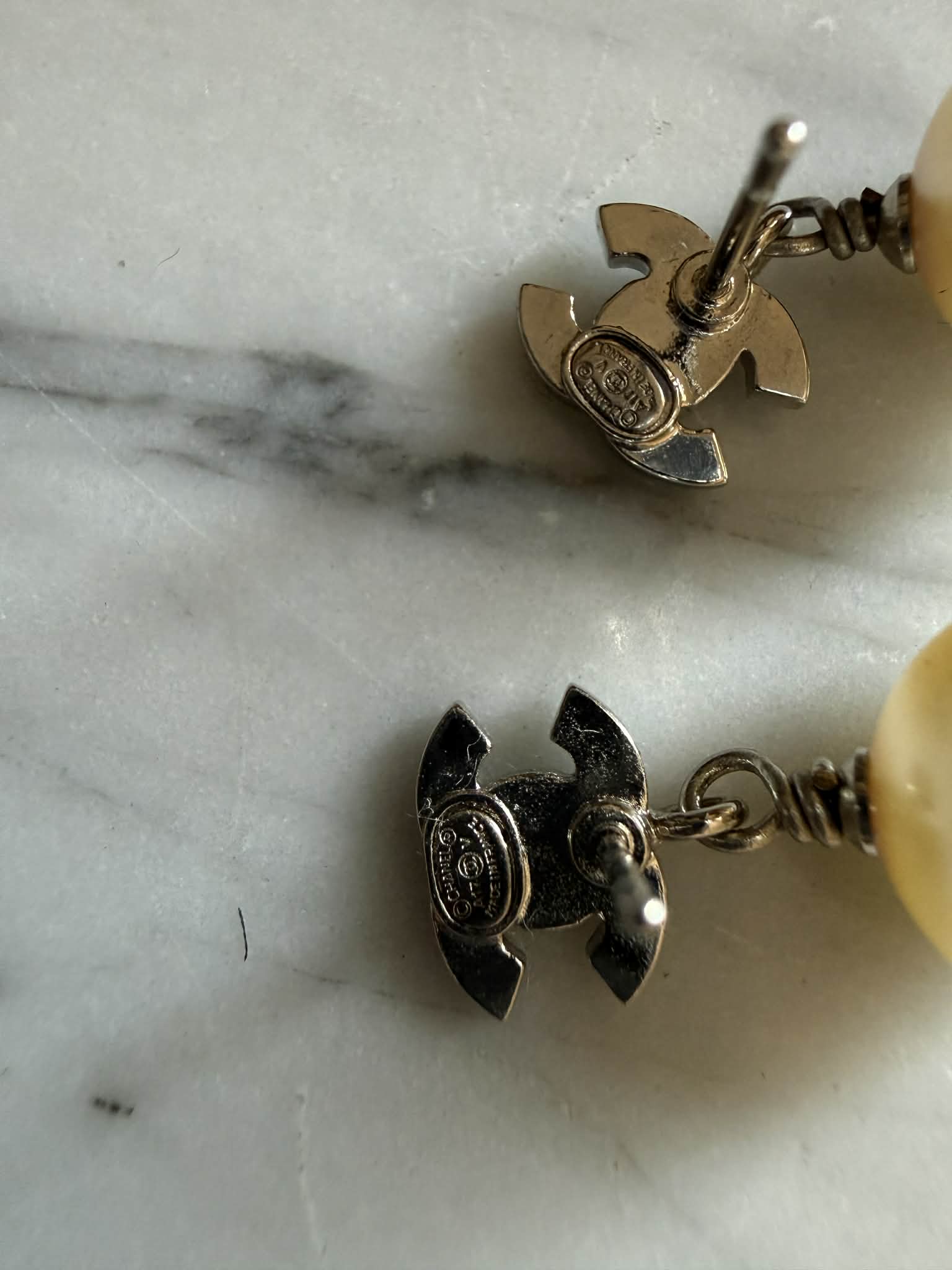 Kolczyki są w bardzo dobrym stanie, zapakowane w oryginalne pudełko Chanel. Na życzenie dostępny certyfikat autentyczności. Numer seryjny: A17V