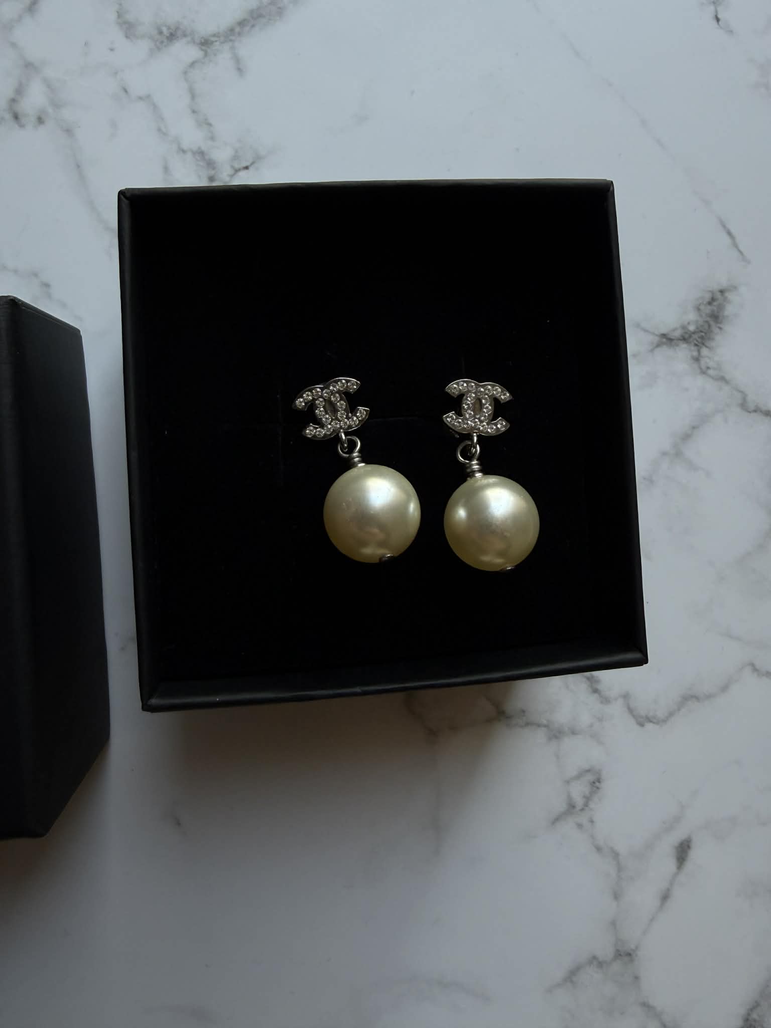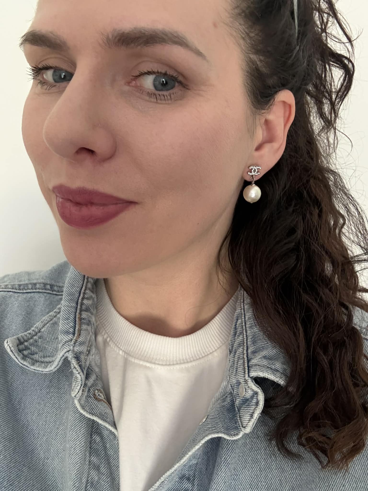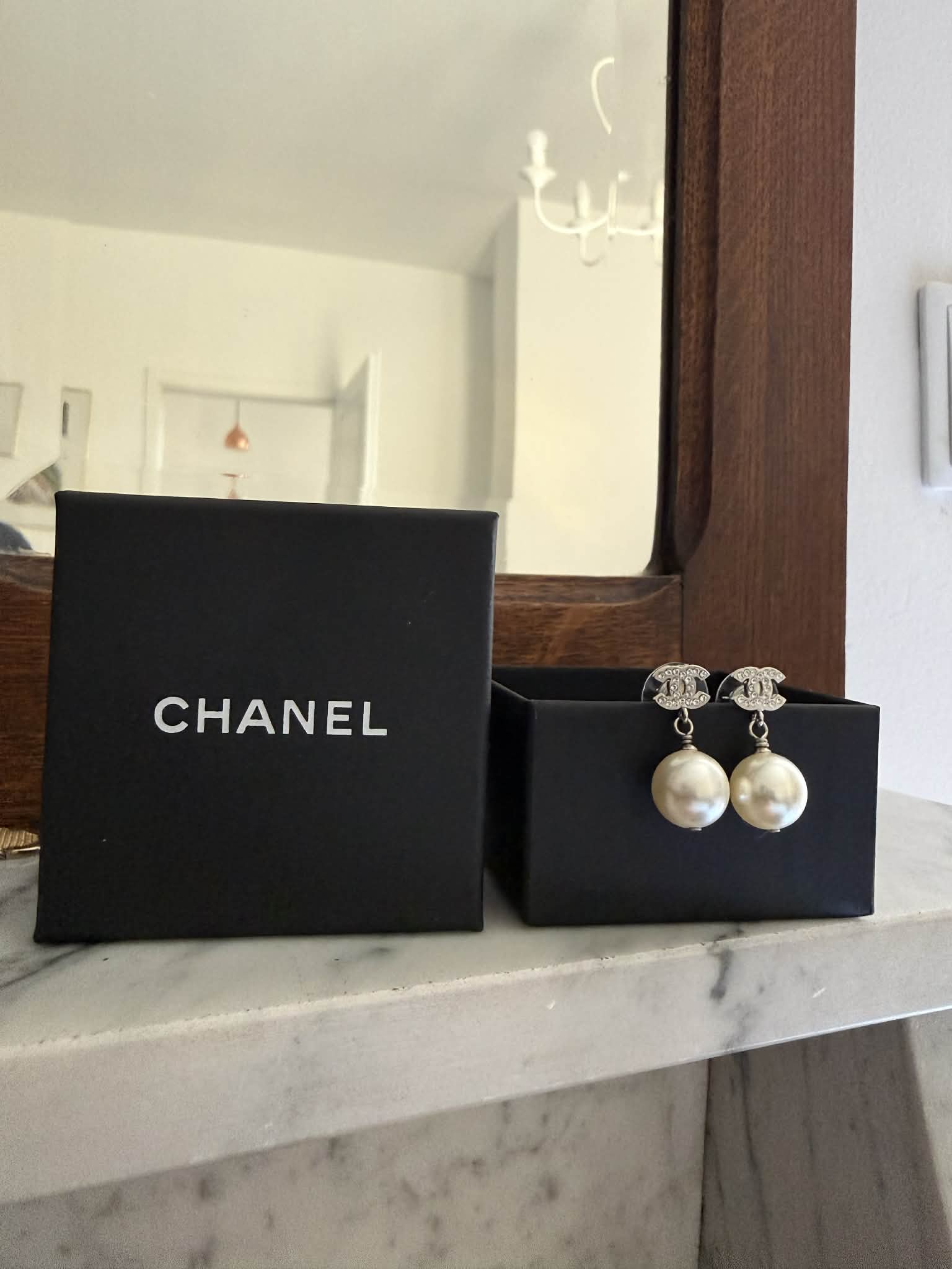 Stylowe i ponadczasowe kolczyki sztyfty Chanel z kolekcji jesień–zima 2017 to kwintesencja elegancji w nowoczesnym wydaniu. Wykonane w srebrnym kolorze, ozdobione błyszczącymi cyrkoniami i wykończone subtelną perełką, stanowią idealne dopełnienie zarówno codziennych, jak i wieczorowych stylizacji.