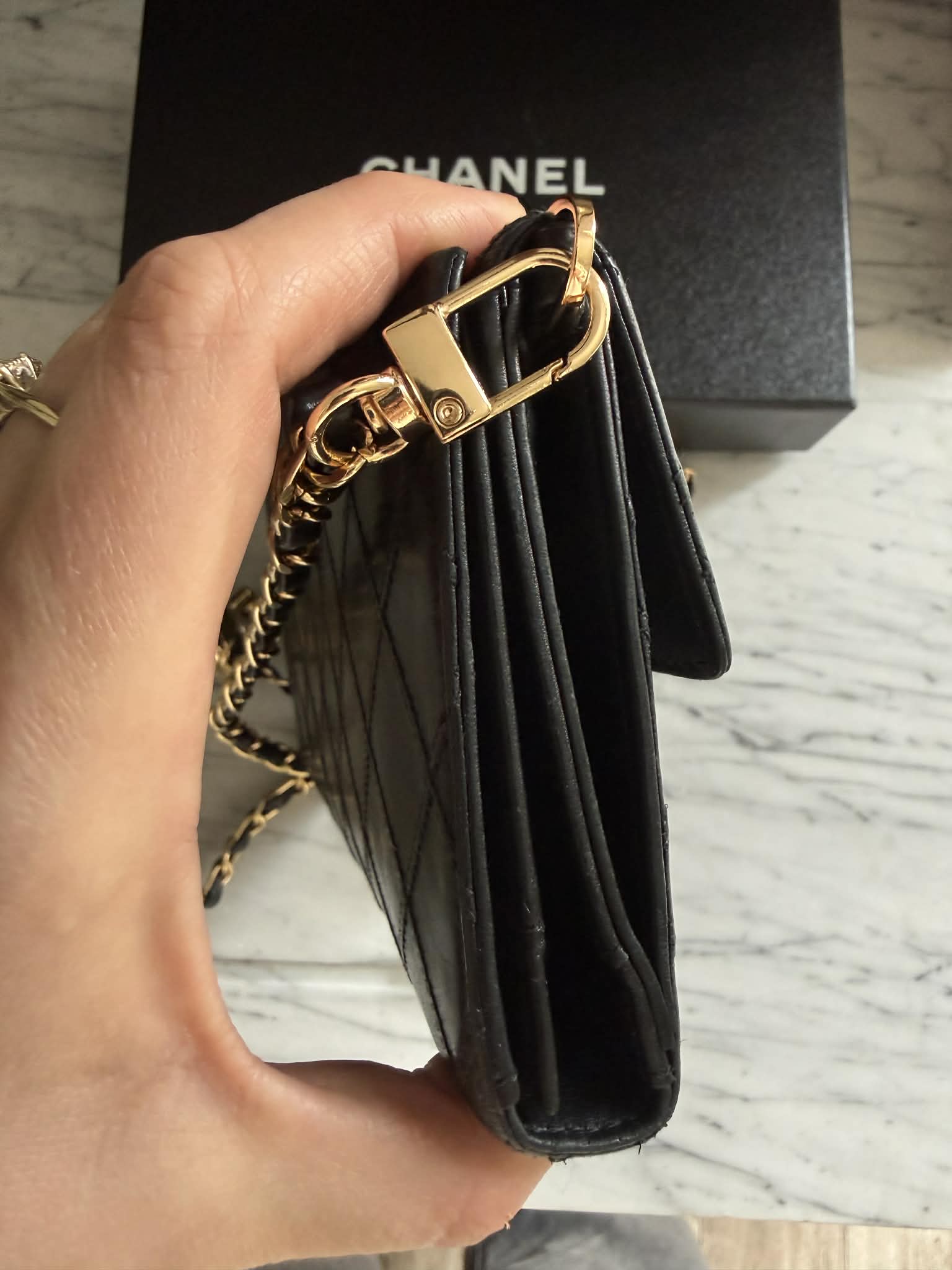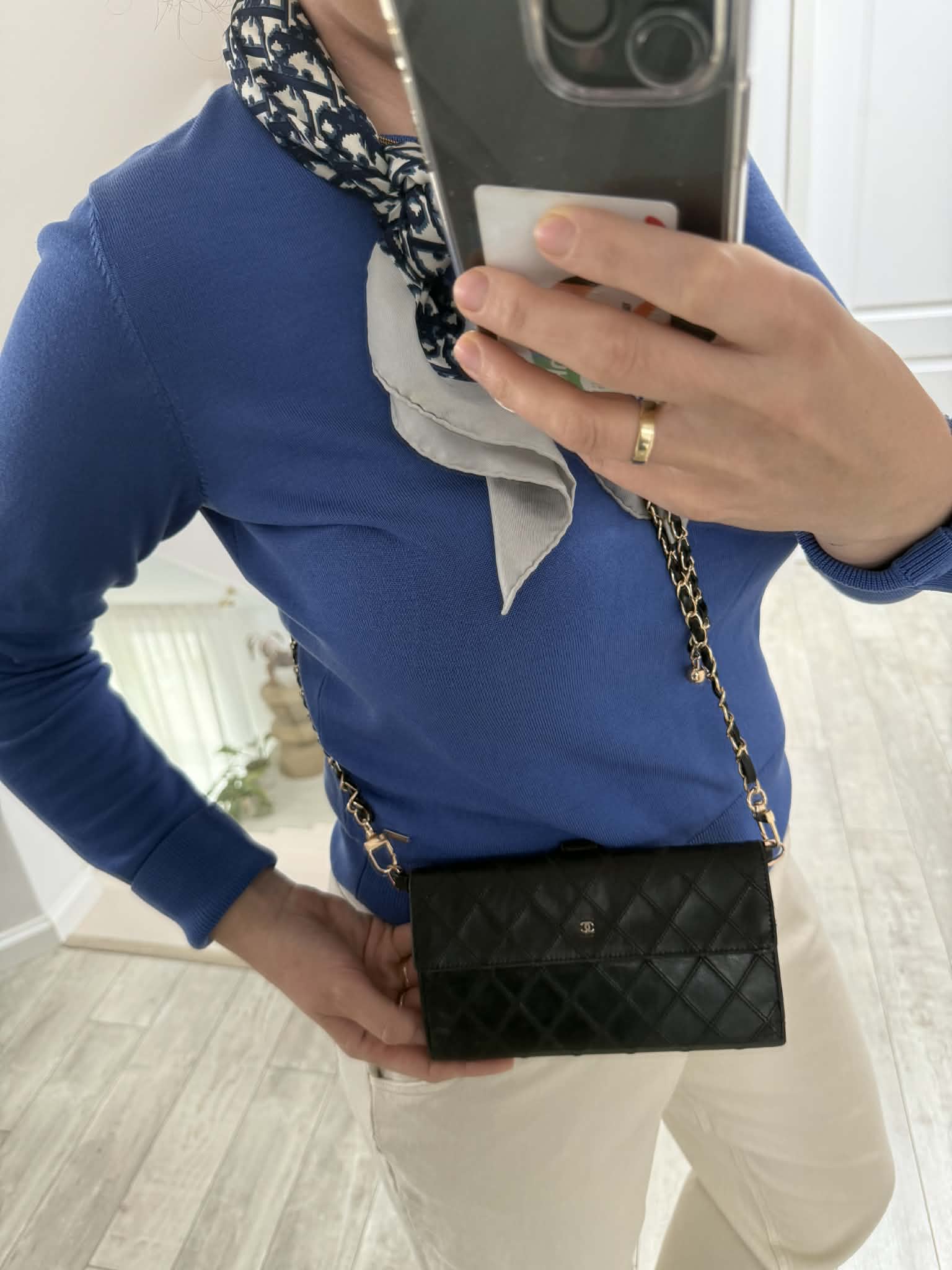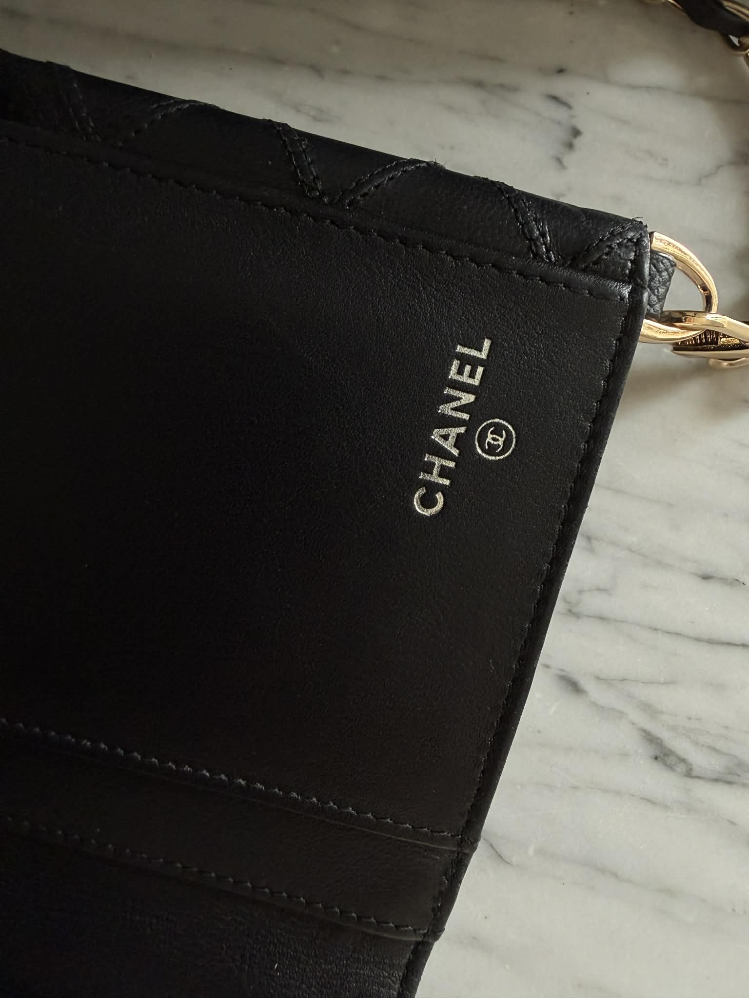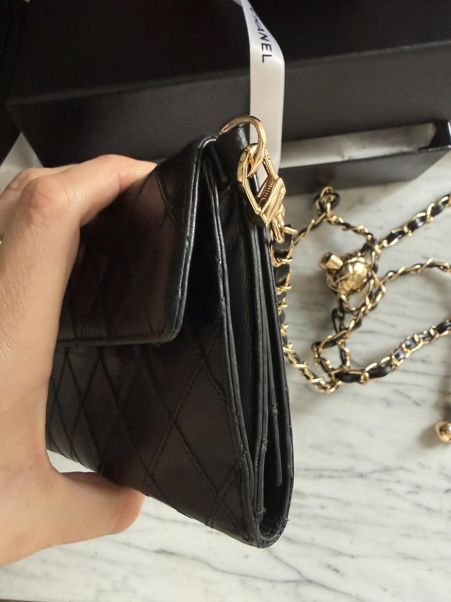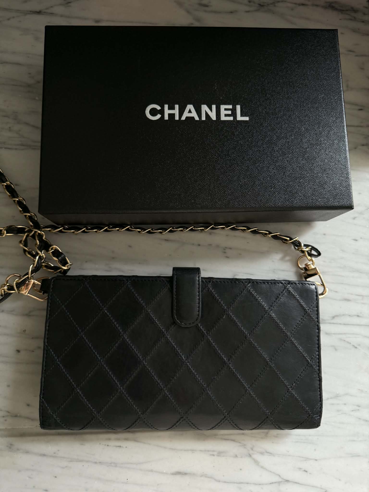 Dzięki specjalnej wkładce portfel można nosić również jako małą torebkę – idealną na szybkie wyjścia po mieście (pomieści m.in. telefon bez etui). Dołączony łańcuszek oraz wkładka nie są produktem marki Chanel, ale zwiększają funkcjonalność modelu.