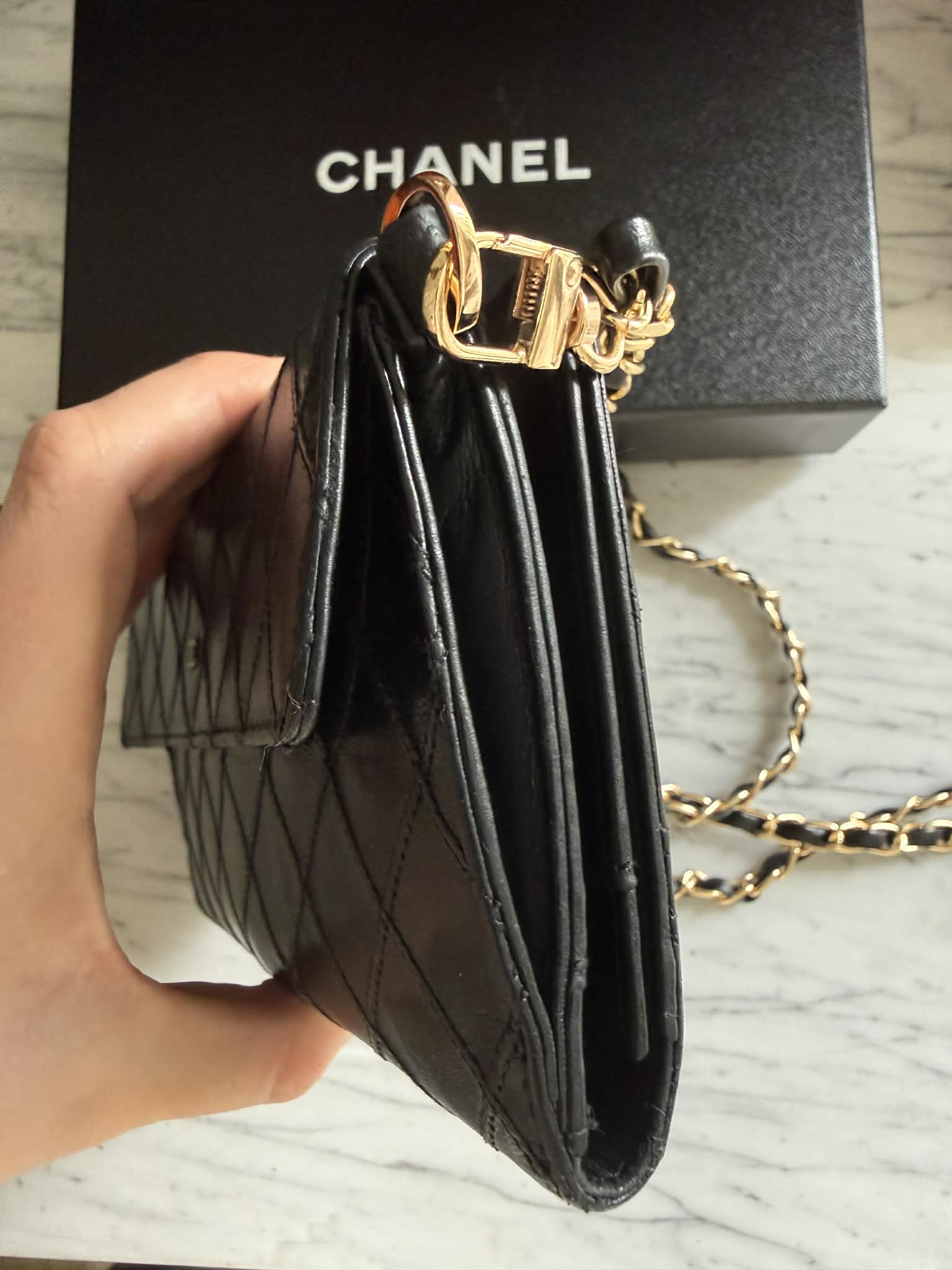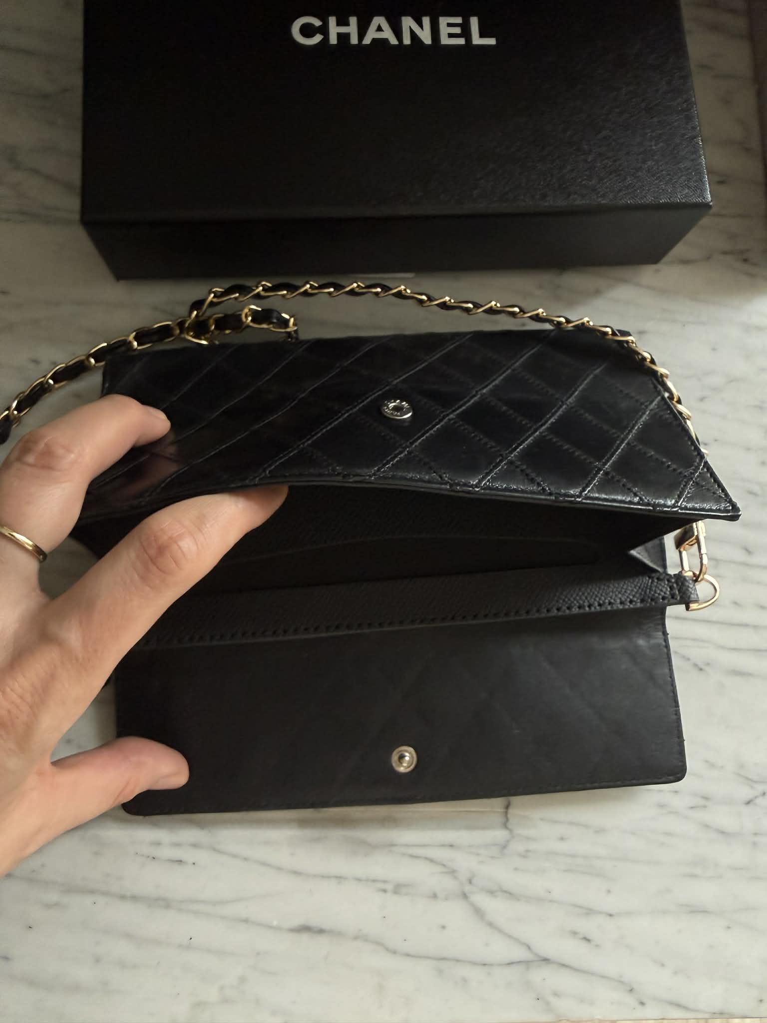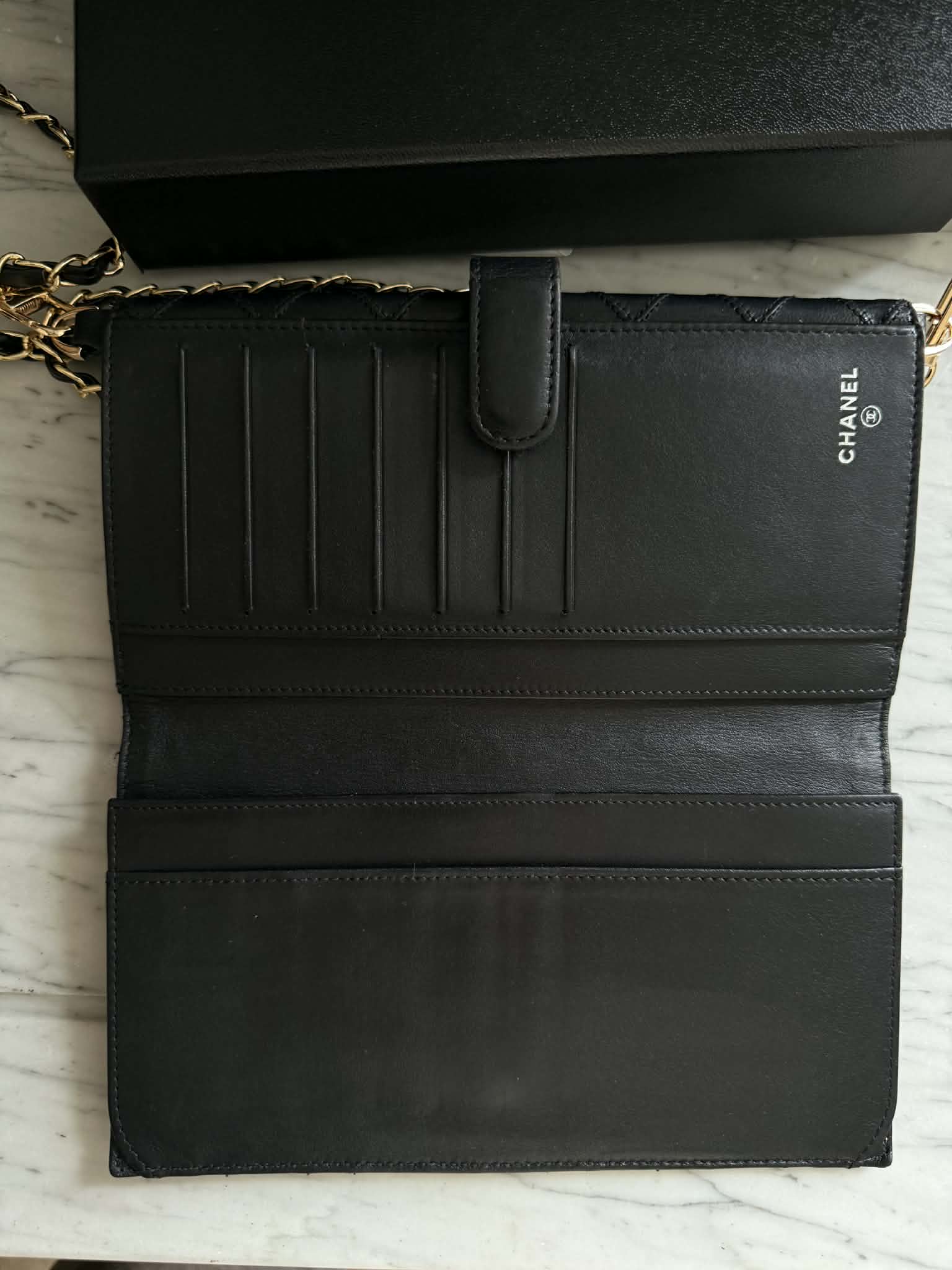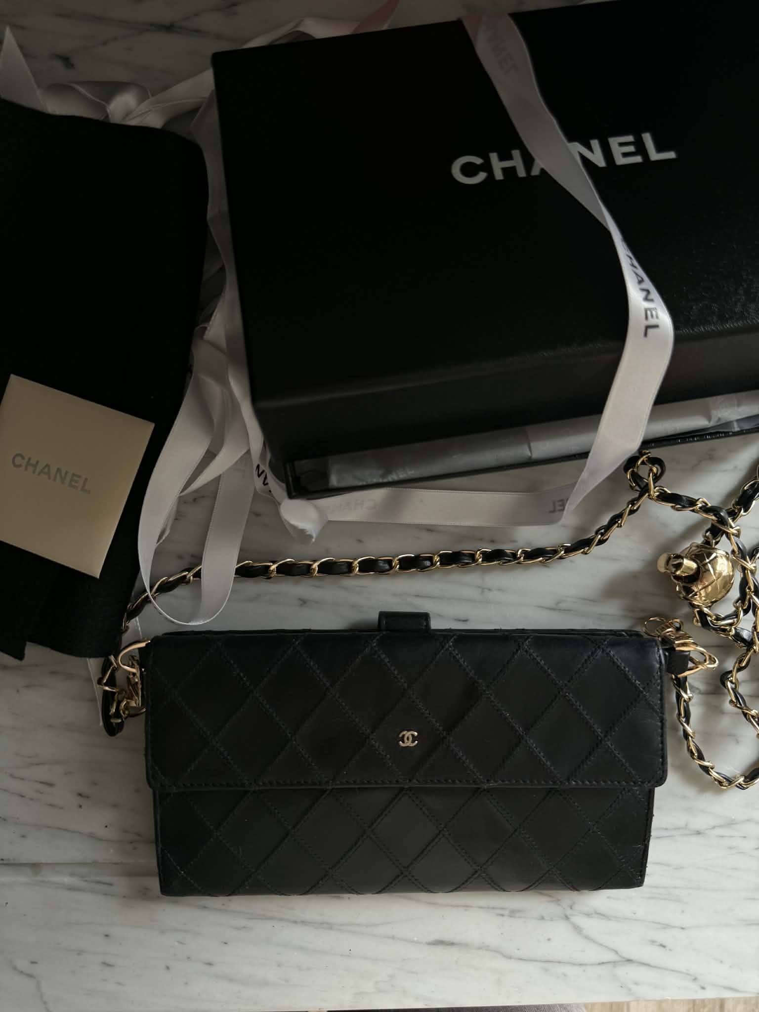 Chanel portfel na łańcuszku + pudełko