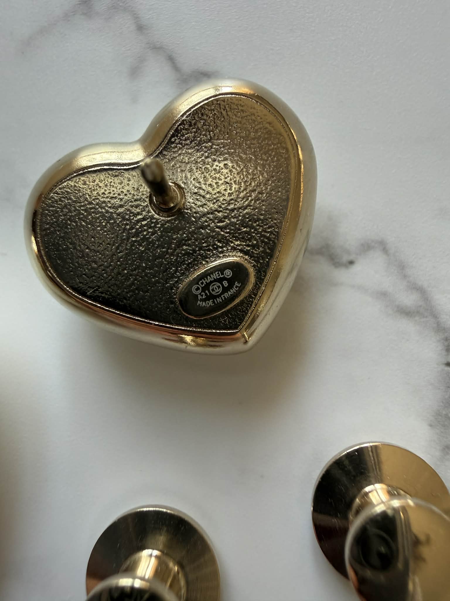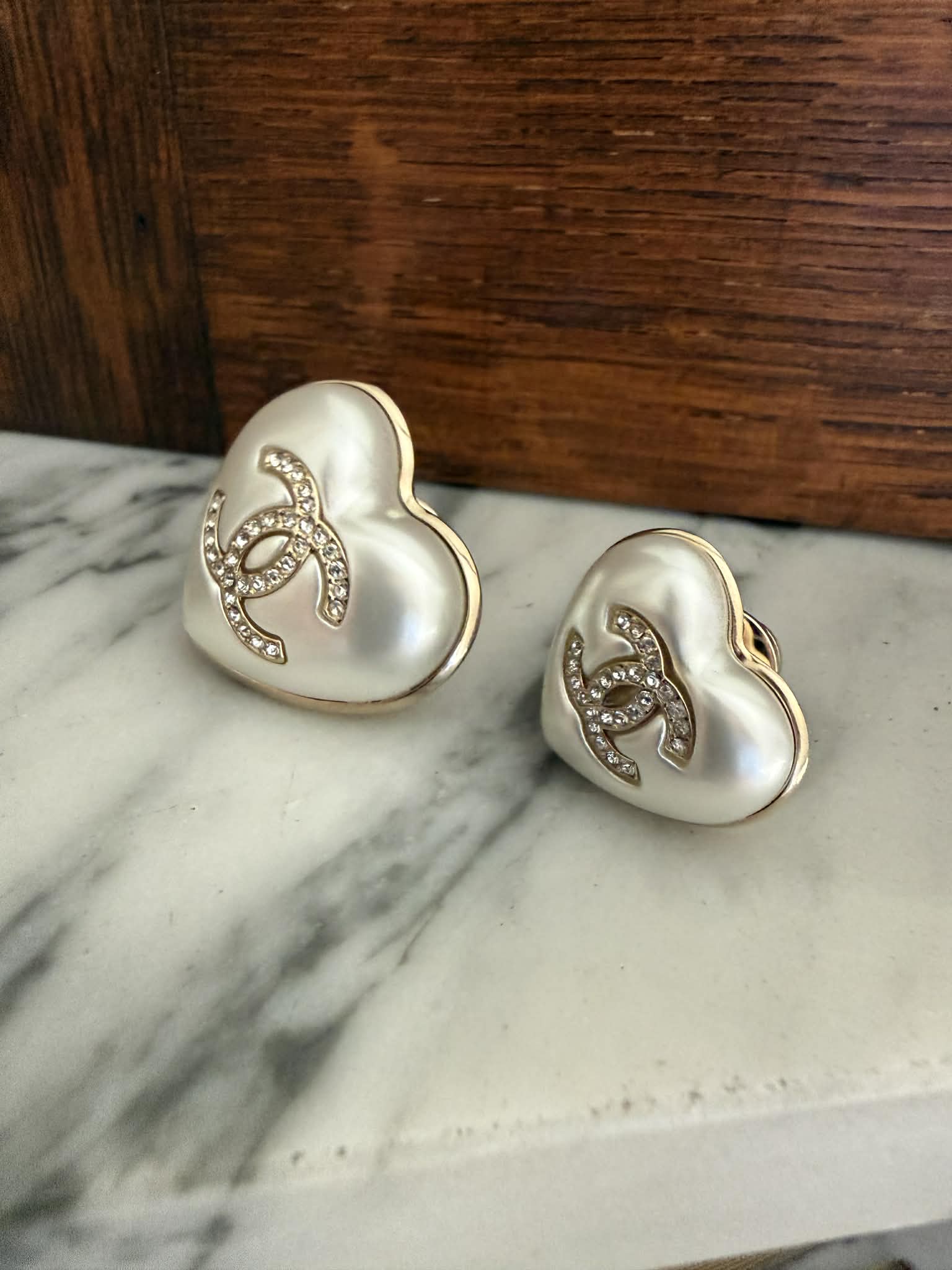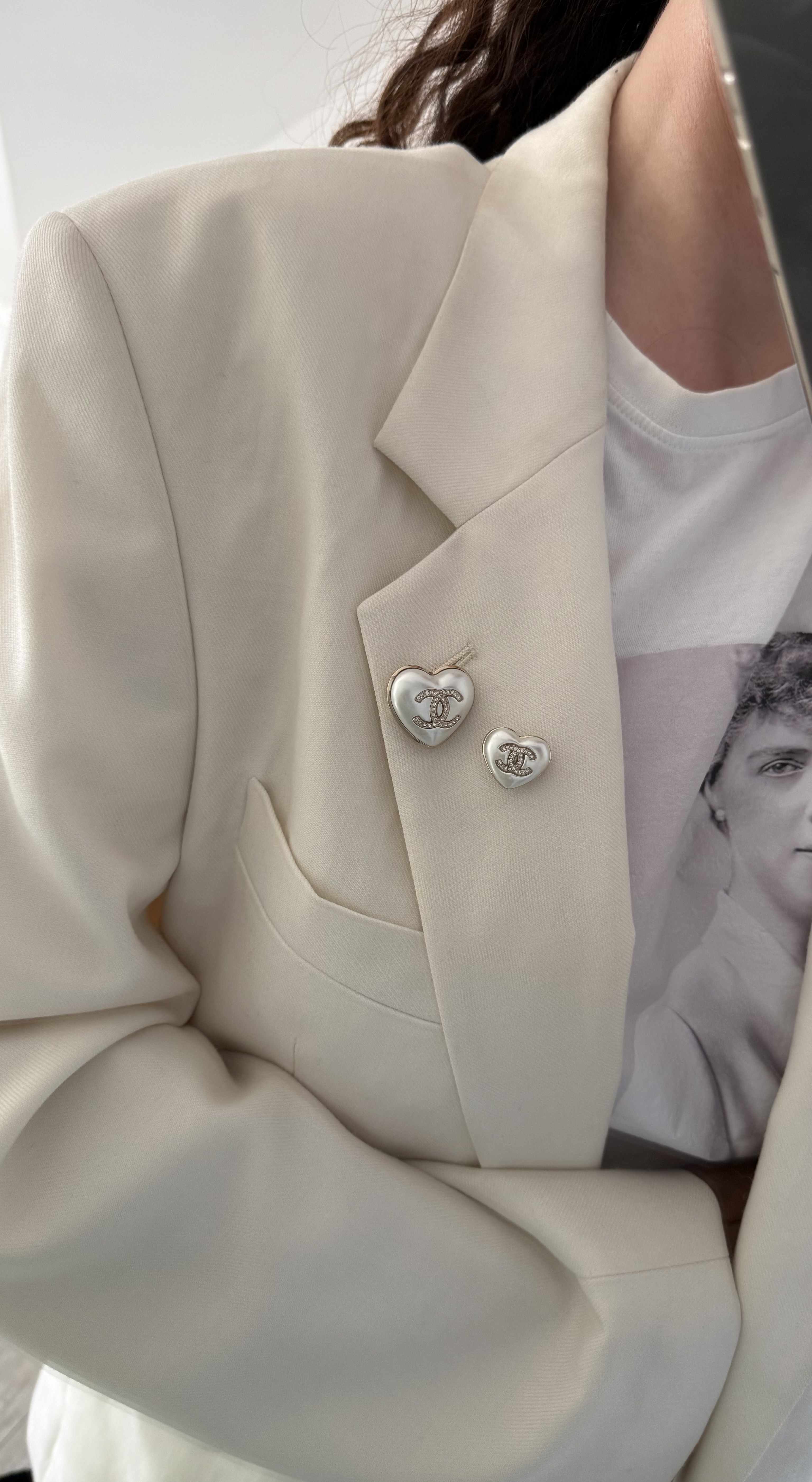 Zestaw dwóch broszek Chanel w kształcie serca to elegancki komplet biżuterii inspirowany ponadczasową estetyką domu mody Chanel. Charakterystyczne logo CC w kolorze złotym połączone z perłowym wykończeniem tworzy klasyczny i rozpoznawalny design.