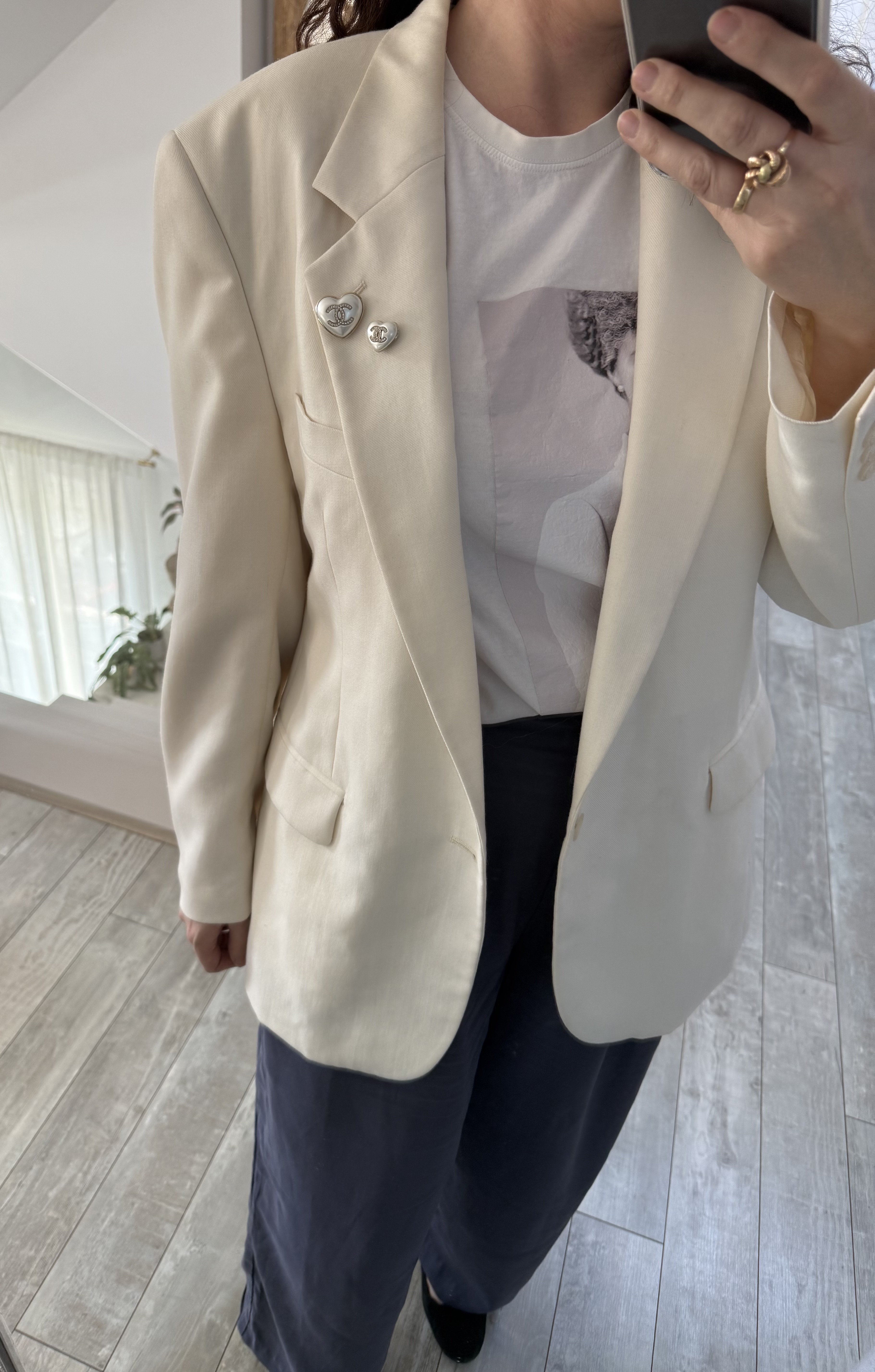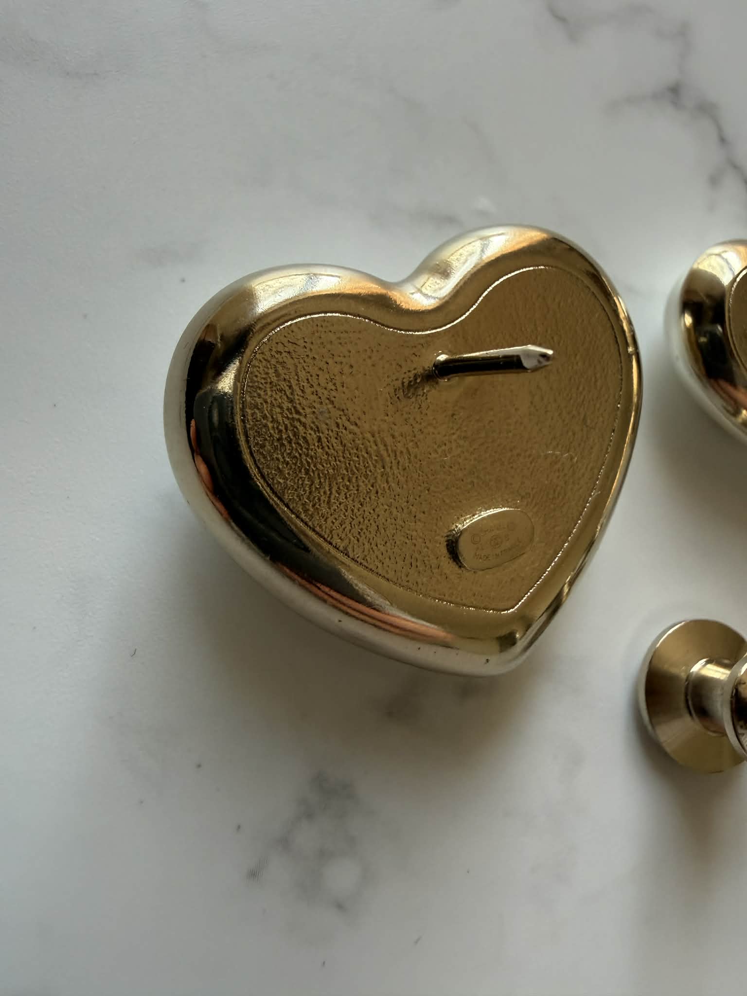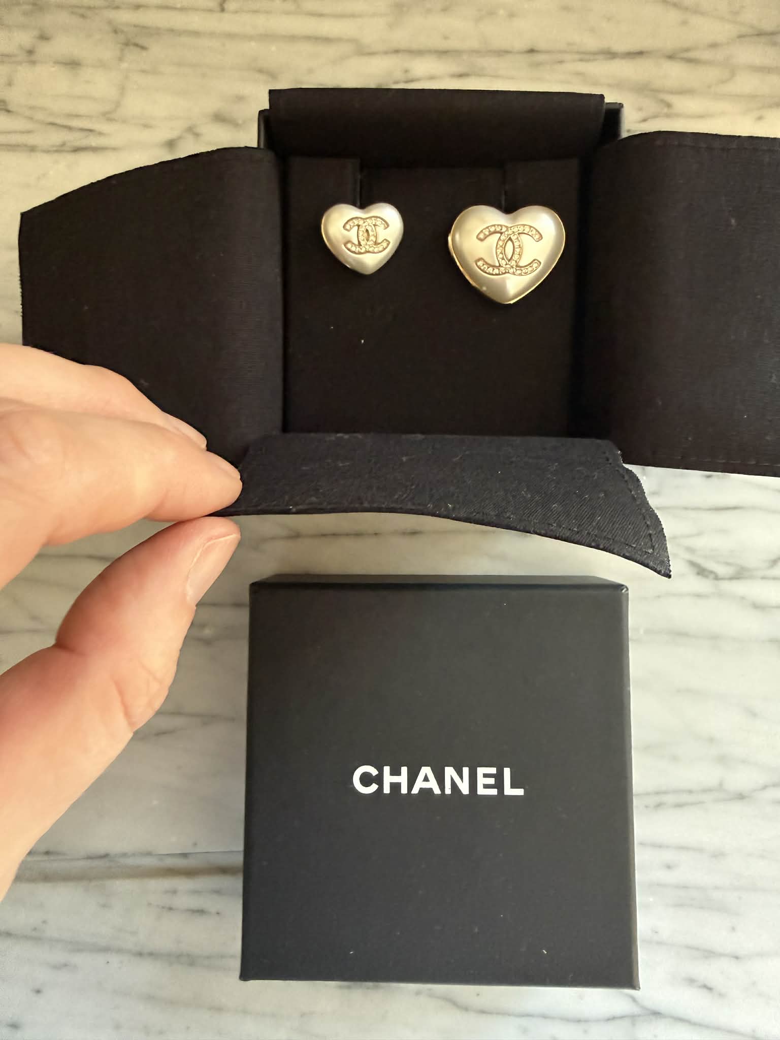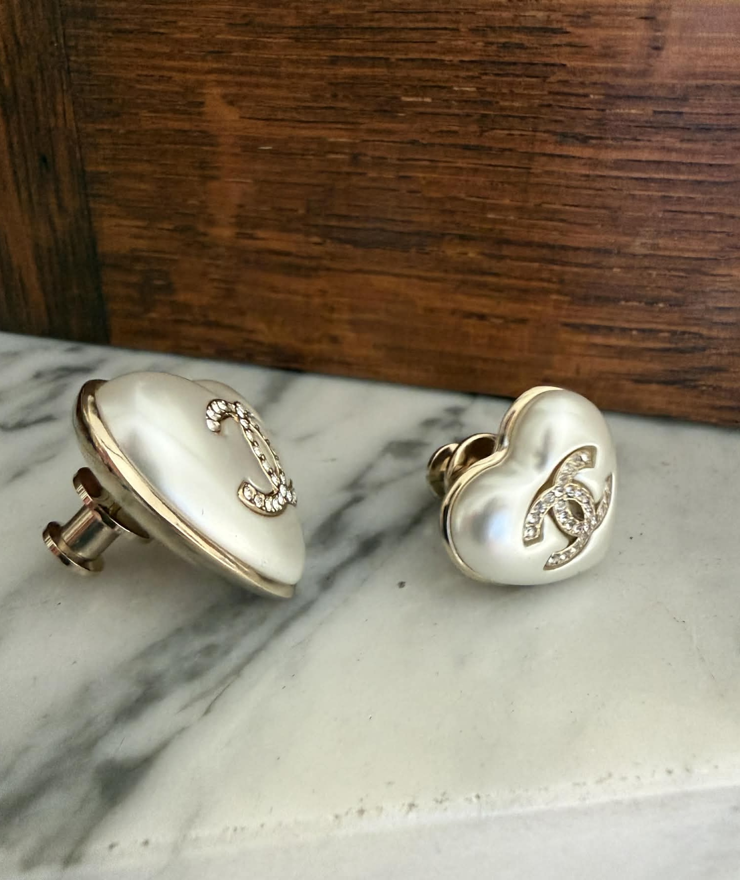 Zestaw dwóch broszek Chanel w kształcie serca to elegancki komplet biżuterii inspirowany ponadczasową estetyką domu mody Chanel. Charakterystyczne logo CC w kolorze złotym połączone z perłowym wykończeniem tworzy klasyczny i rozpoznawalny design.