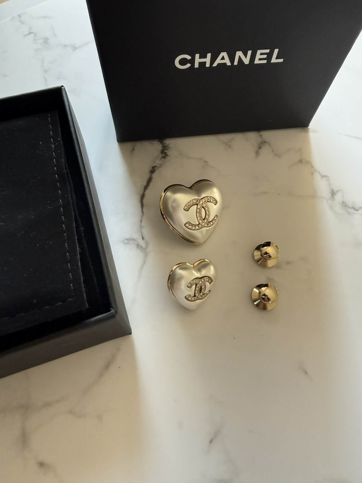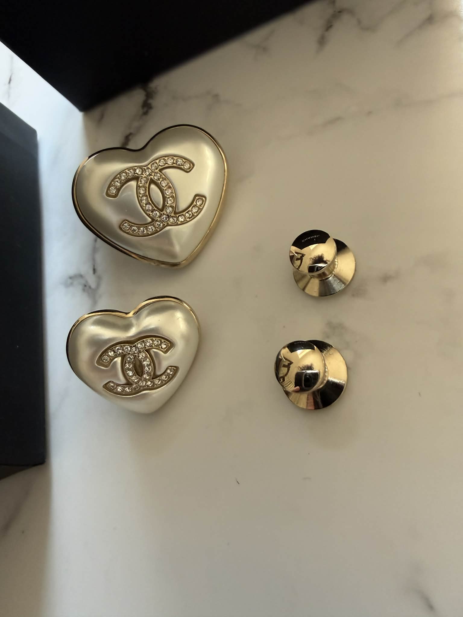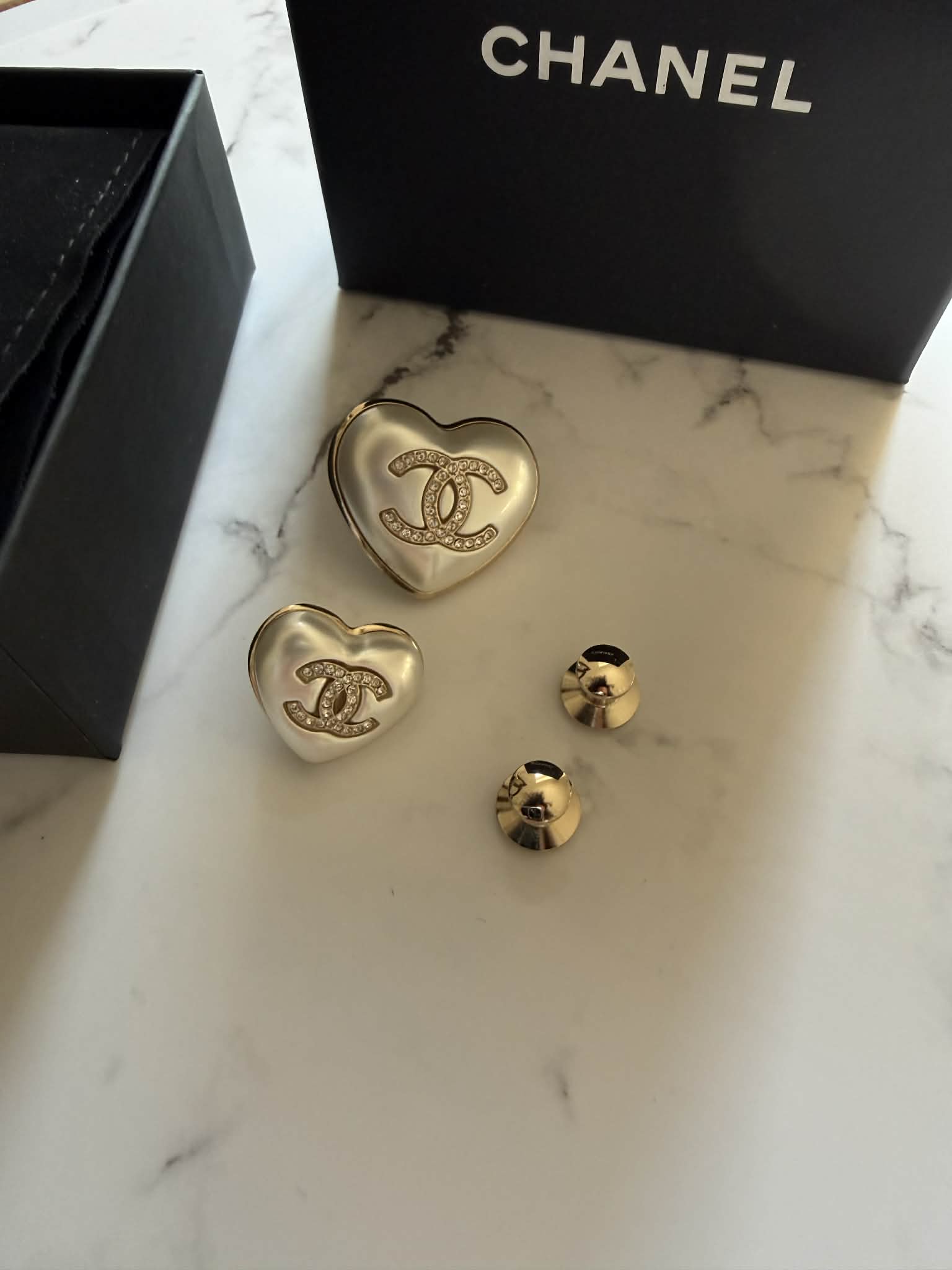 Chanel zestaw dwóch broszek, motyw serca + pudełeczko