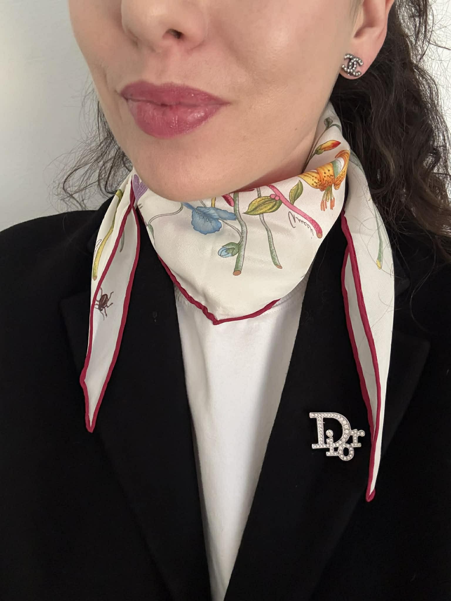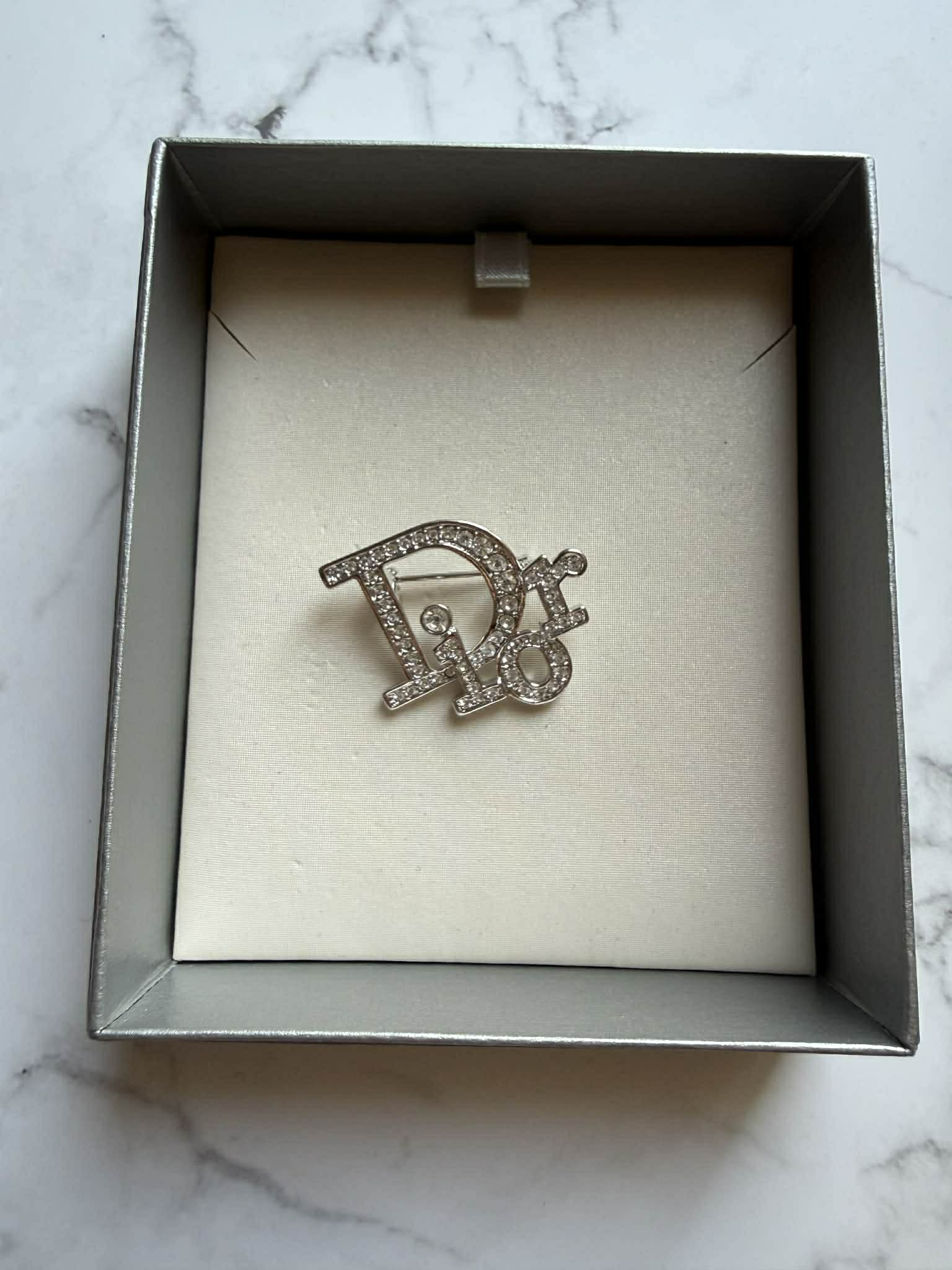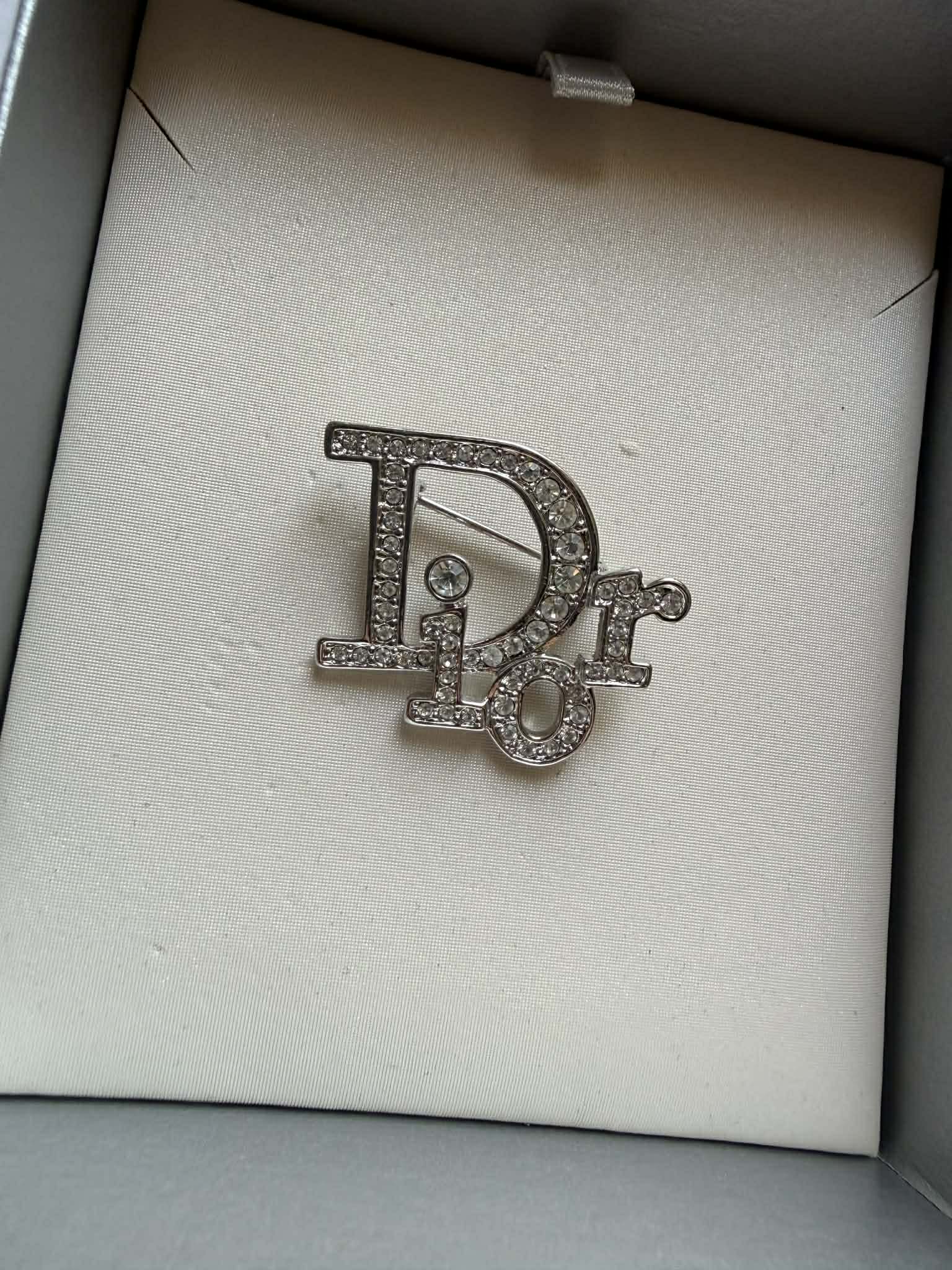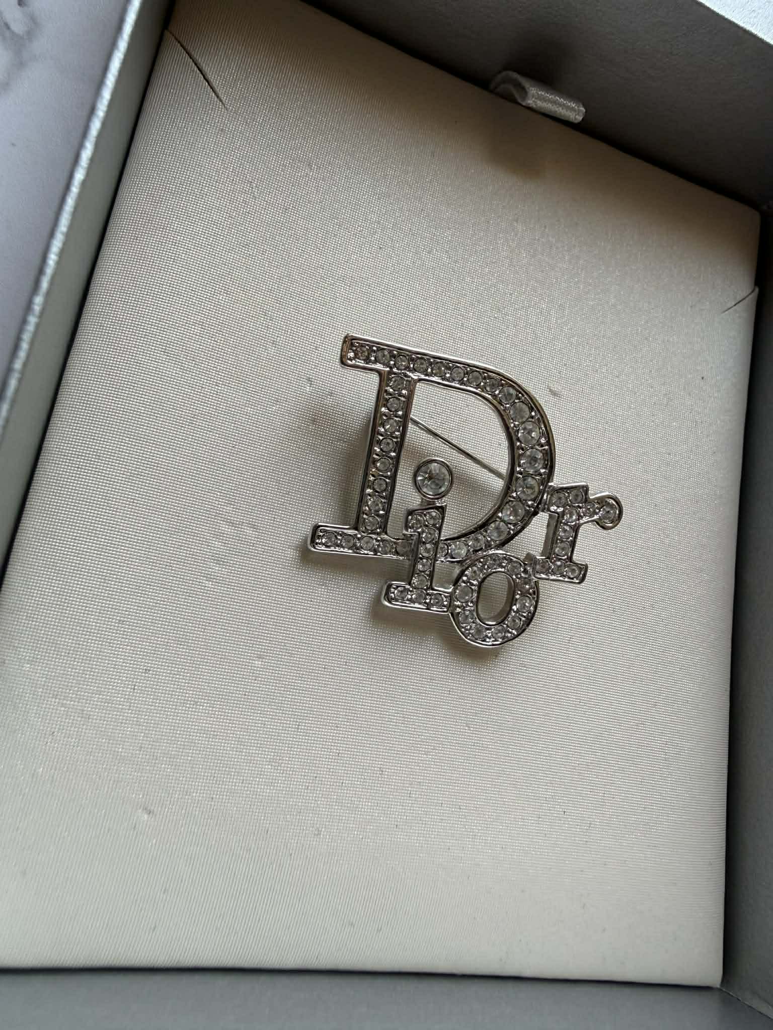 Elegancka broszka marki Christian Dior to wyjątkowy dodatek, który podkreśli charakter każdej stylizacji. Wykonana z wysokiej jakości materiałów, zachwyca subtelnym połączeniem srebrnego wykończenia oraz połyskujących kryształków, które pięknie odbijają światło.