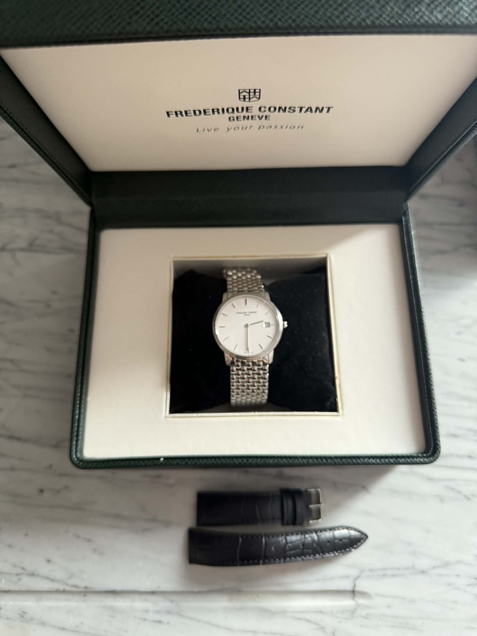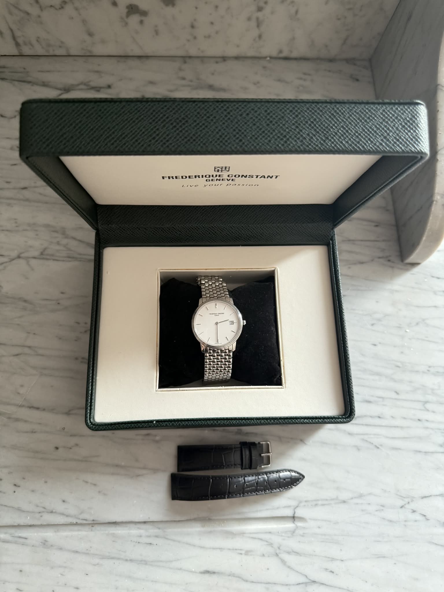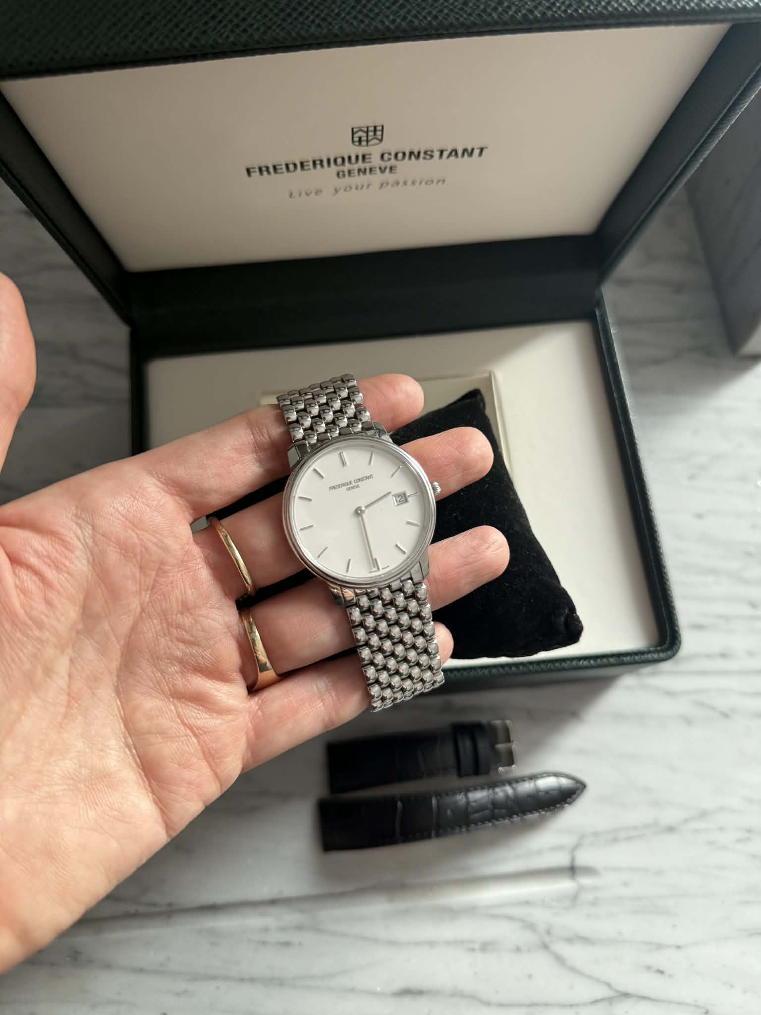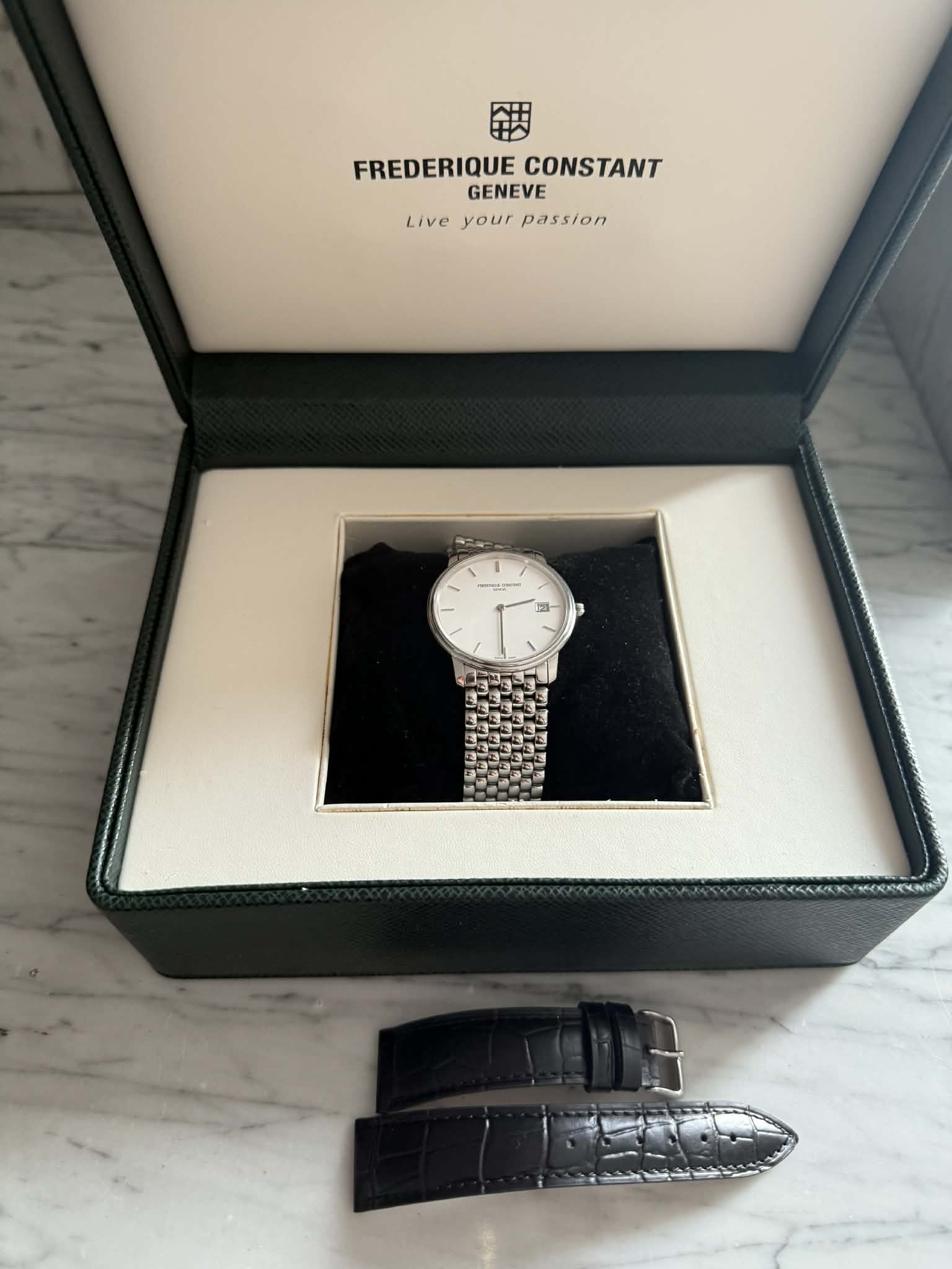 Frederique Constant szwajcarski zegarek męski, oryginalny, koperta 38mm, bransoleta+pasek+oryginalny box