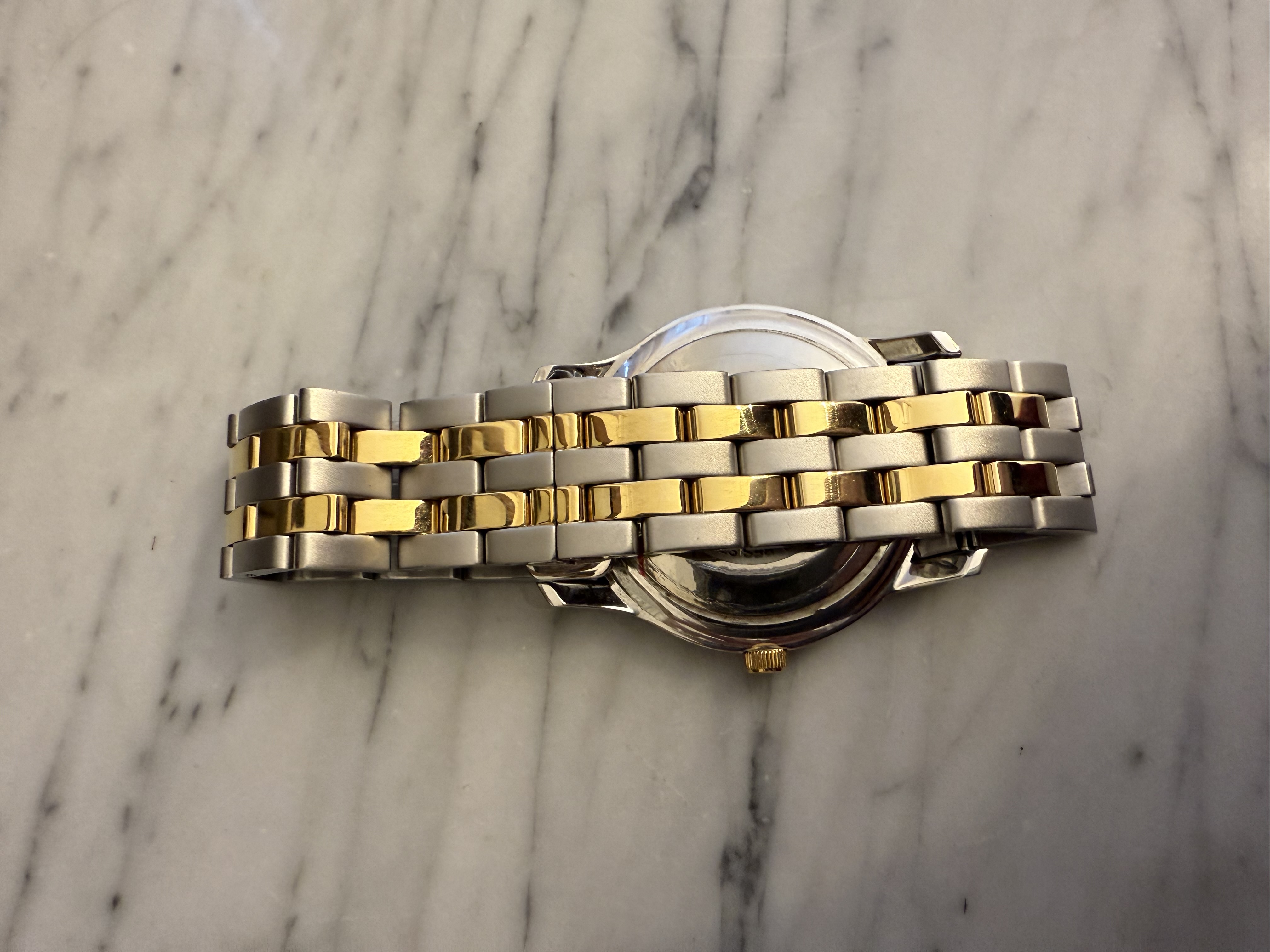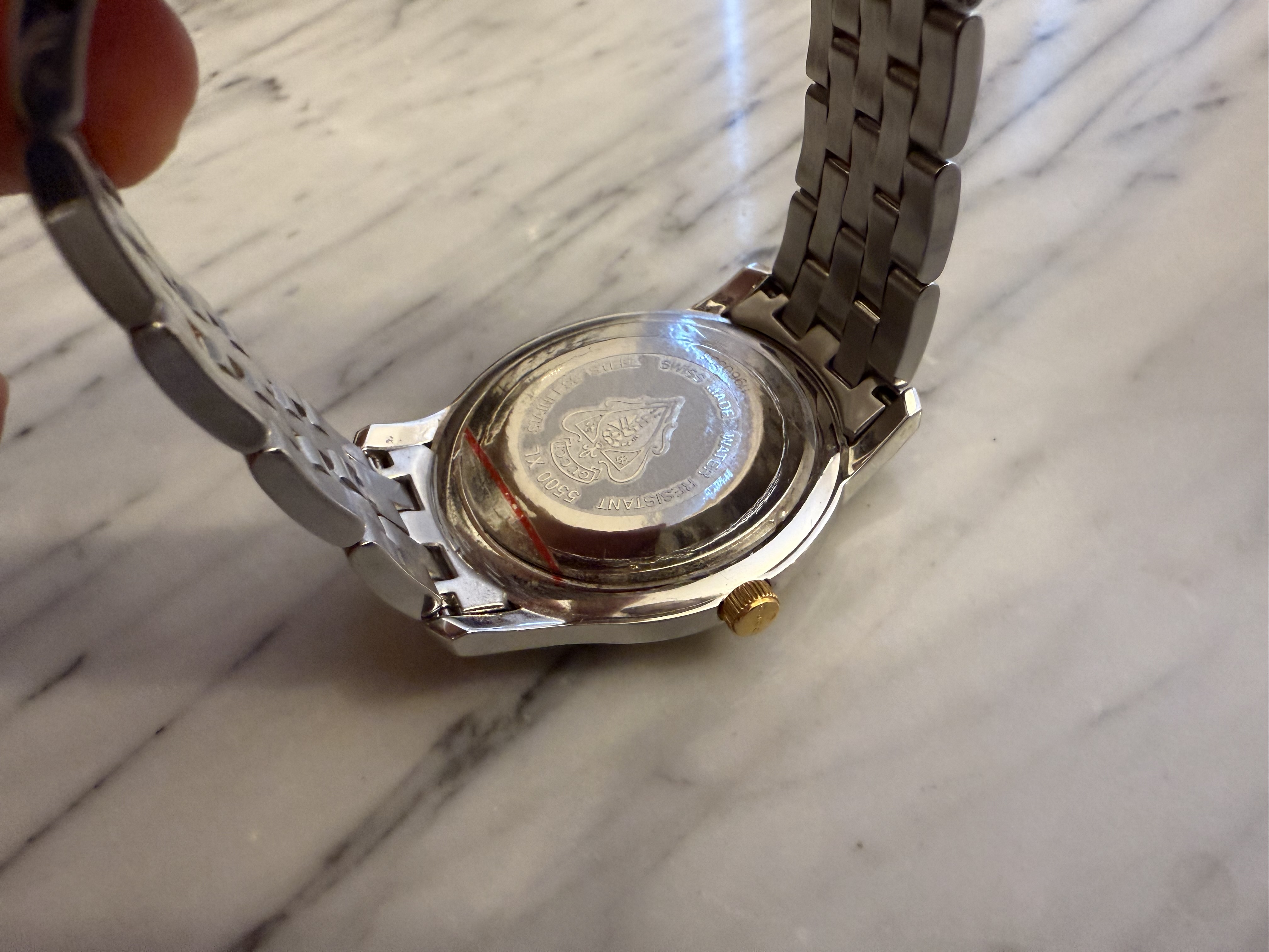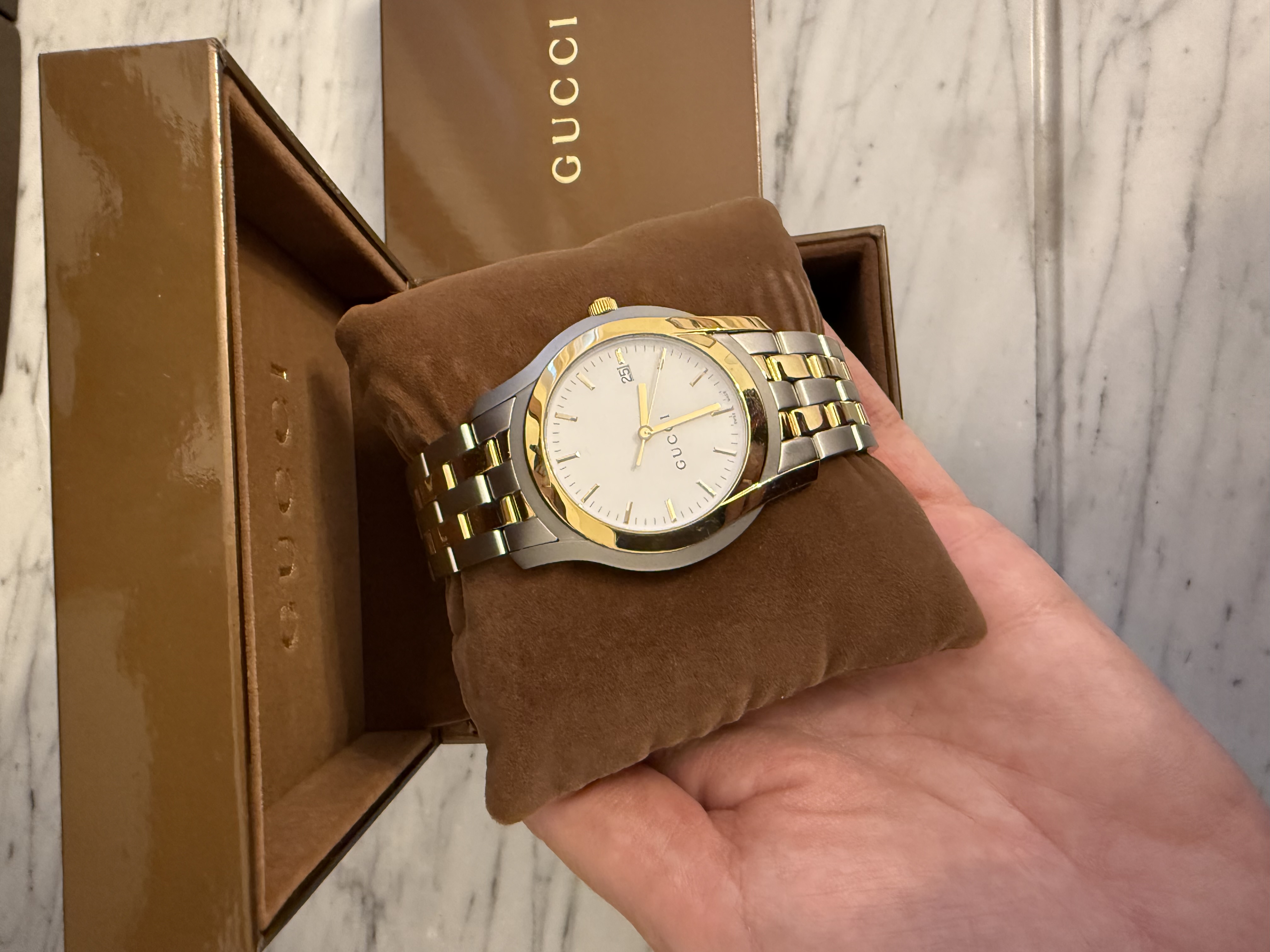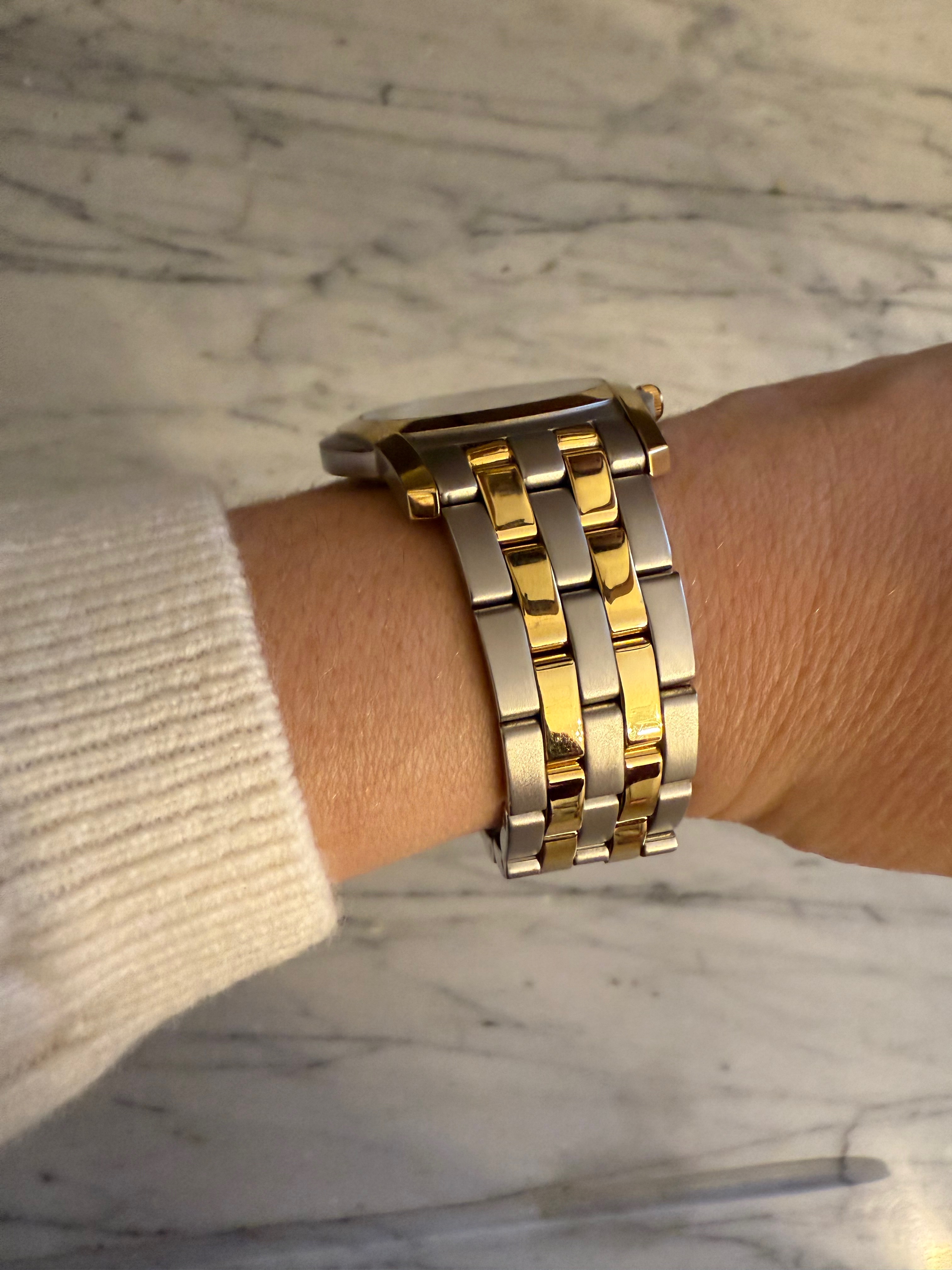 GUCCI szwajcarski zegarek męski, koperta 40mm, oryginalny na złoto-srebrnej bransolecie + pudełko