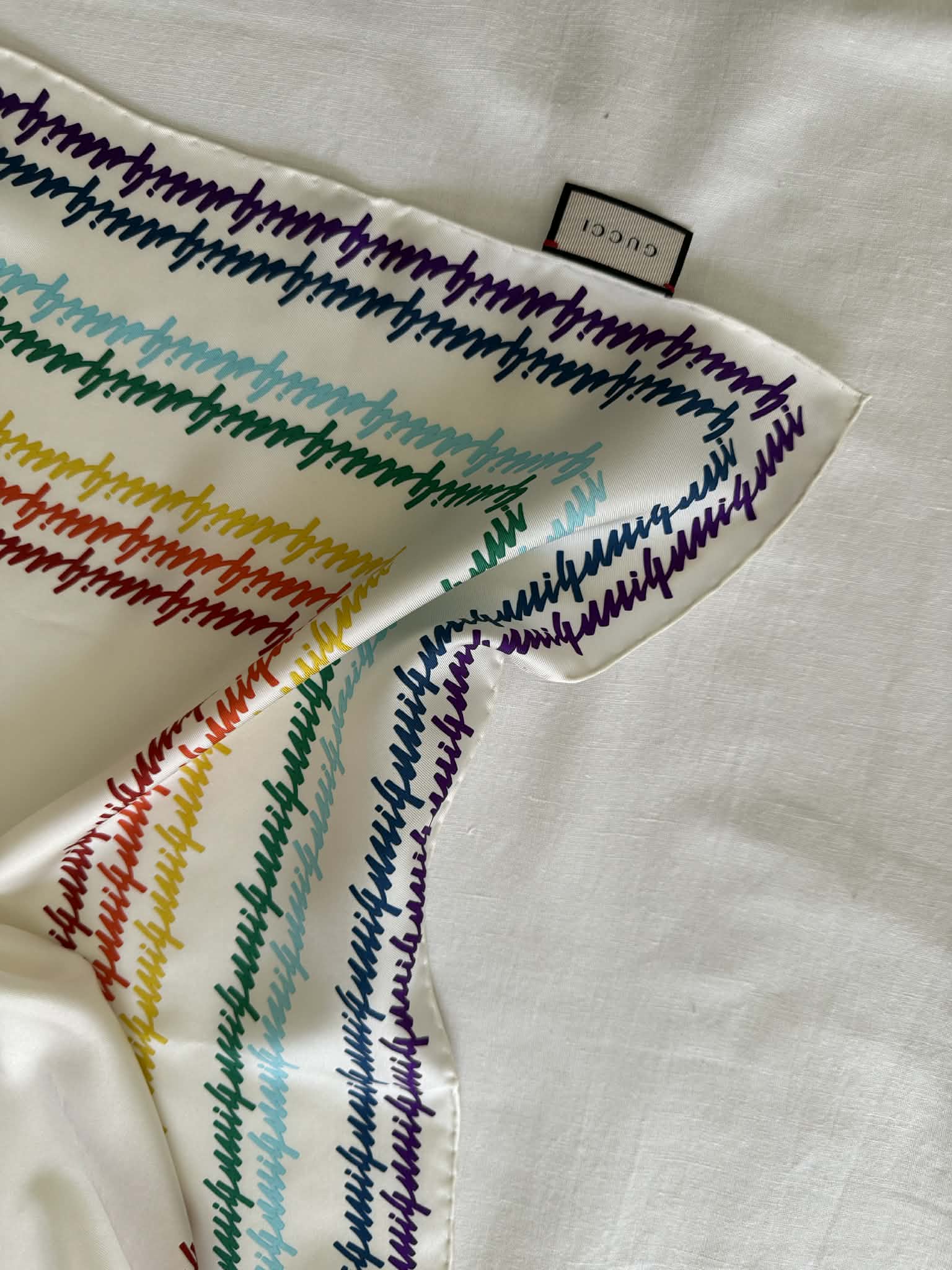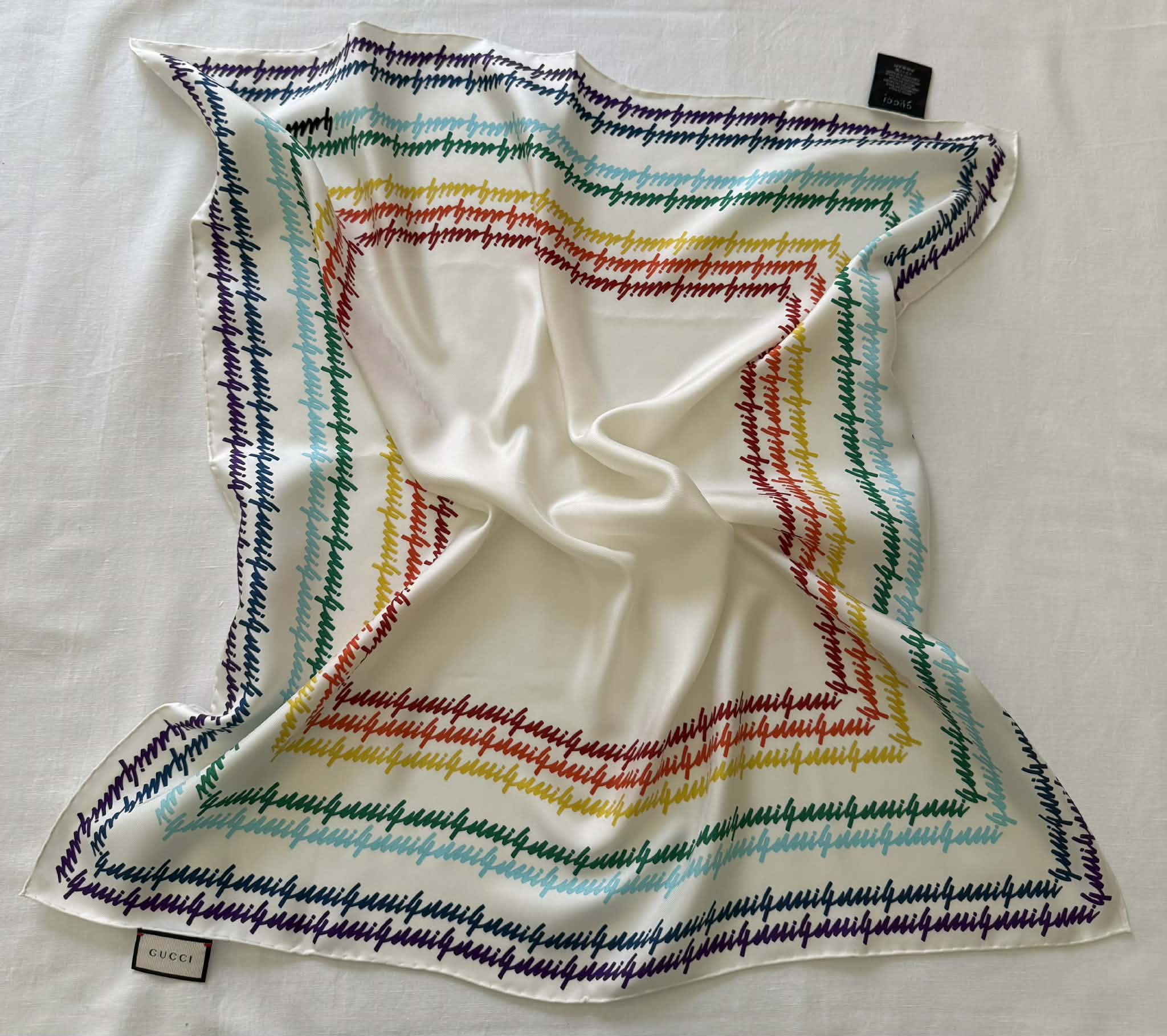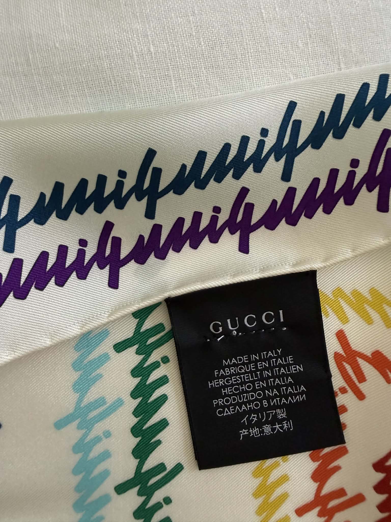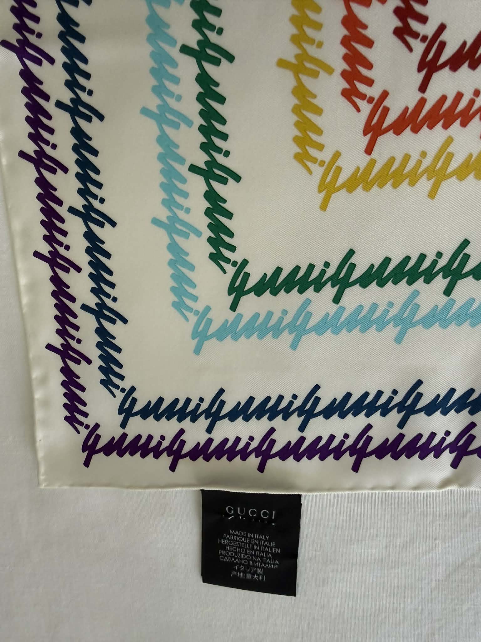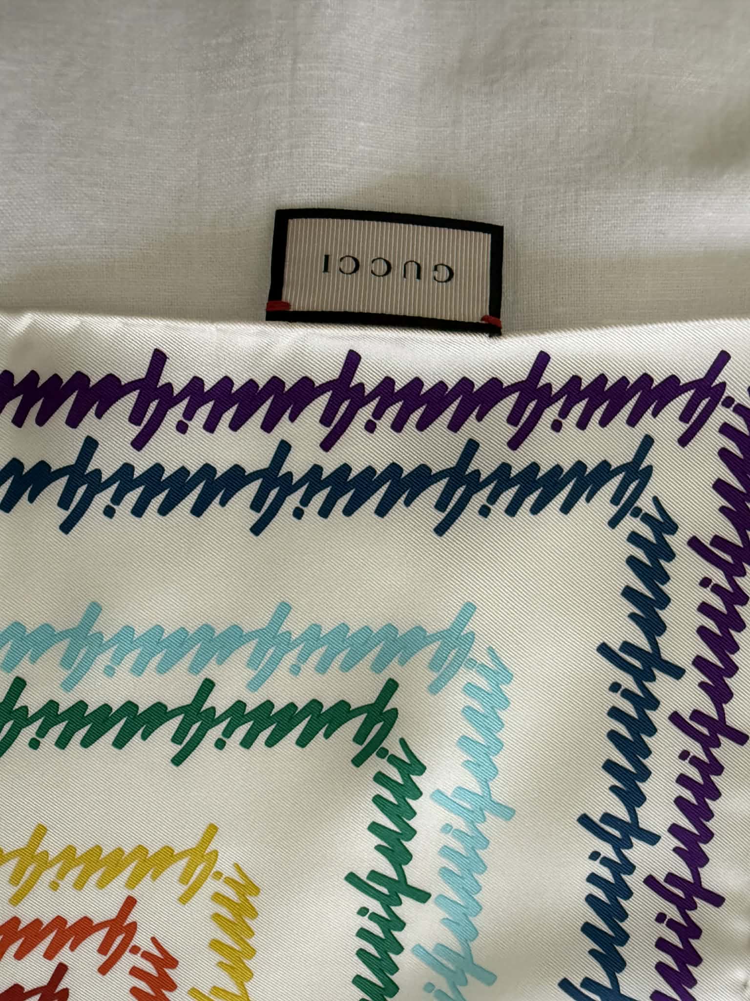 Gucci chusta jedwabna, kolorowe logo marki+ pudełko,