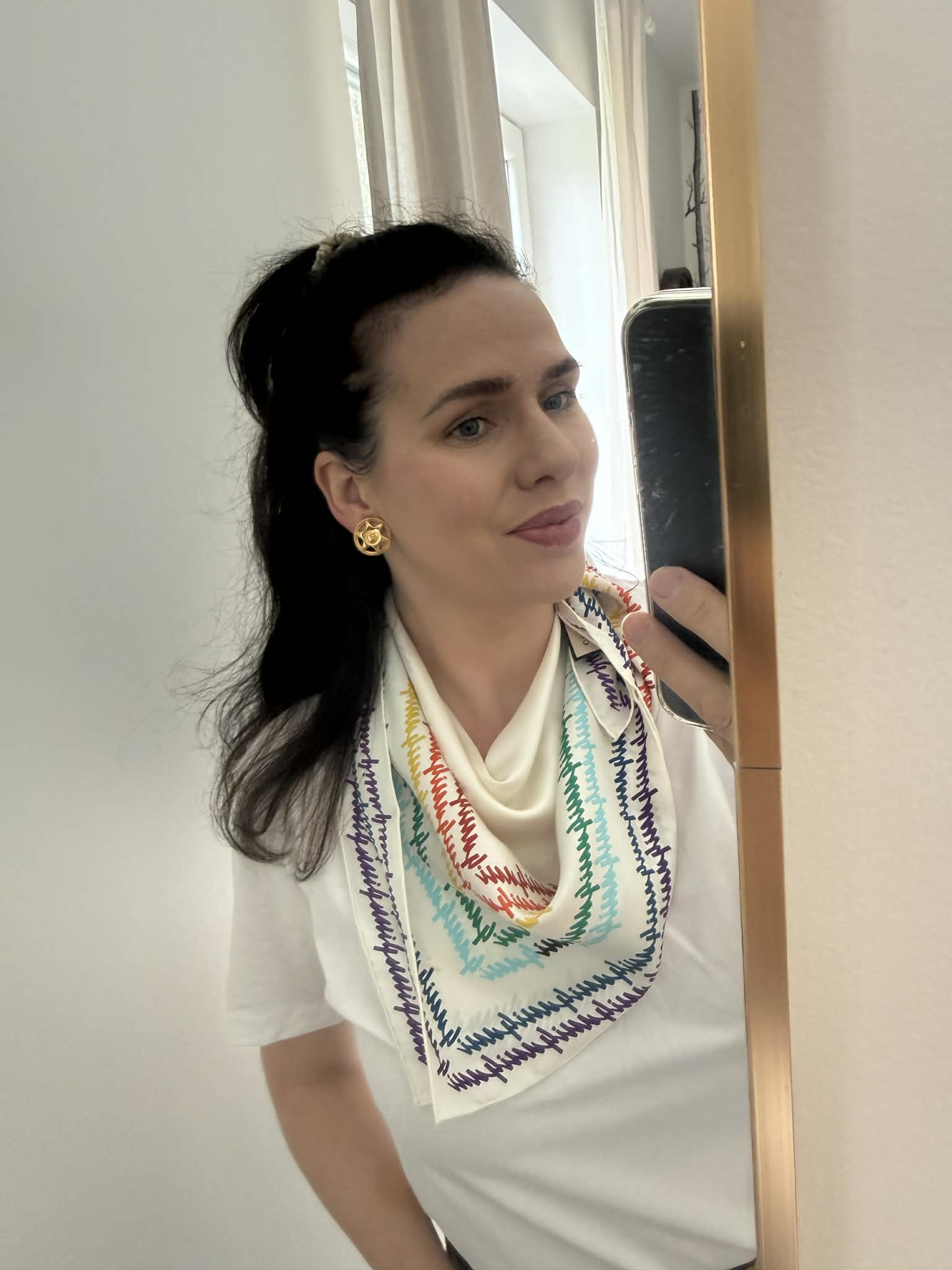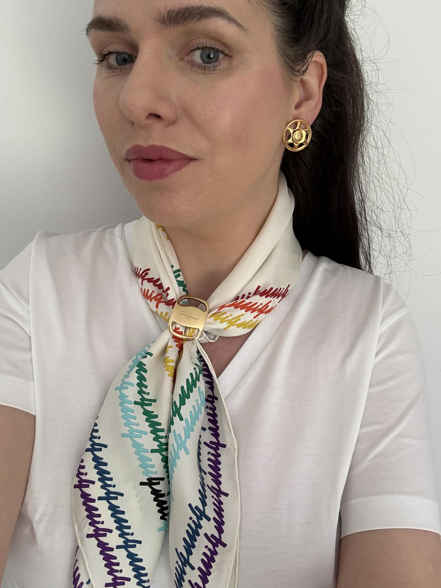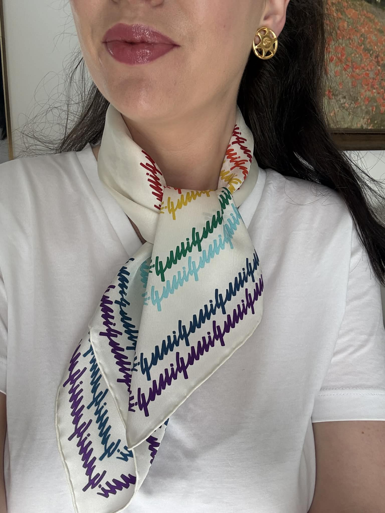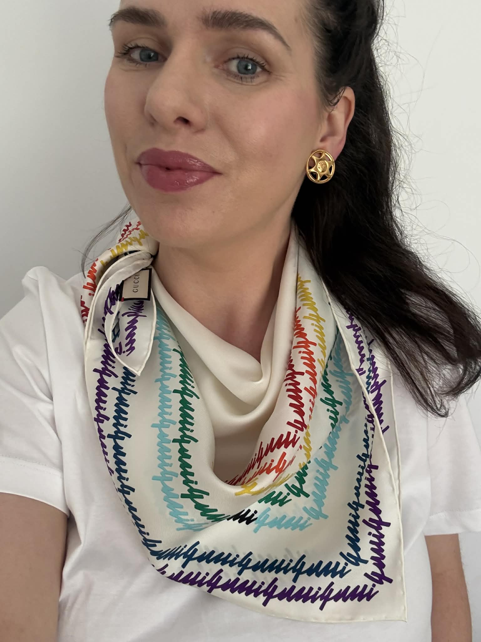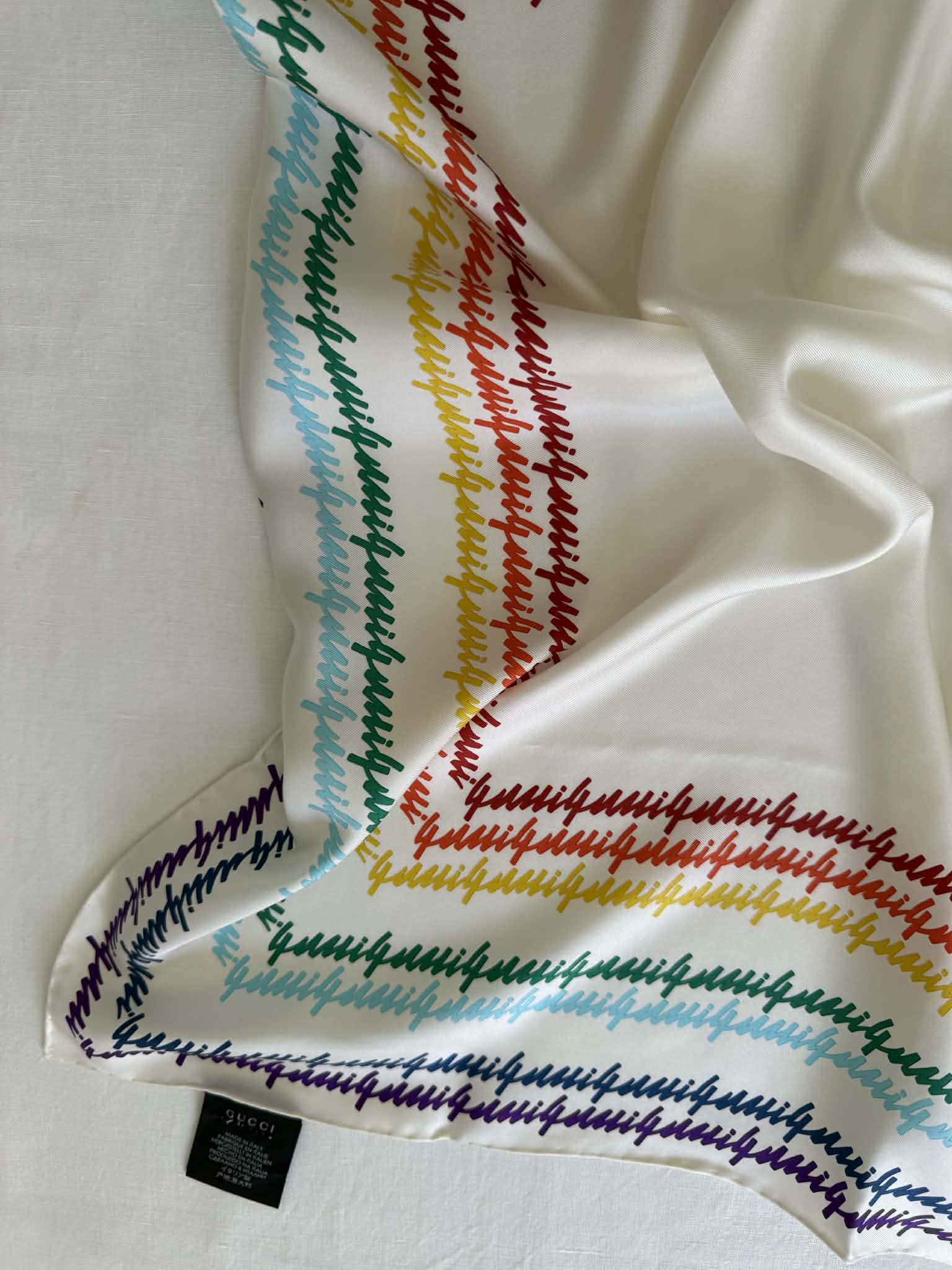 Gucci chusta jedwabna, kolorowe logo marki+ pudełko,