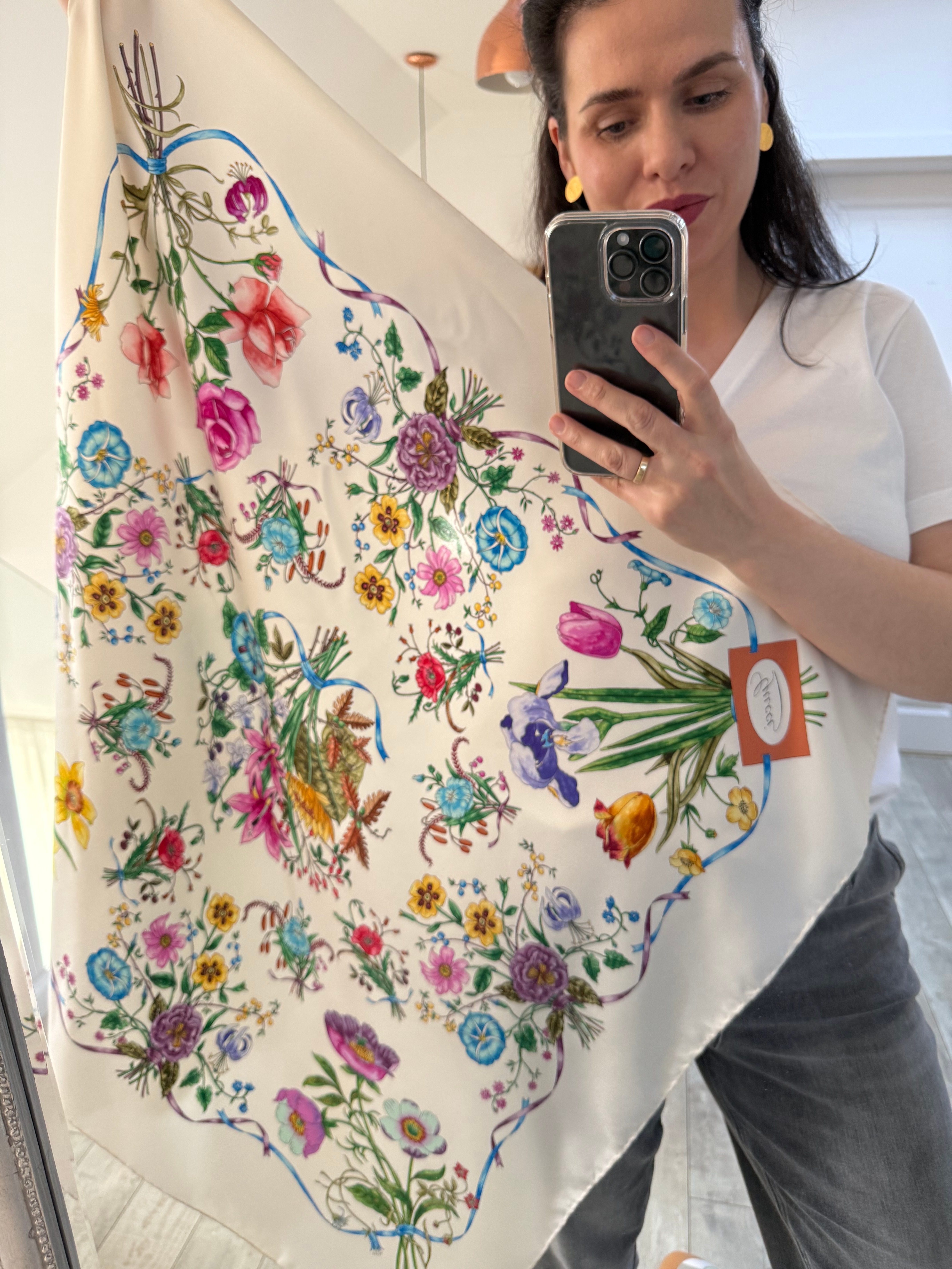 Gucci duża chusta motyw kwiatów, 100 % jedwab,XL