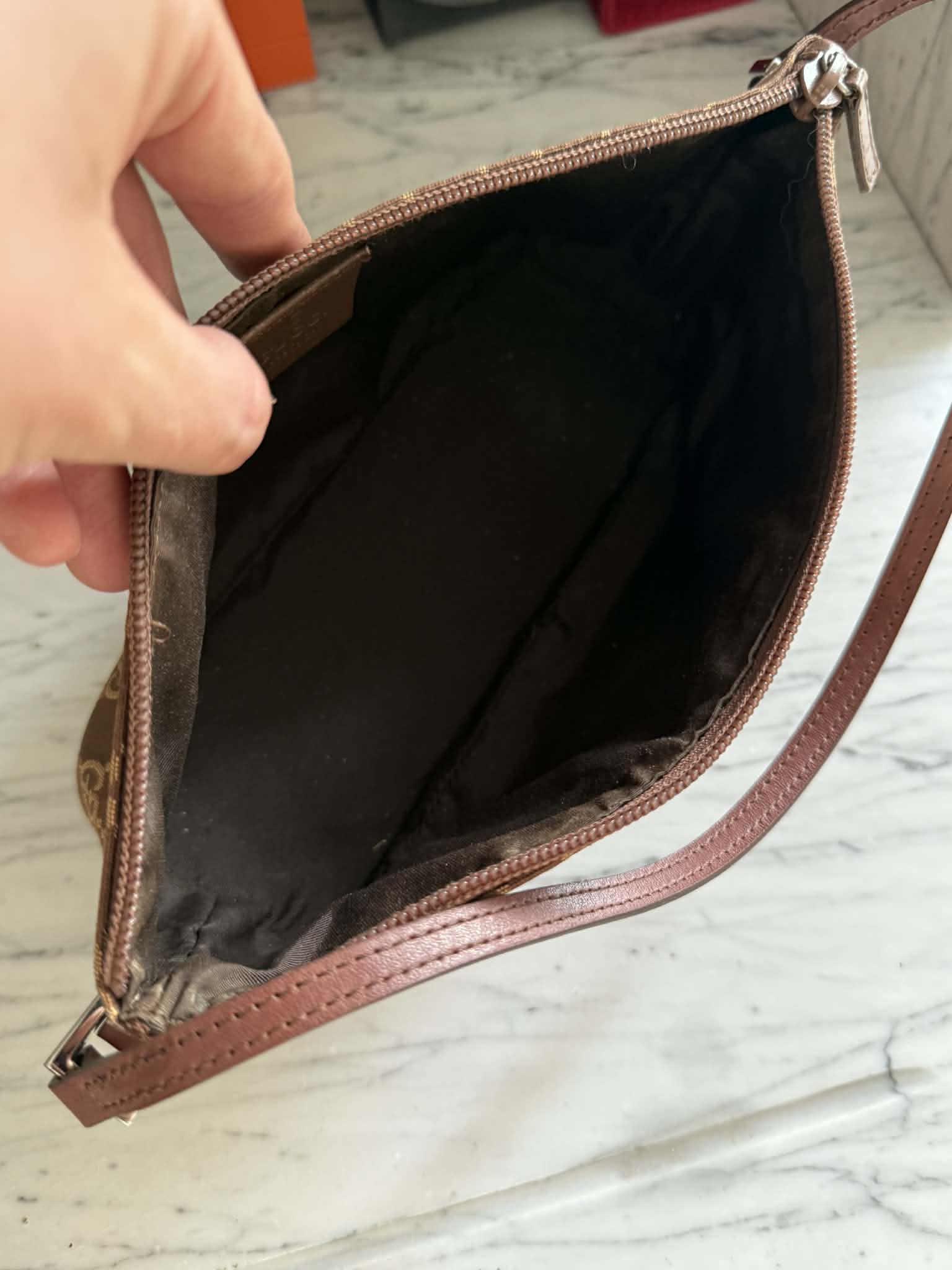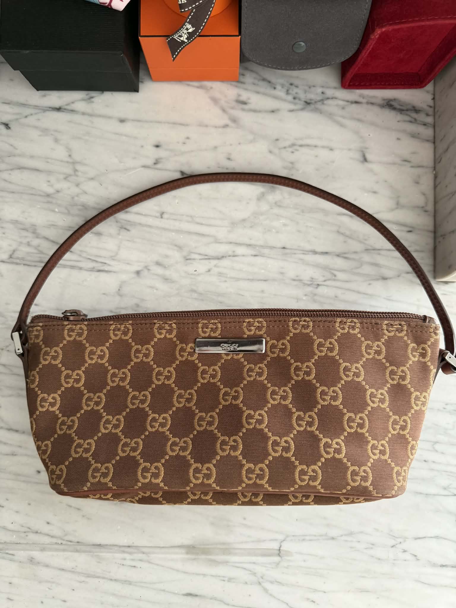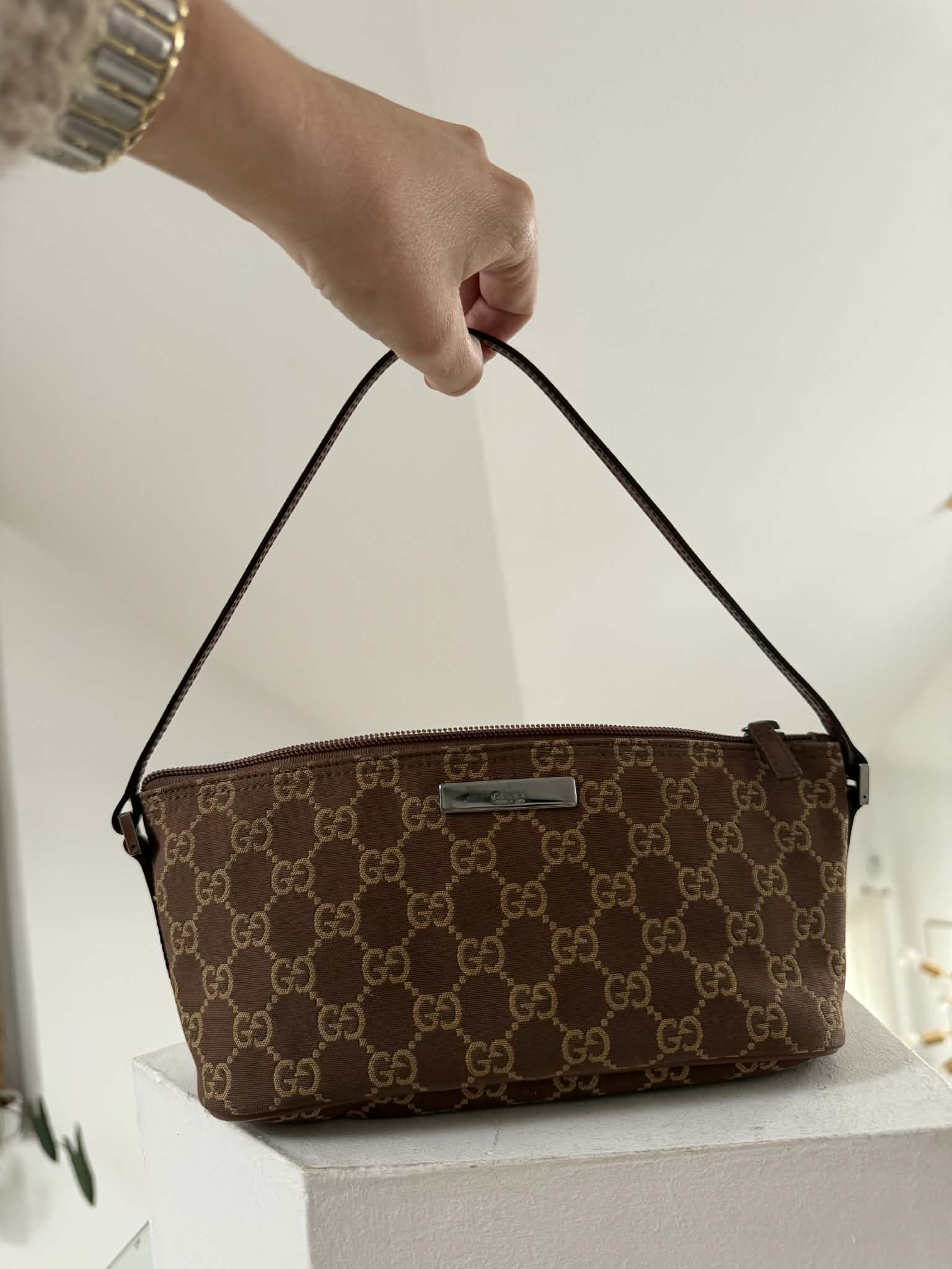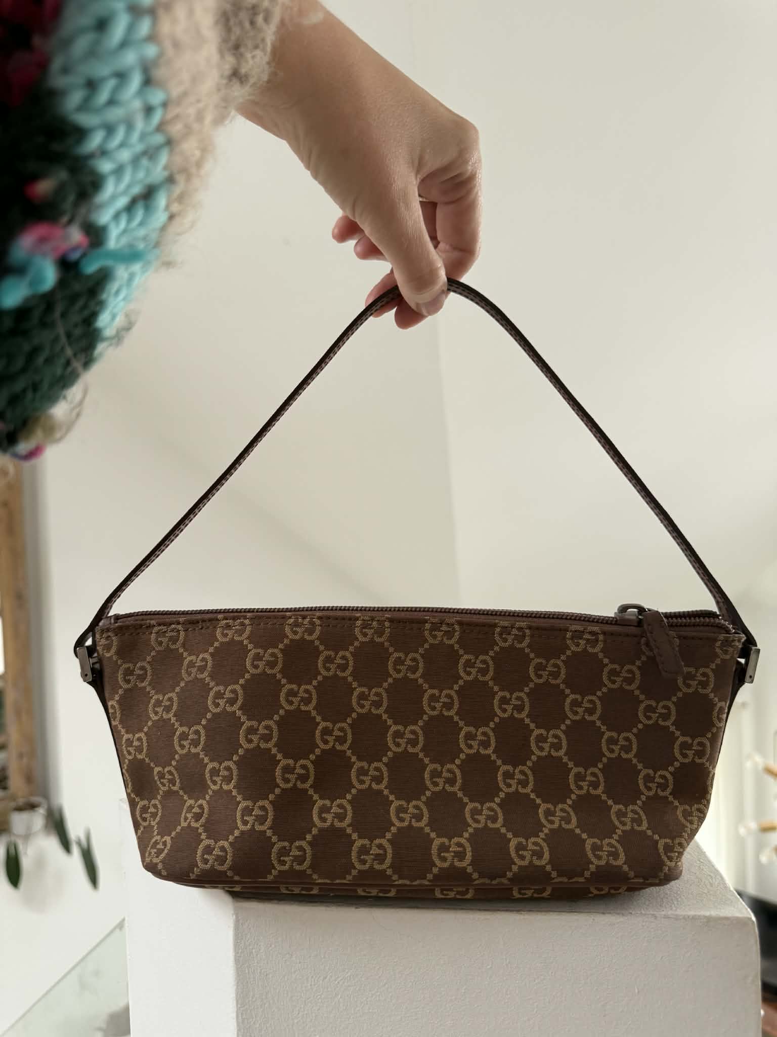 Gucci torebka monogram brąz do ręki lub pod ramię