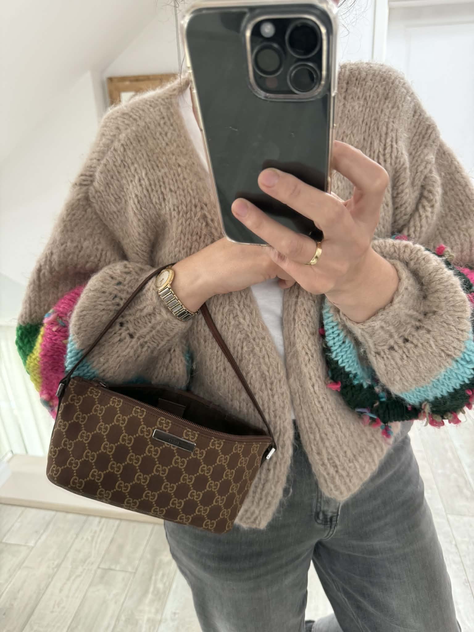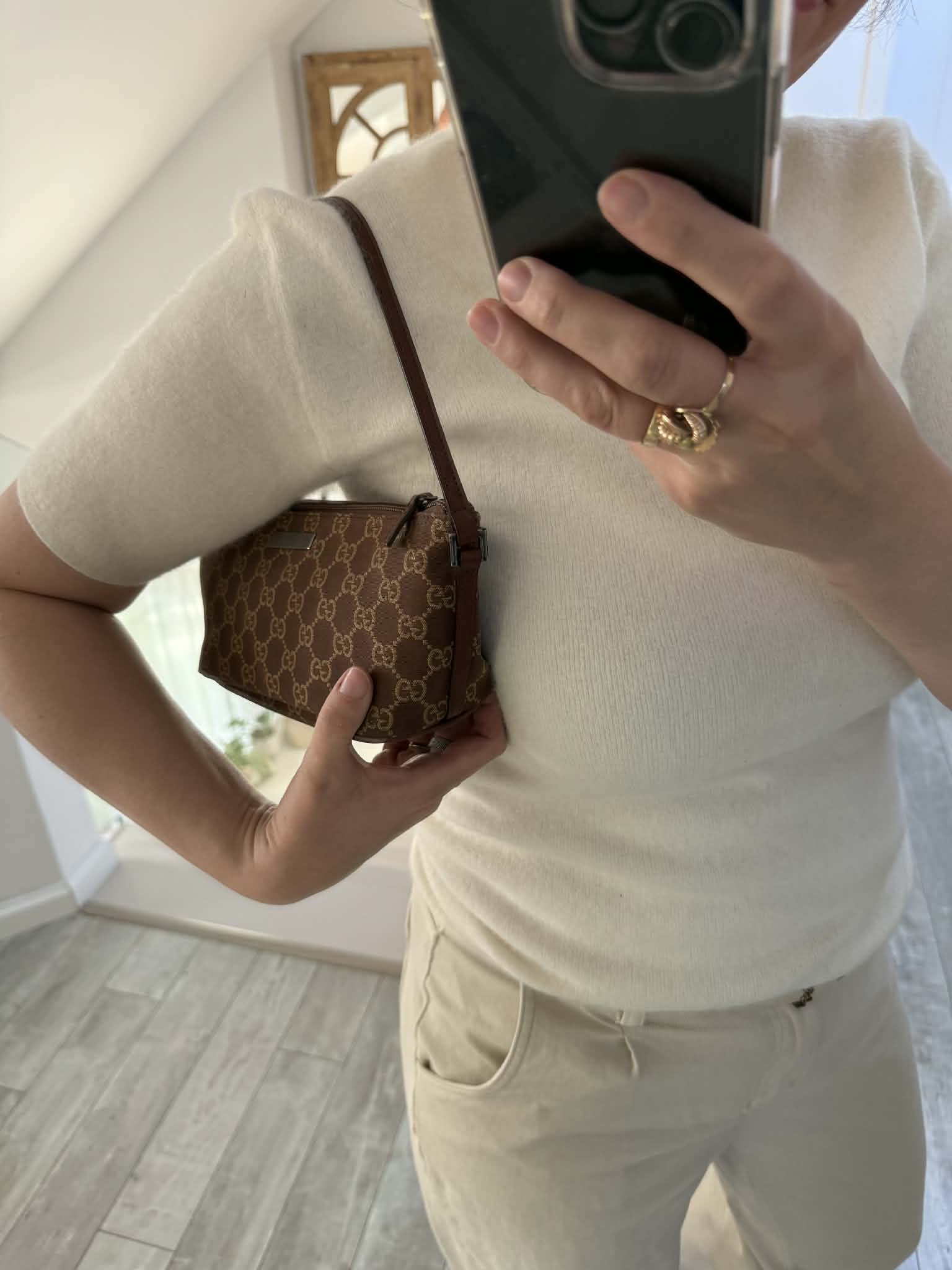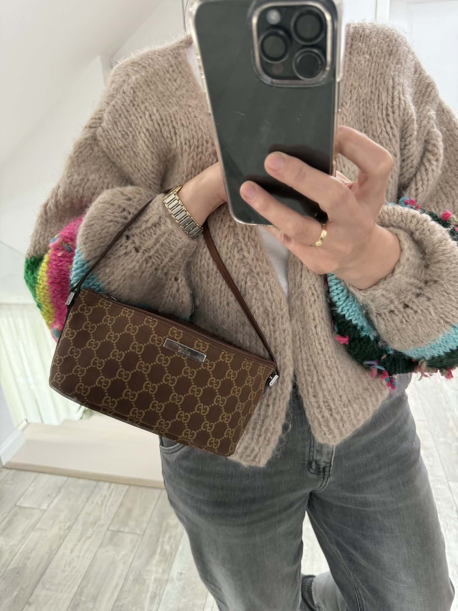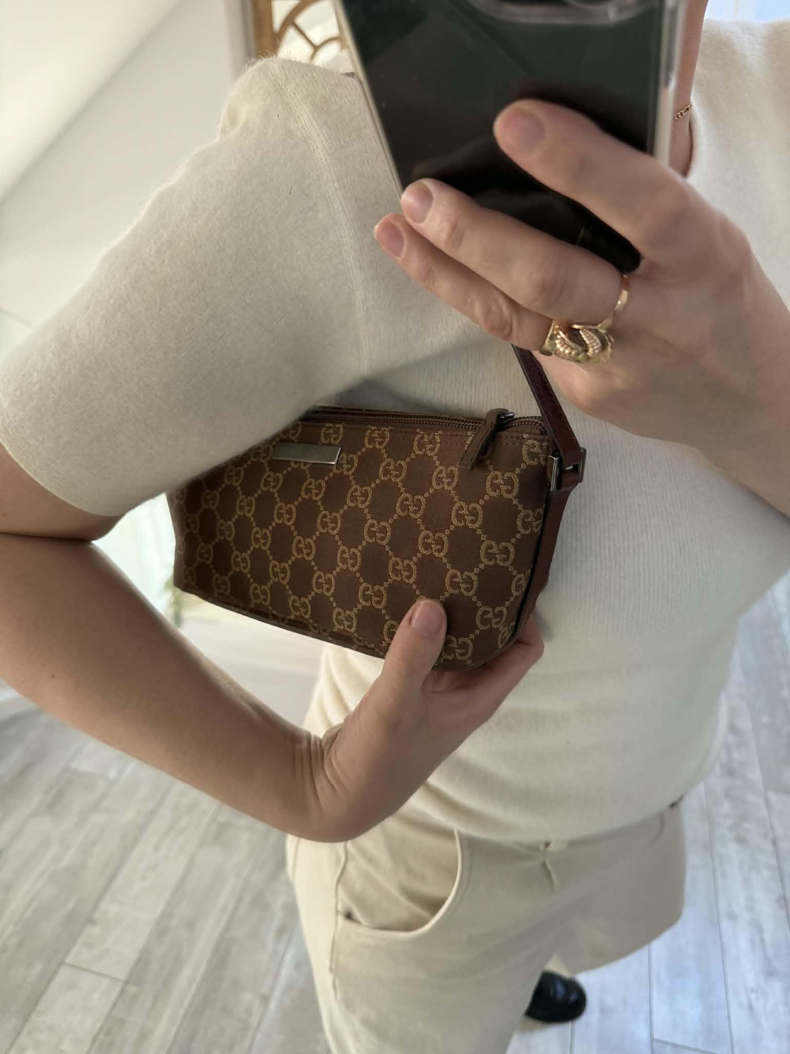 Gucci torebka monogram brąz do ręki lub pod ramię