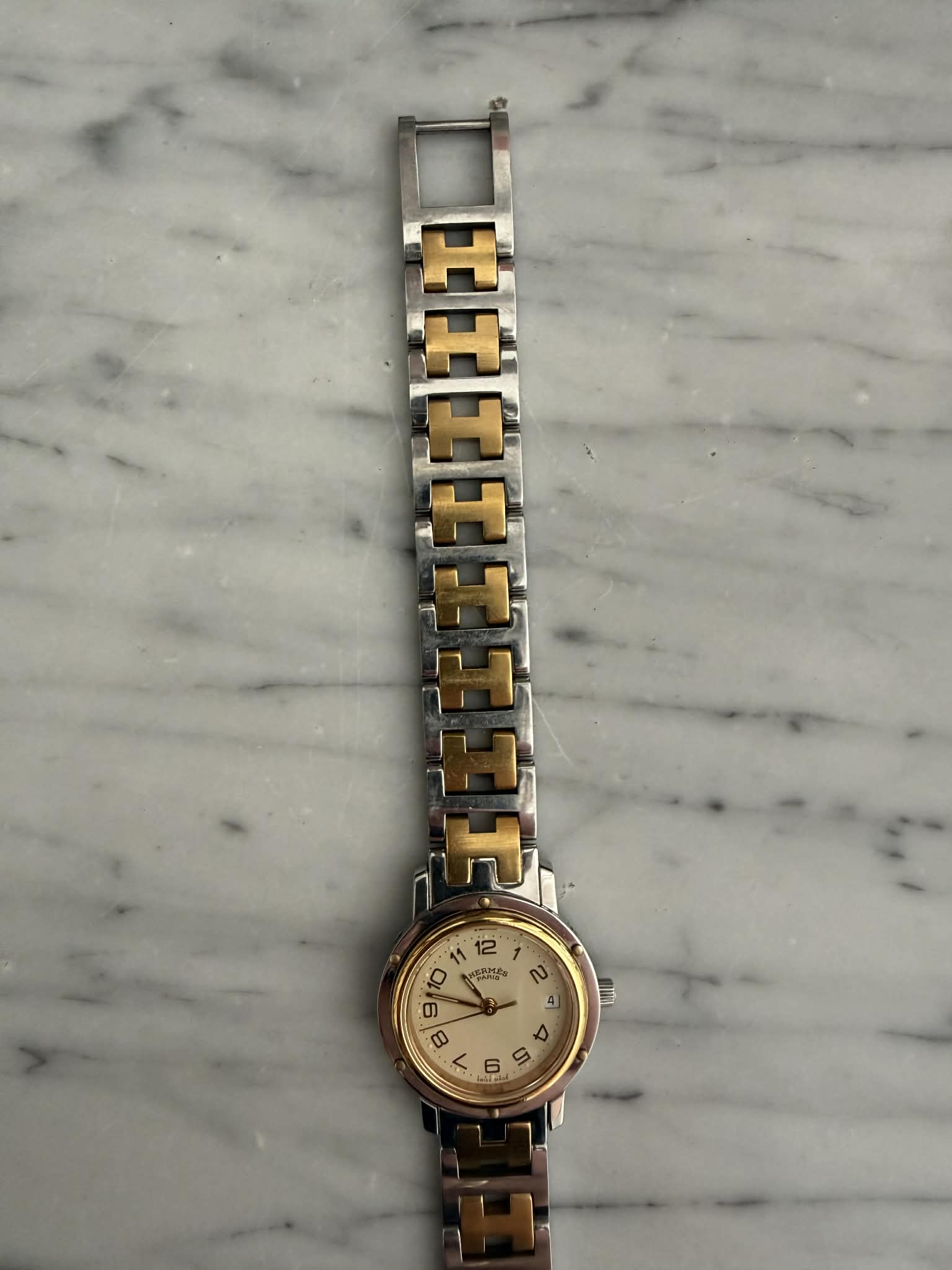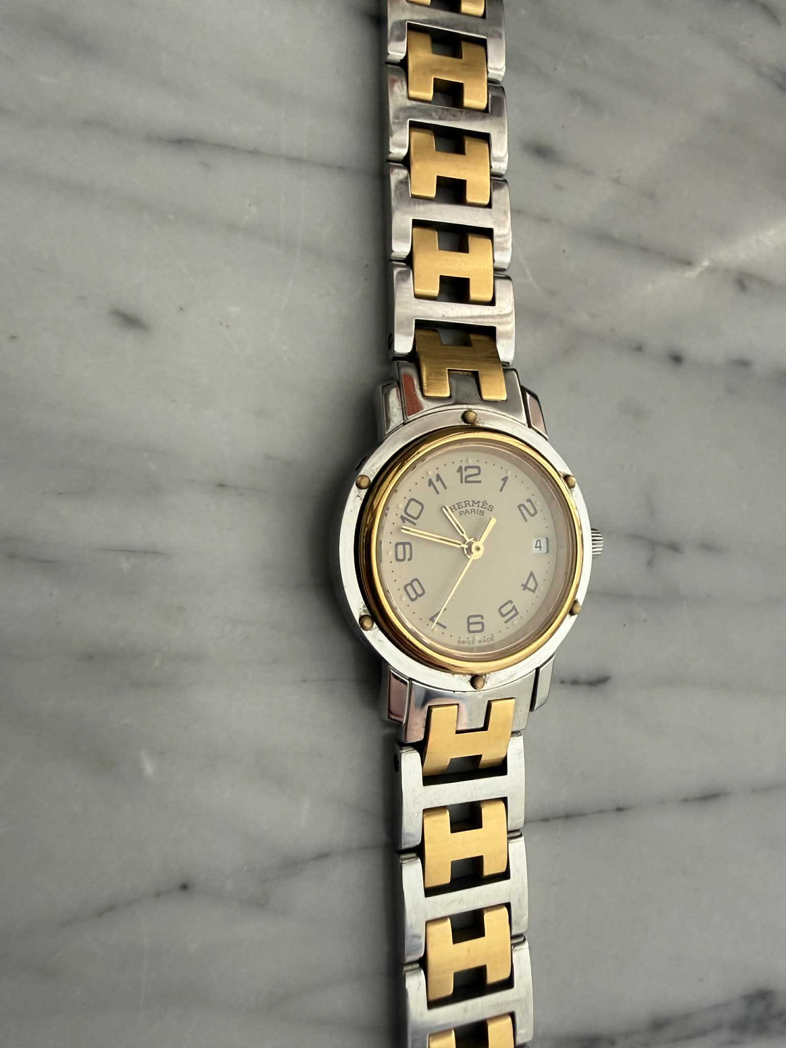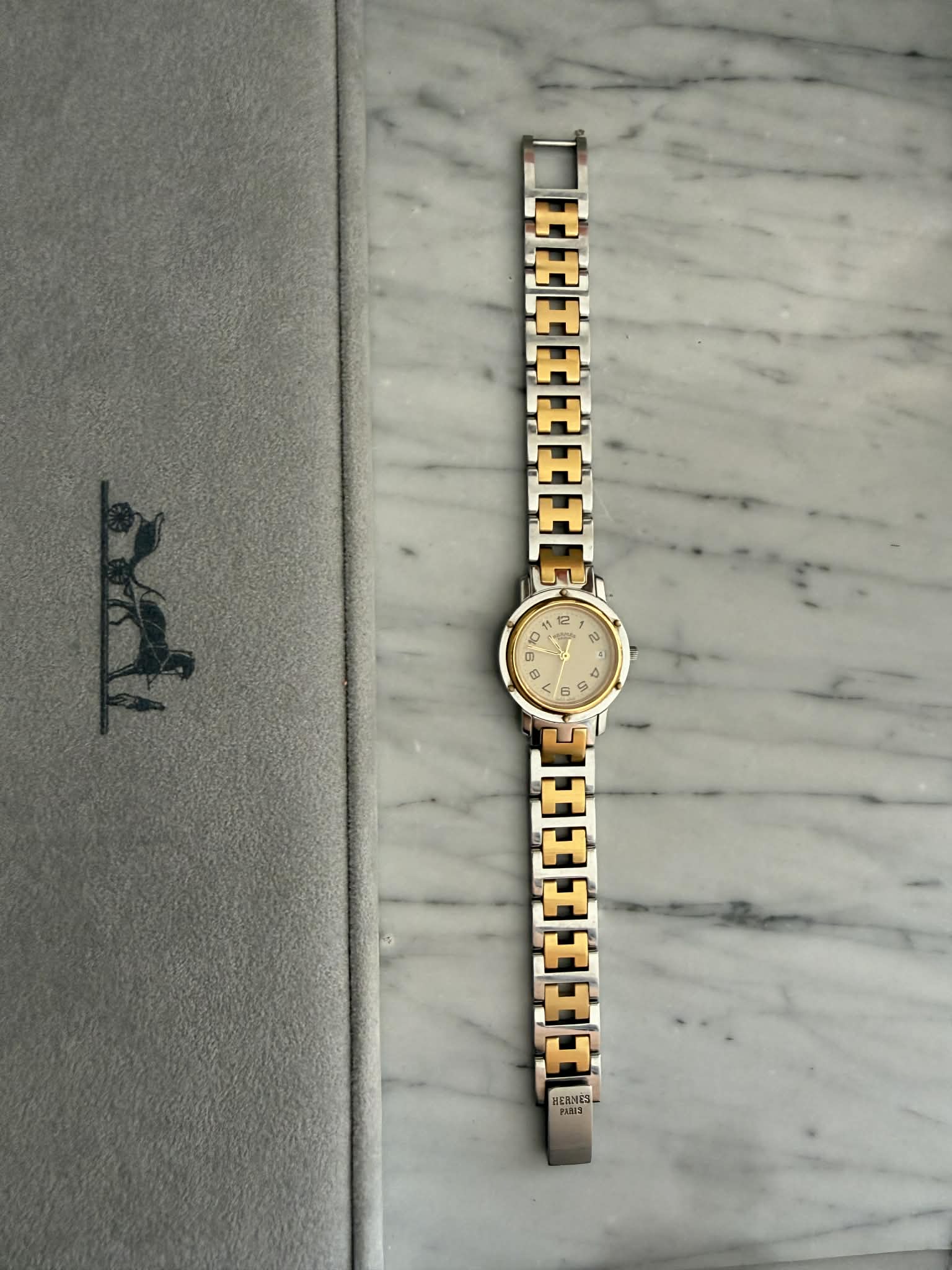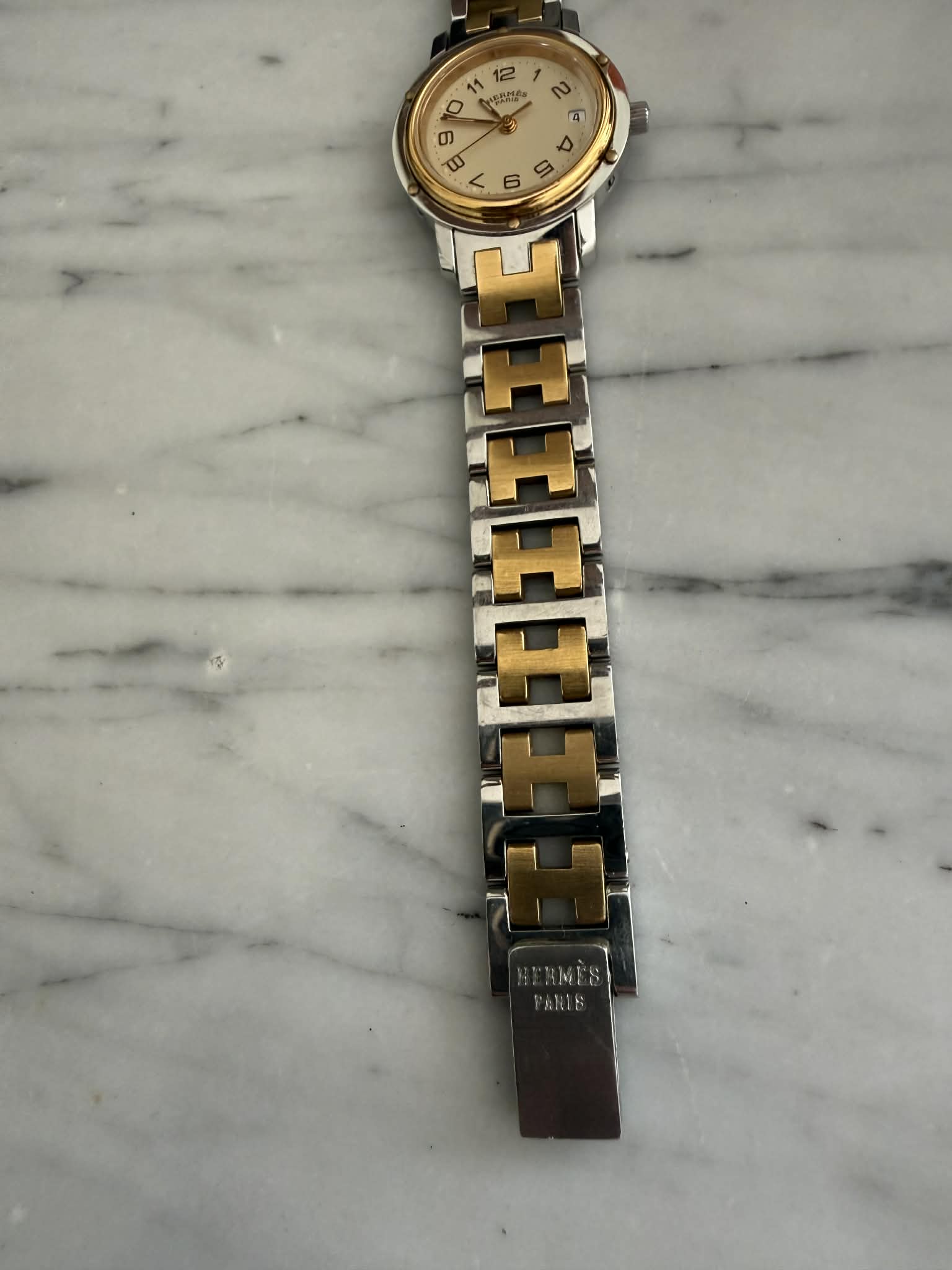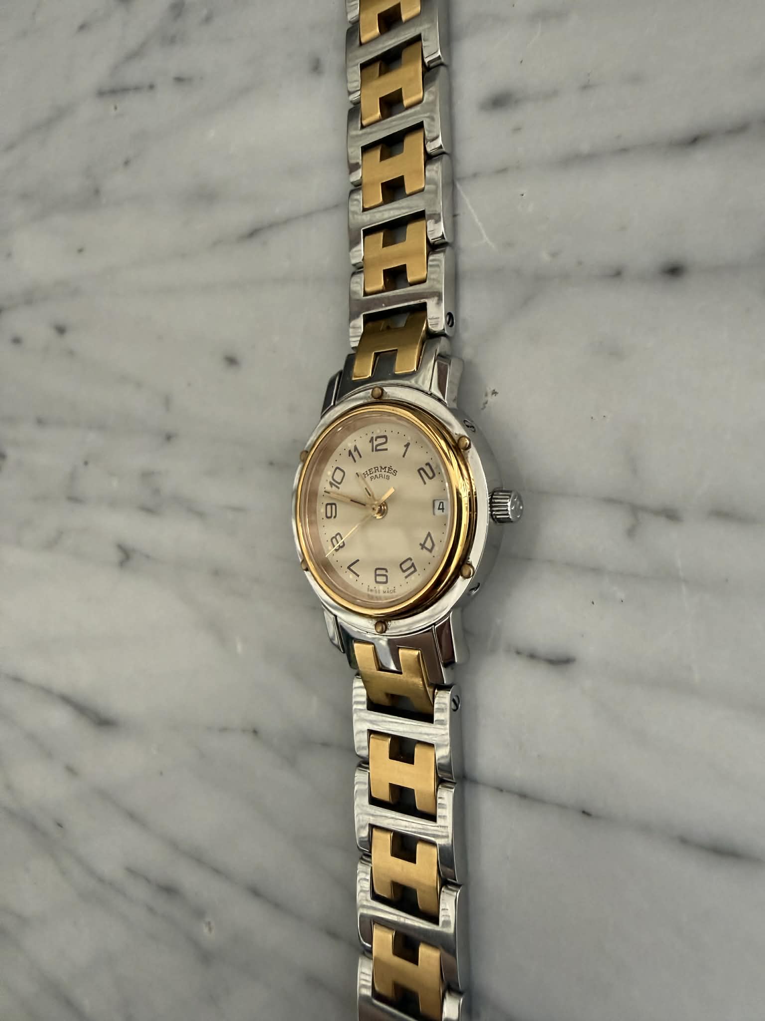 Hermès Clipper – srebrno-złoty zegarek damski, oryginalny, w pięknym stanie + BOX (1)