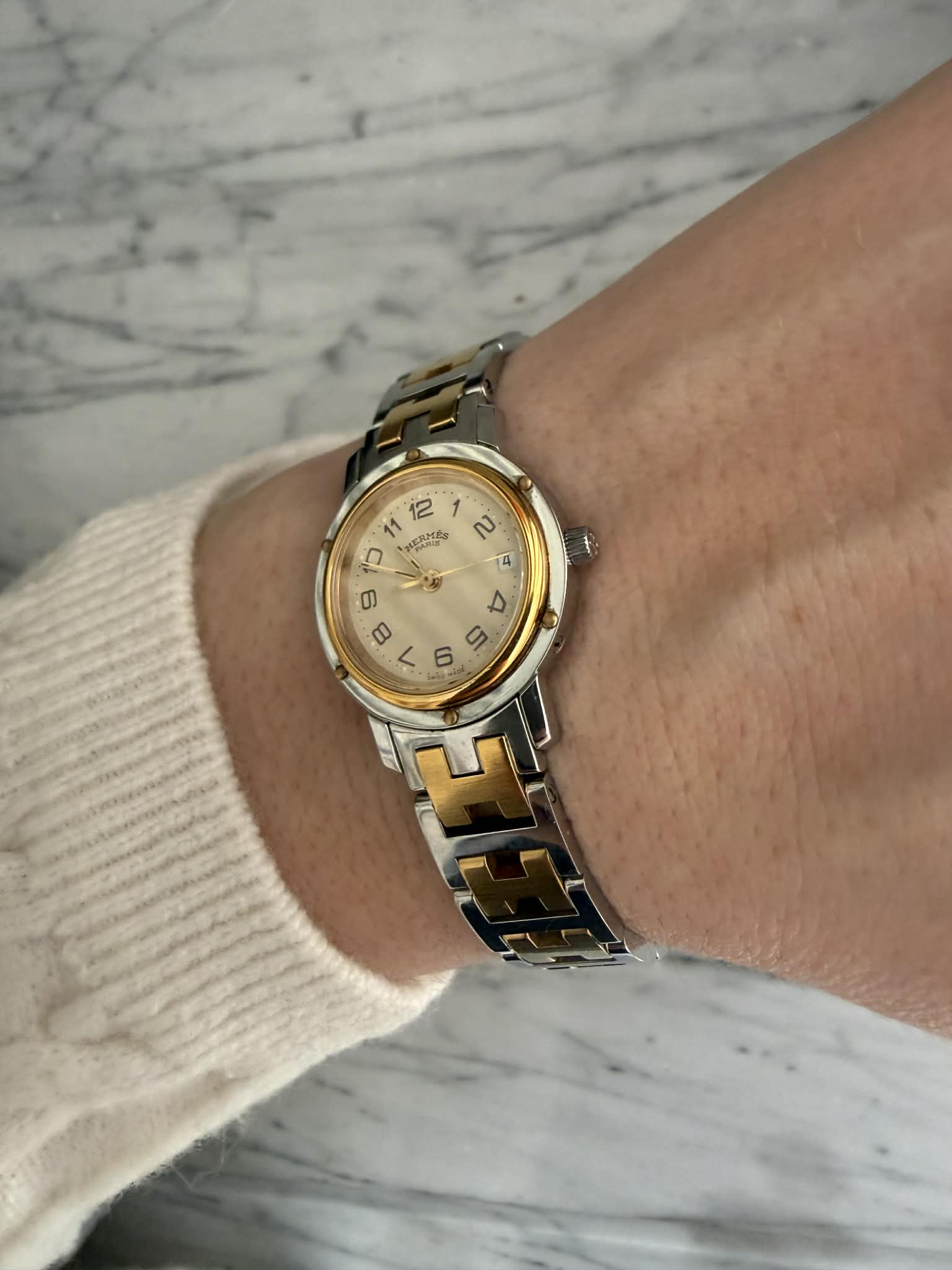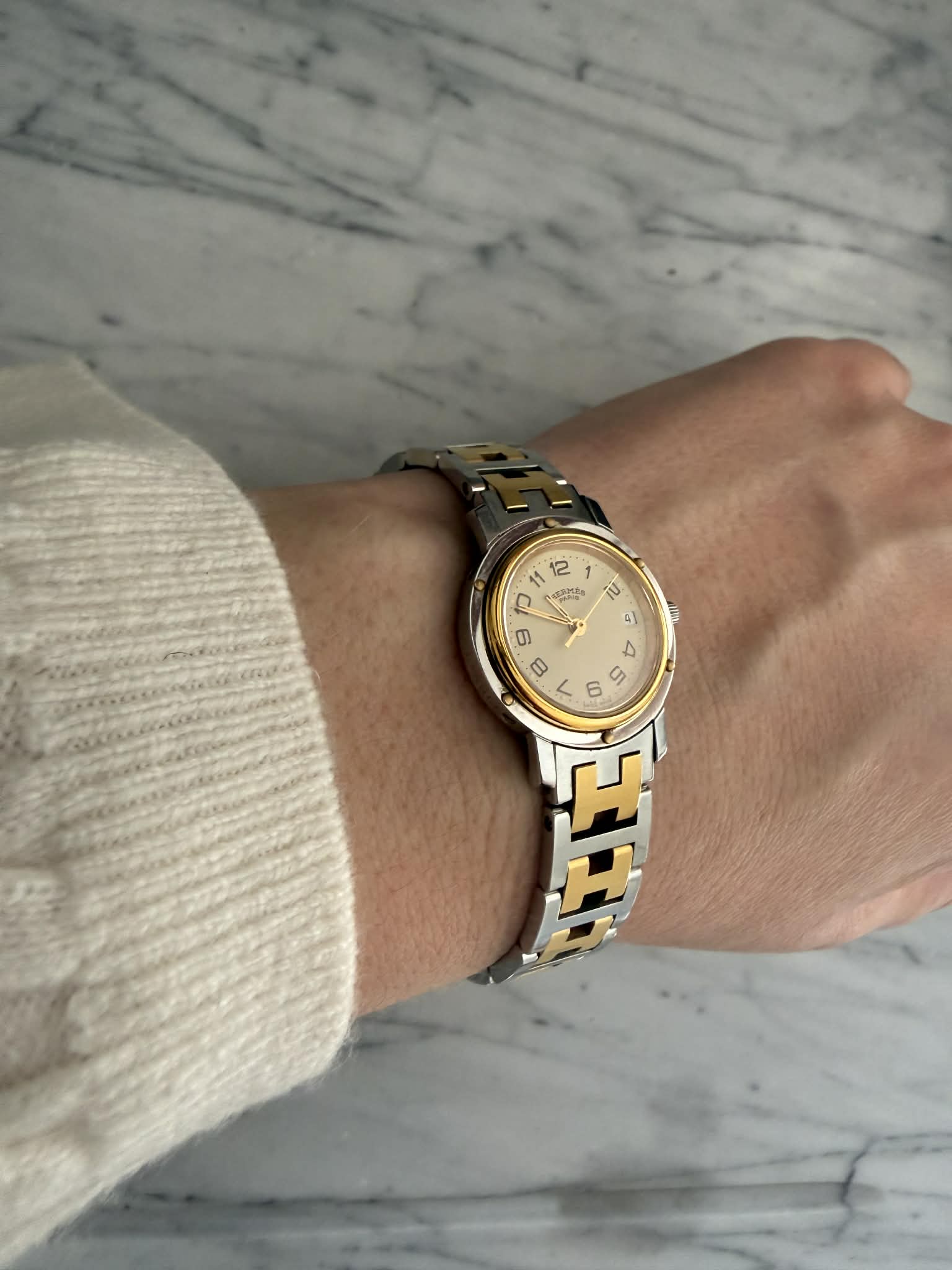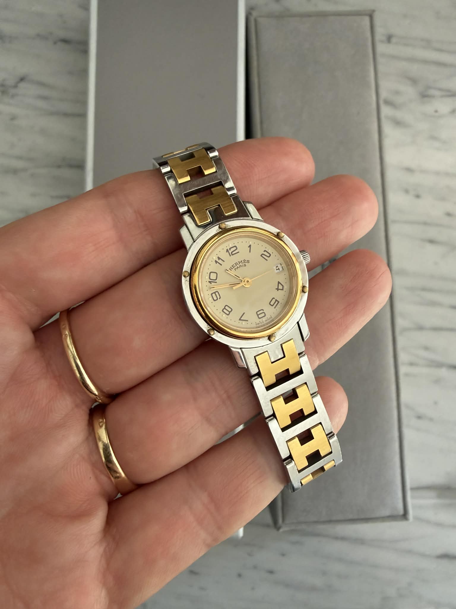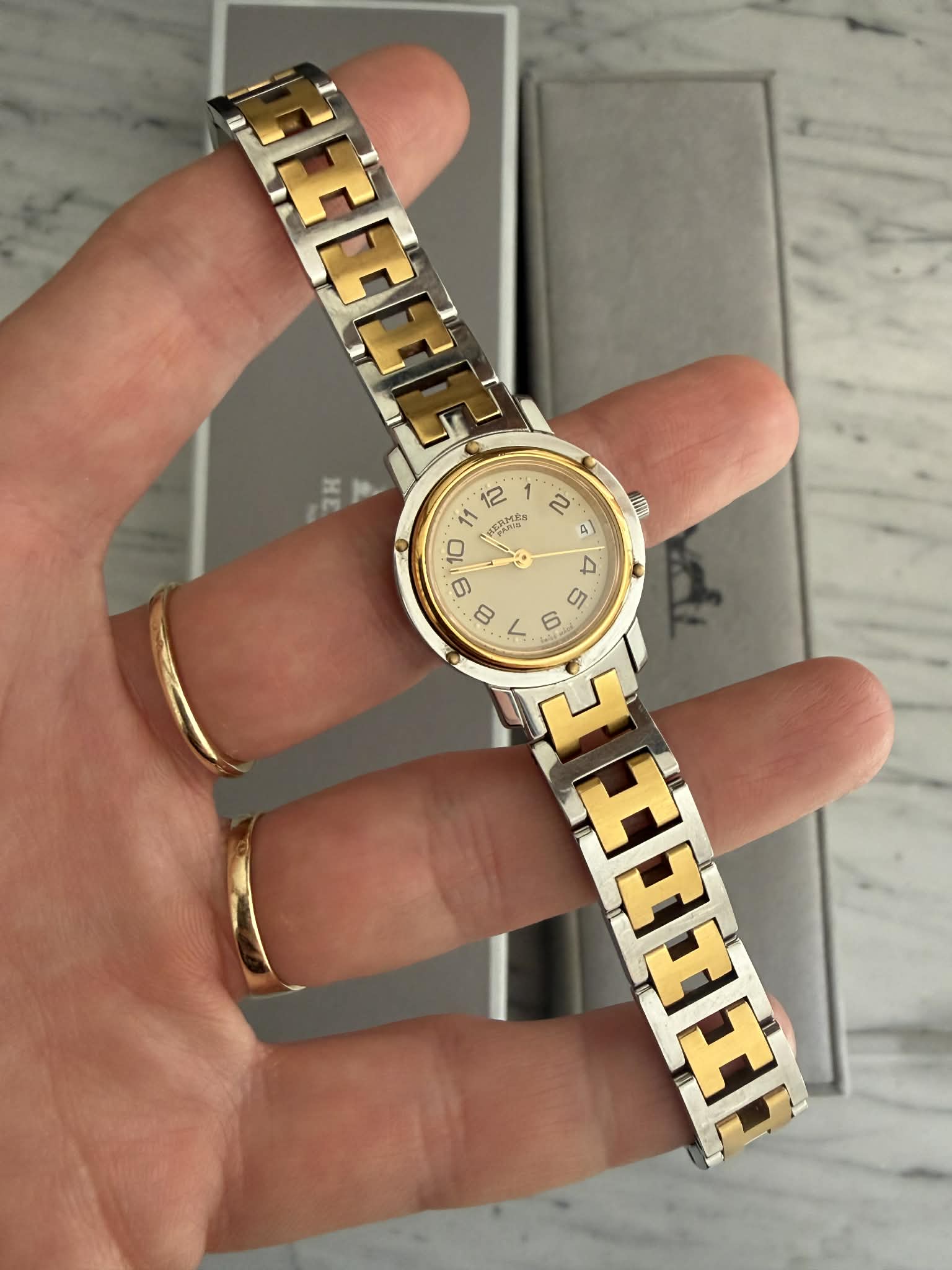 Hermès Clipper – srebrno-złoty zegarek damski, oryginalny, w pięknym stanie + BOX (1)