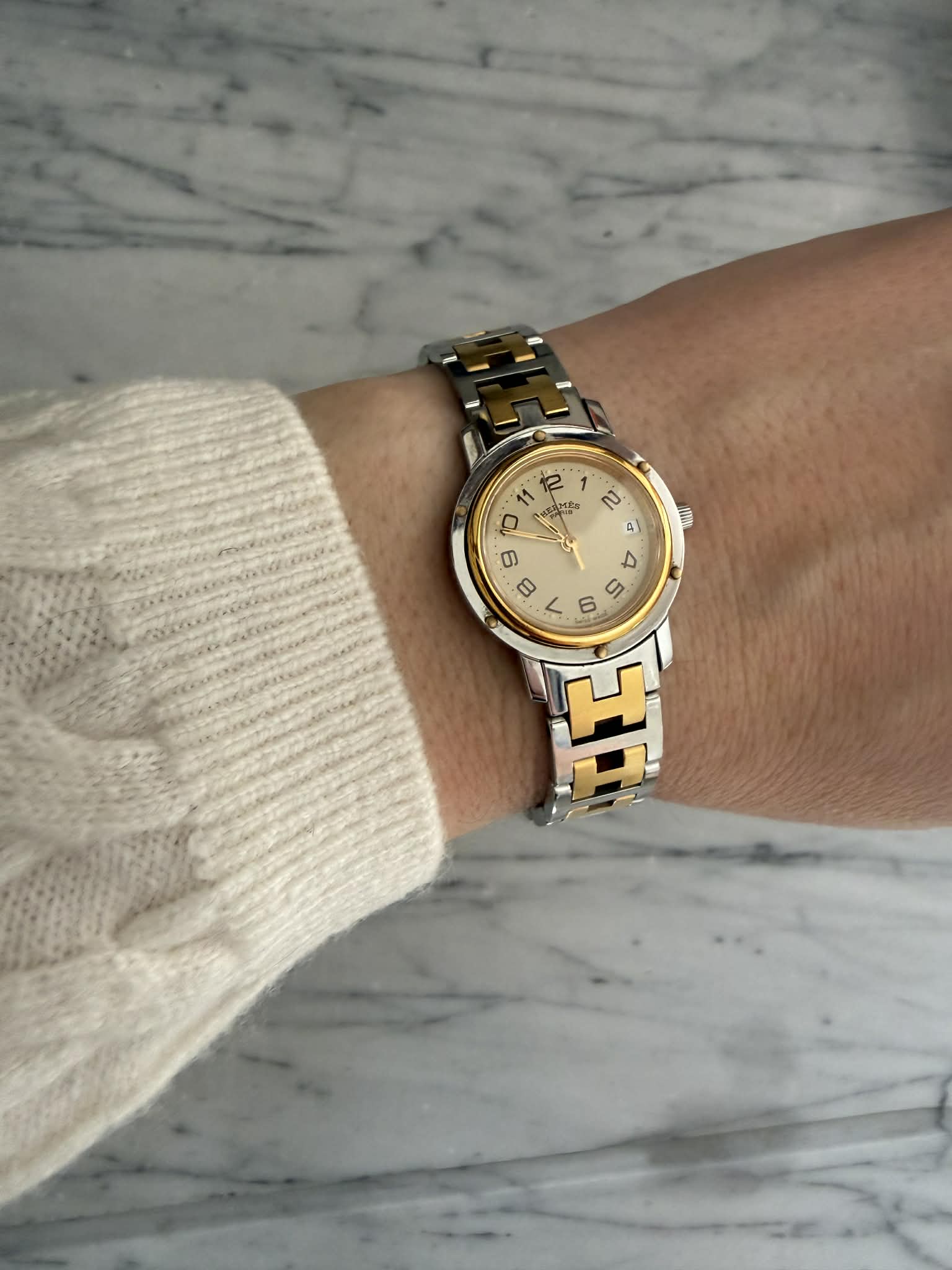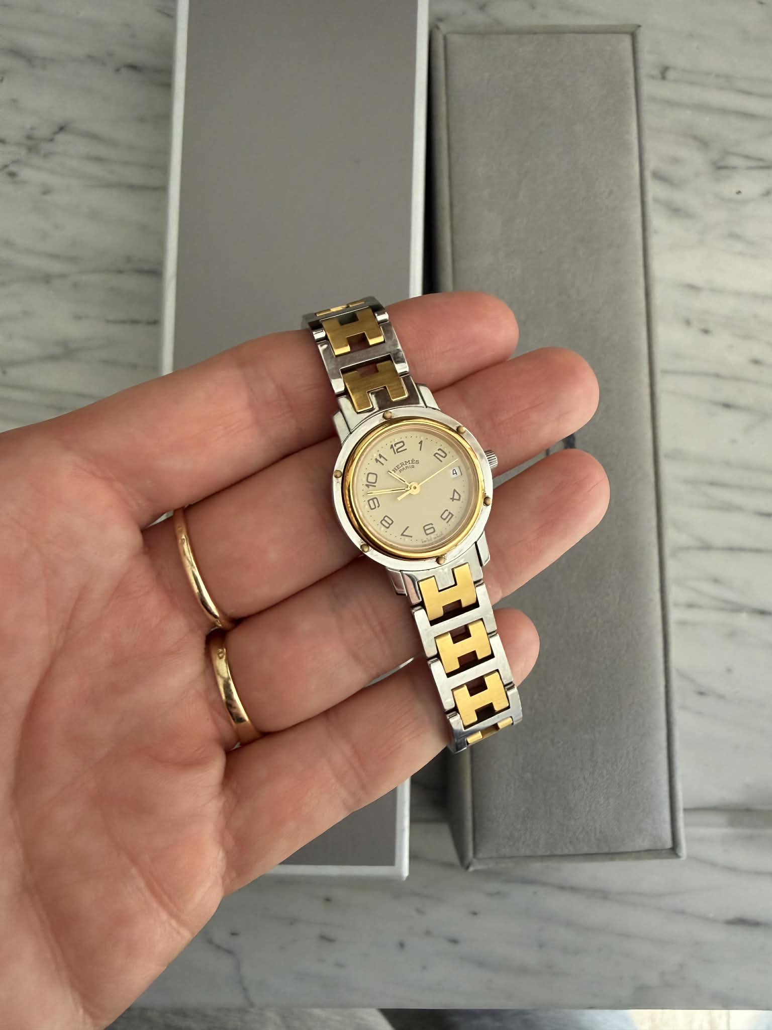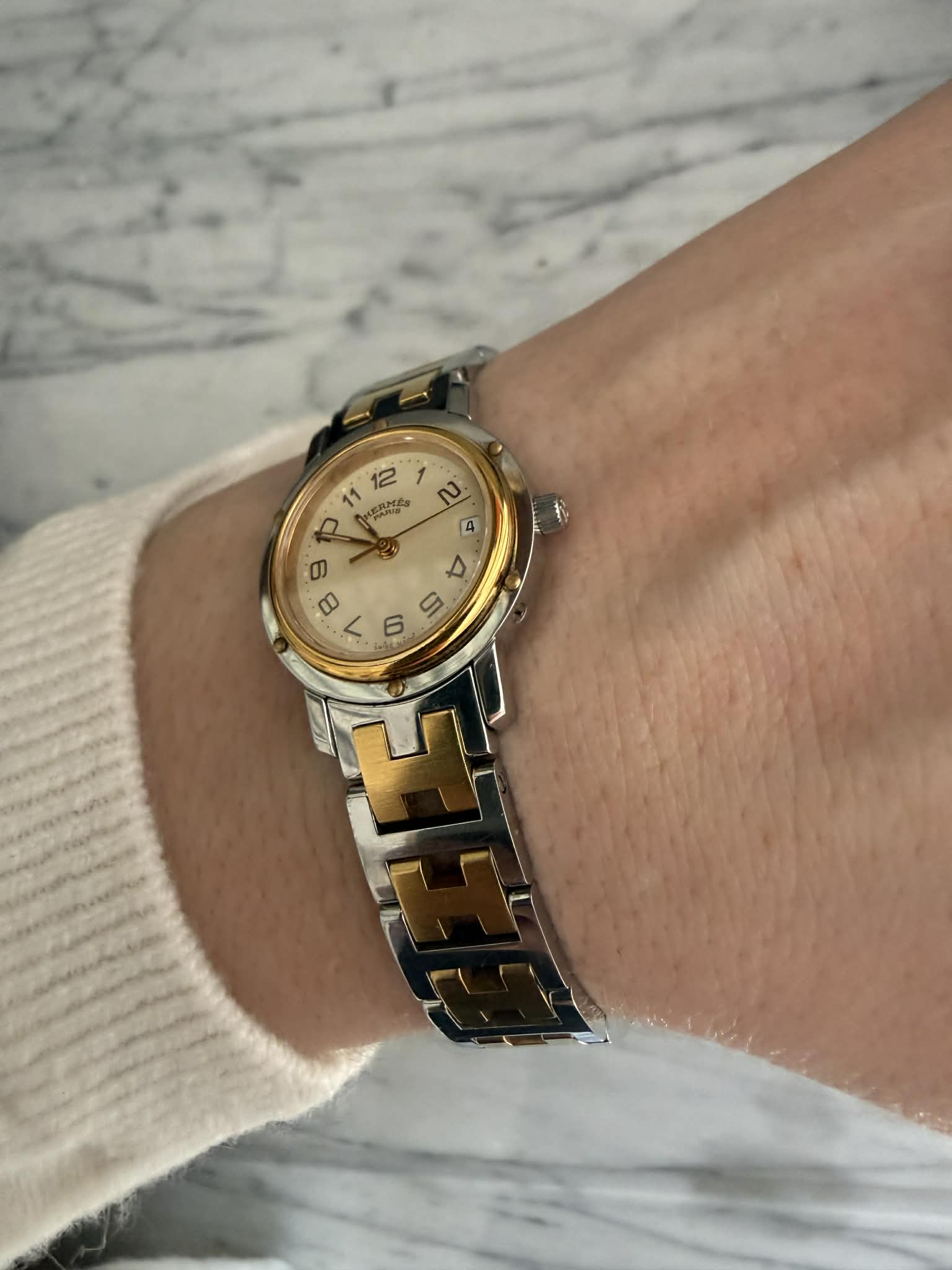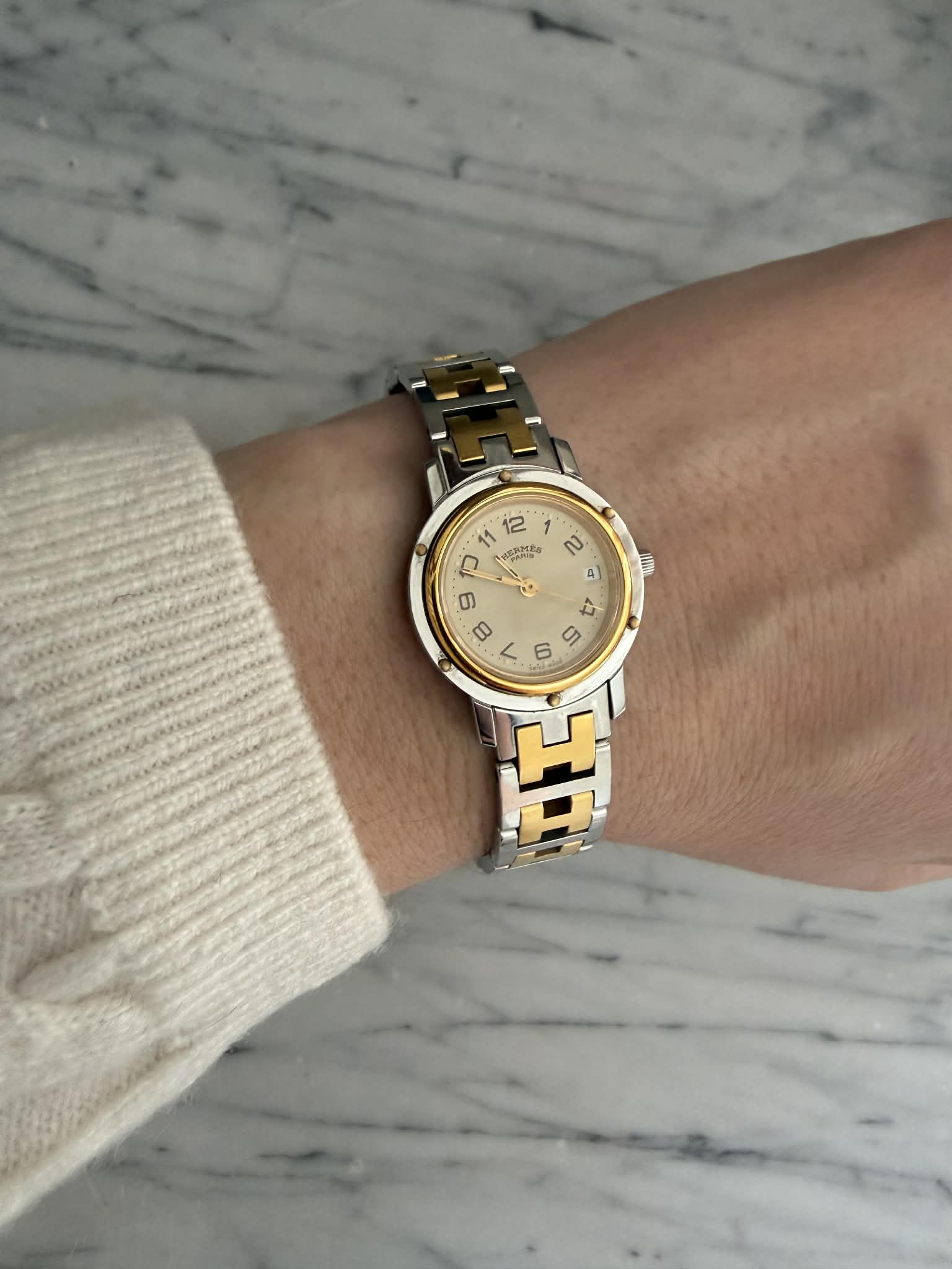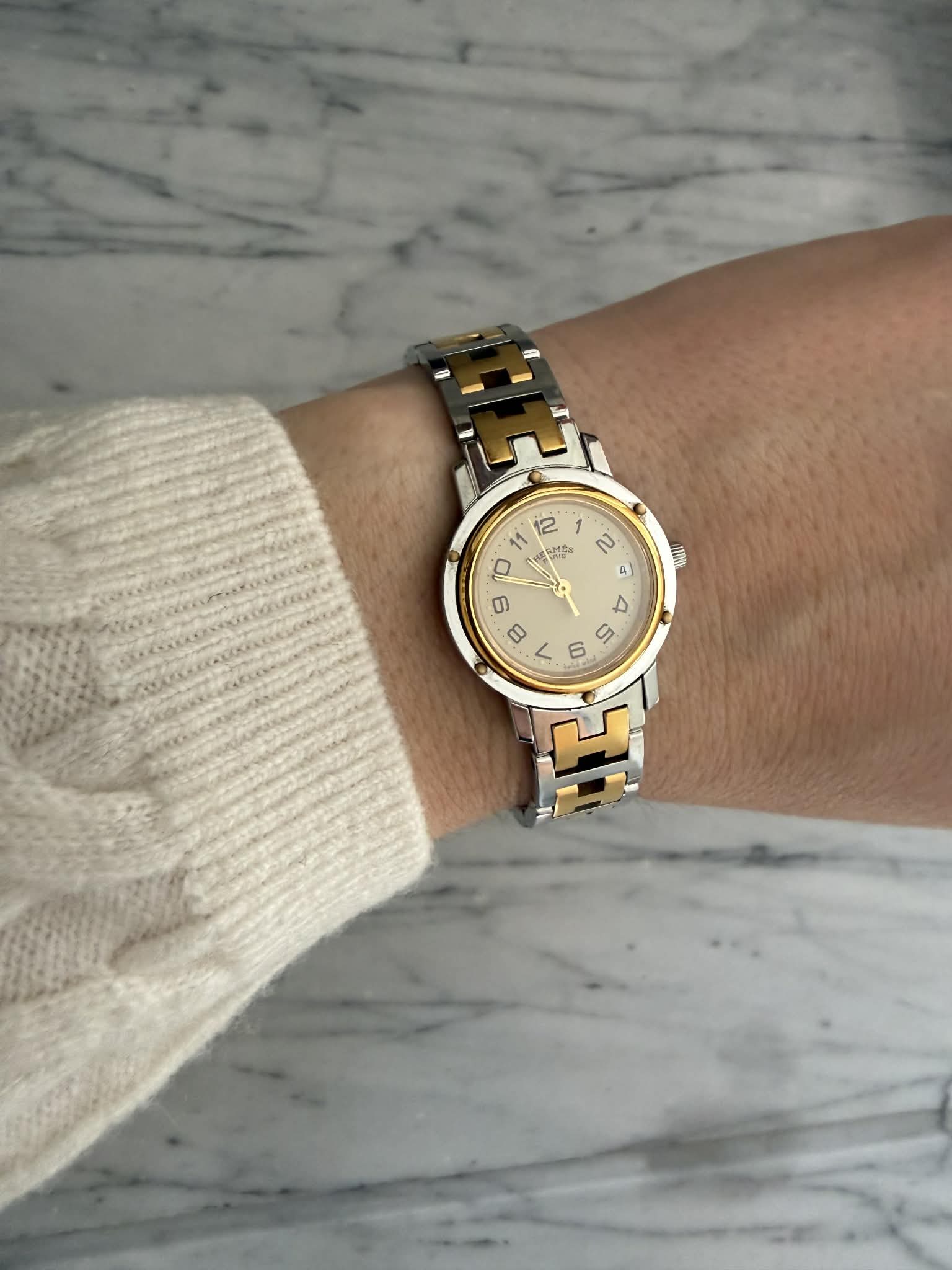 Hermès Clipper – srebrno-złoty zegarek damski, oryginalny, w pięknym stanie + BOX (1)