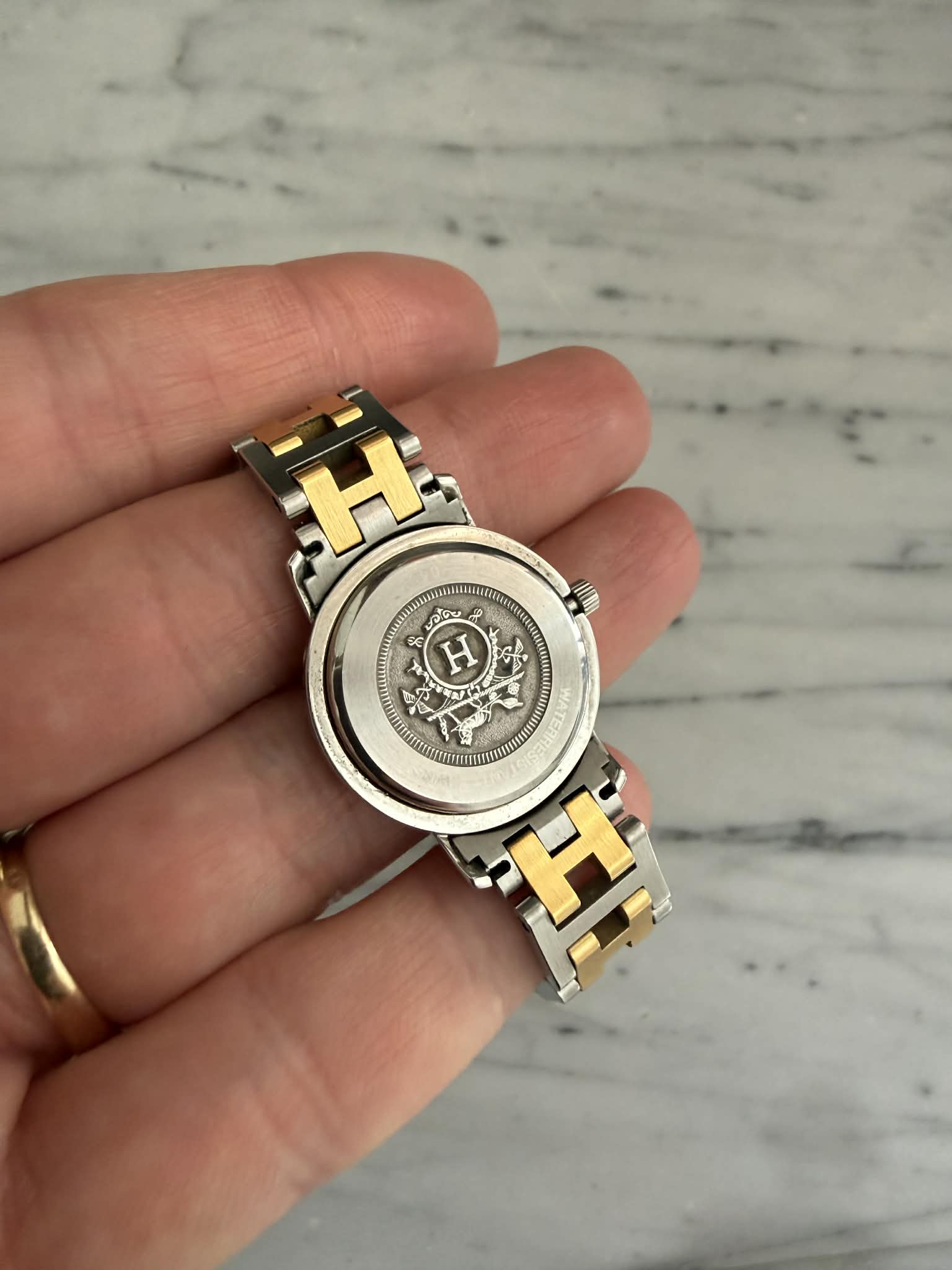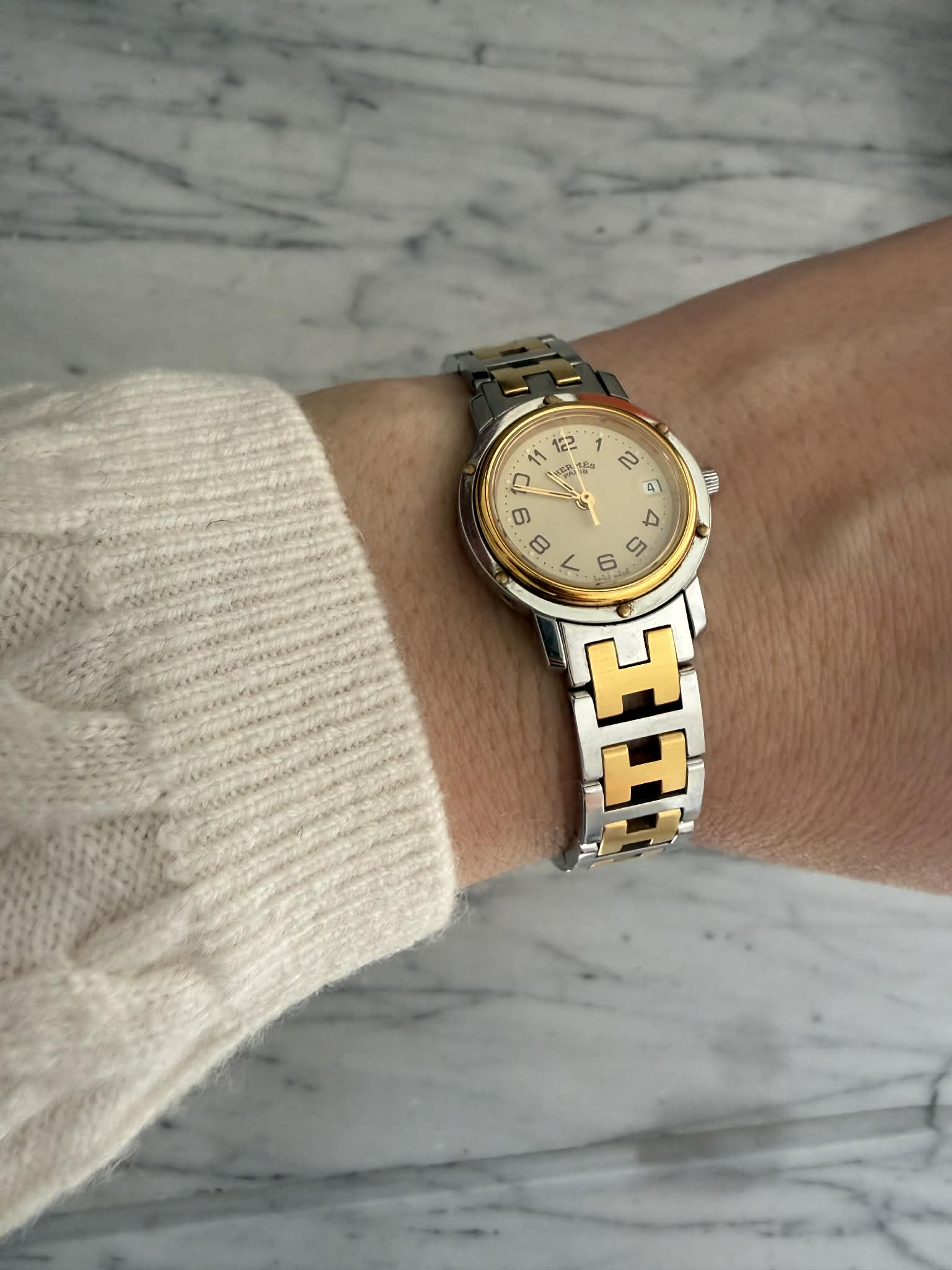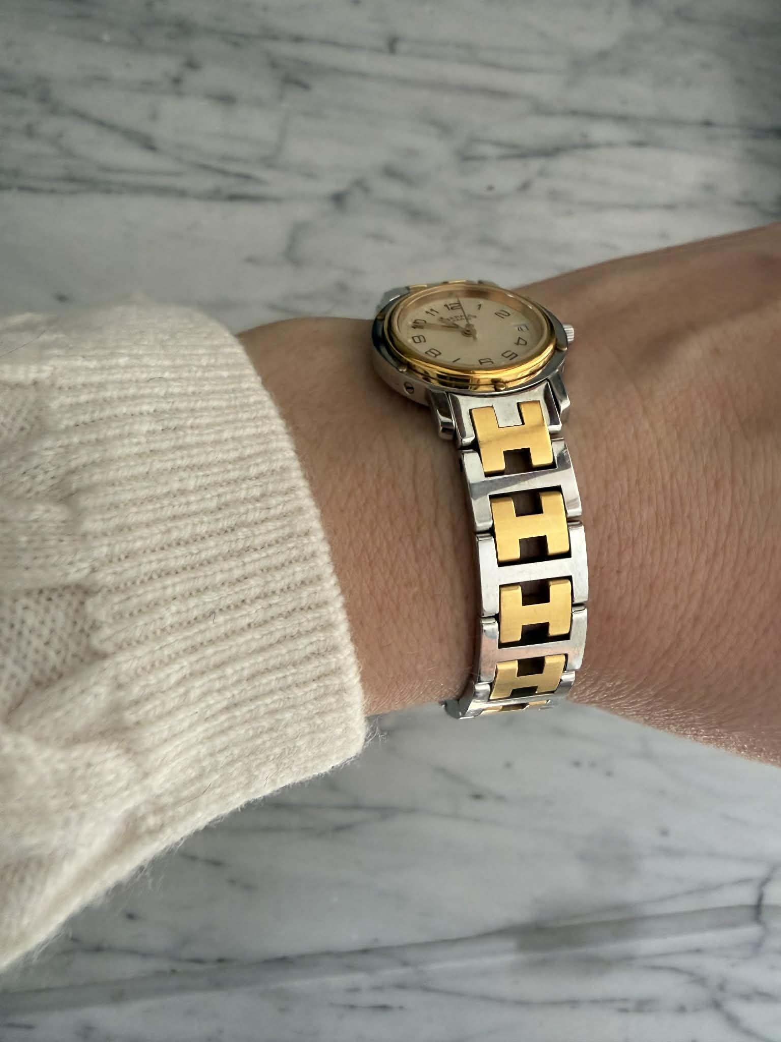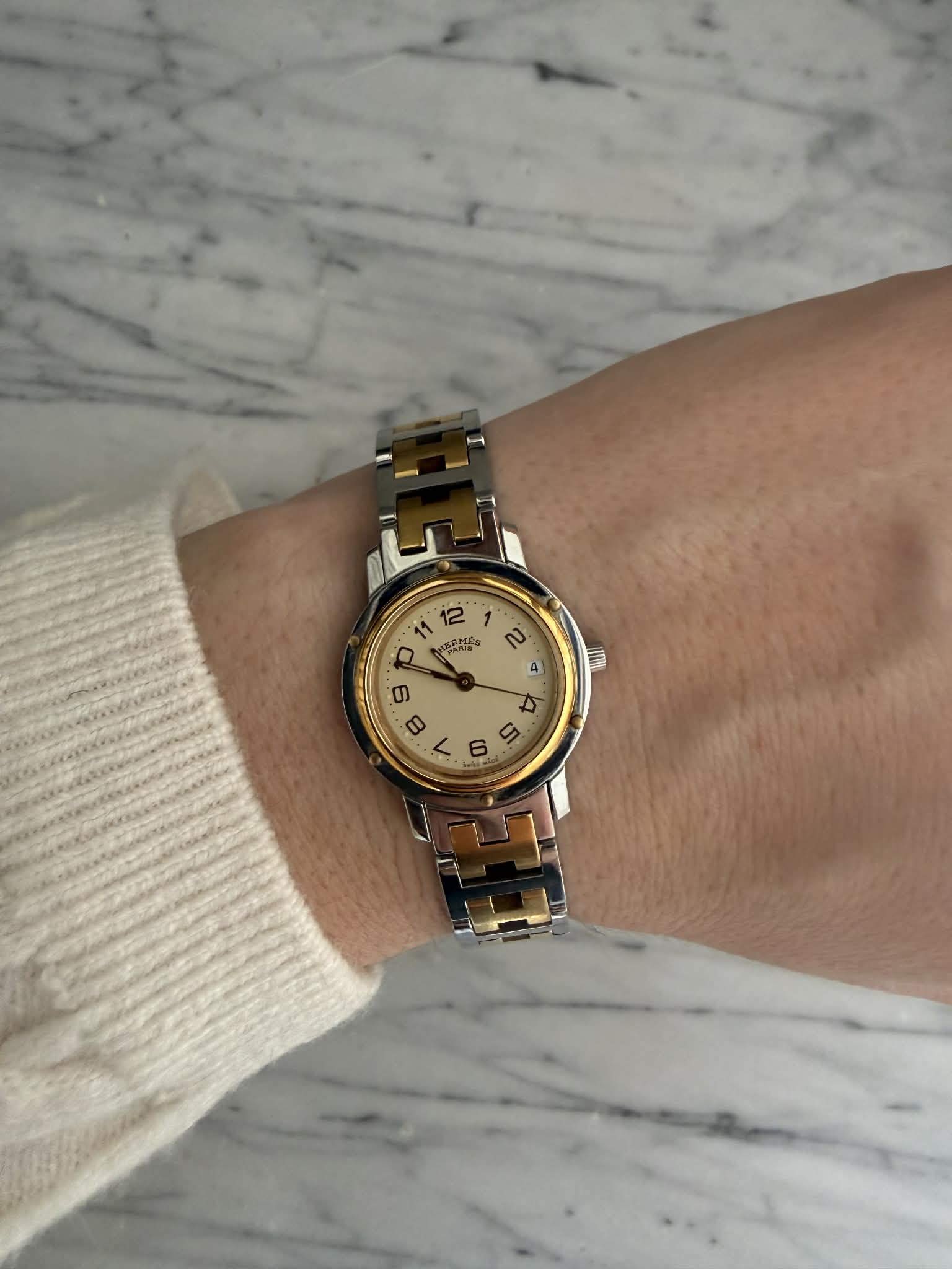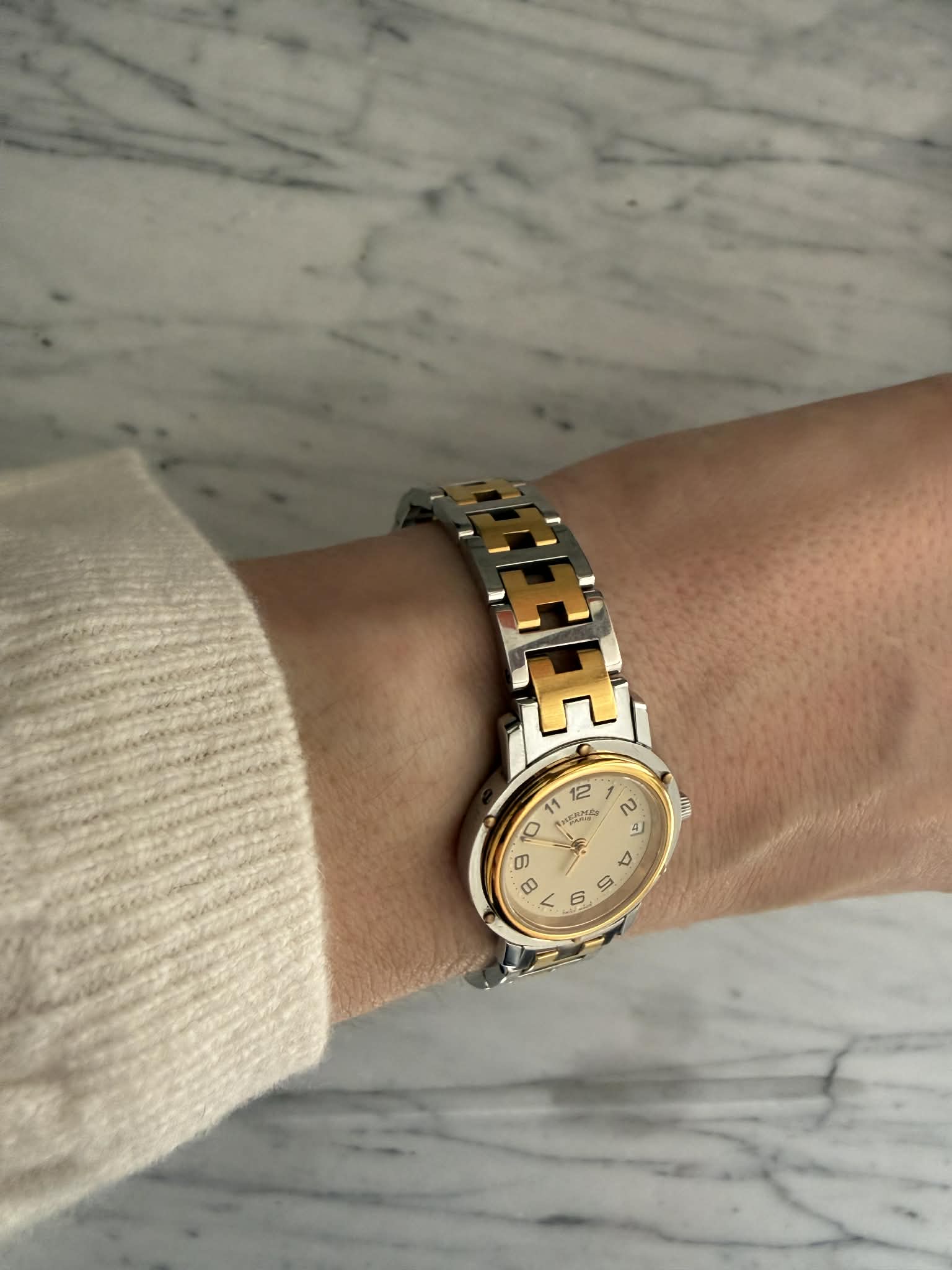 Hermès Clipper – srebrno-złoty zegarek damski, oryginalny, w pięknym stanie + BOX (1)
