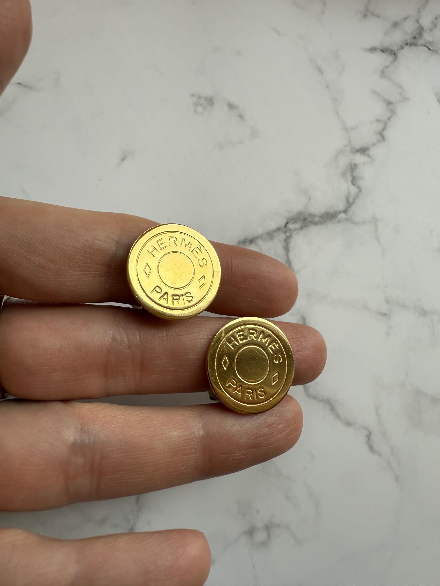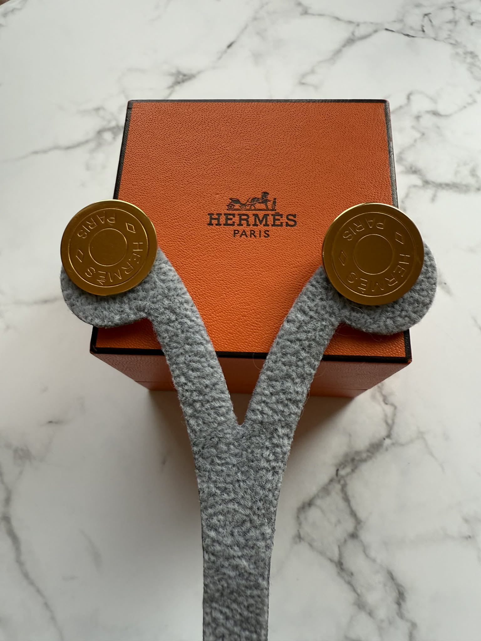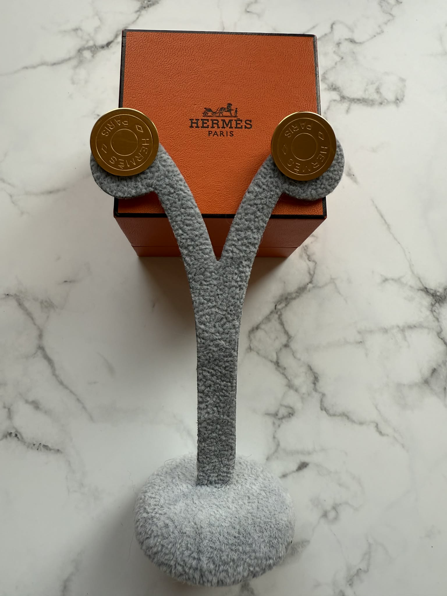 Hermès duże klipsy złote z logo – biżuteria premium + oryginalne pudełko