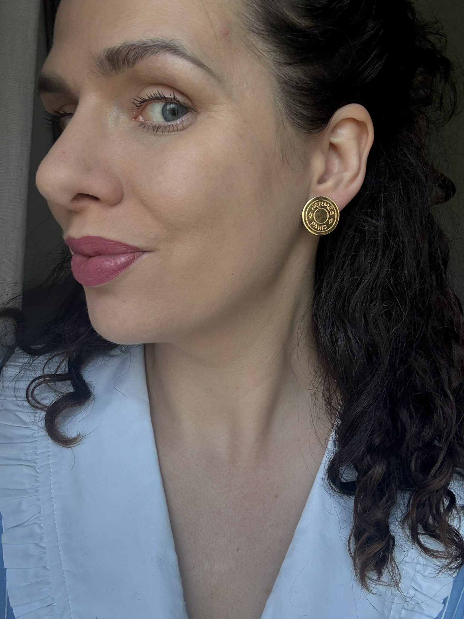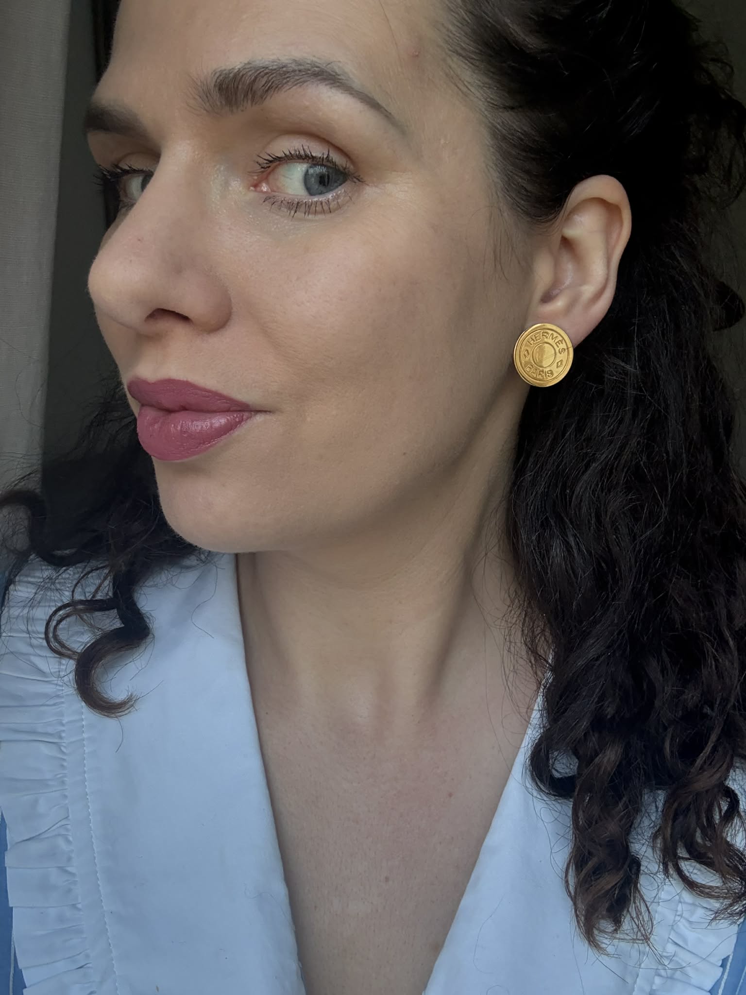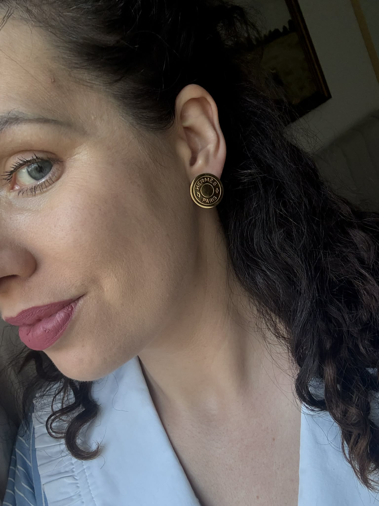 Hermès duże klipsy złote z logo – biżuteria premium + oryginalne pudełko