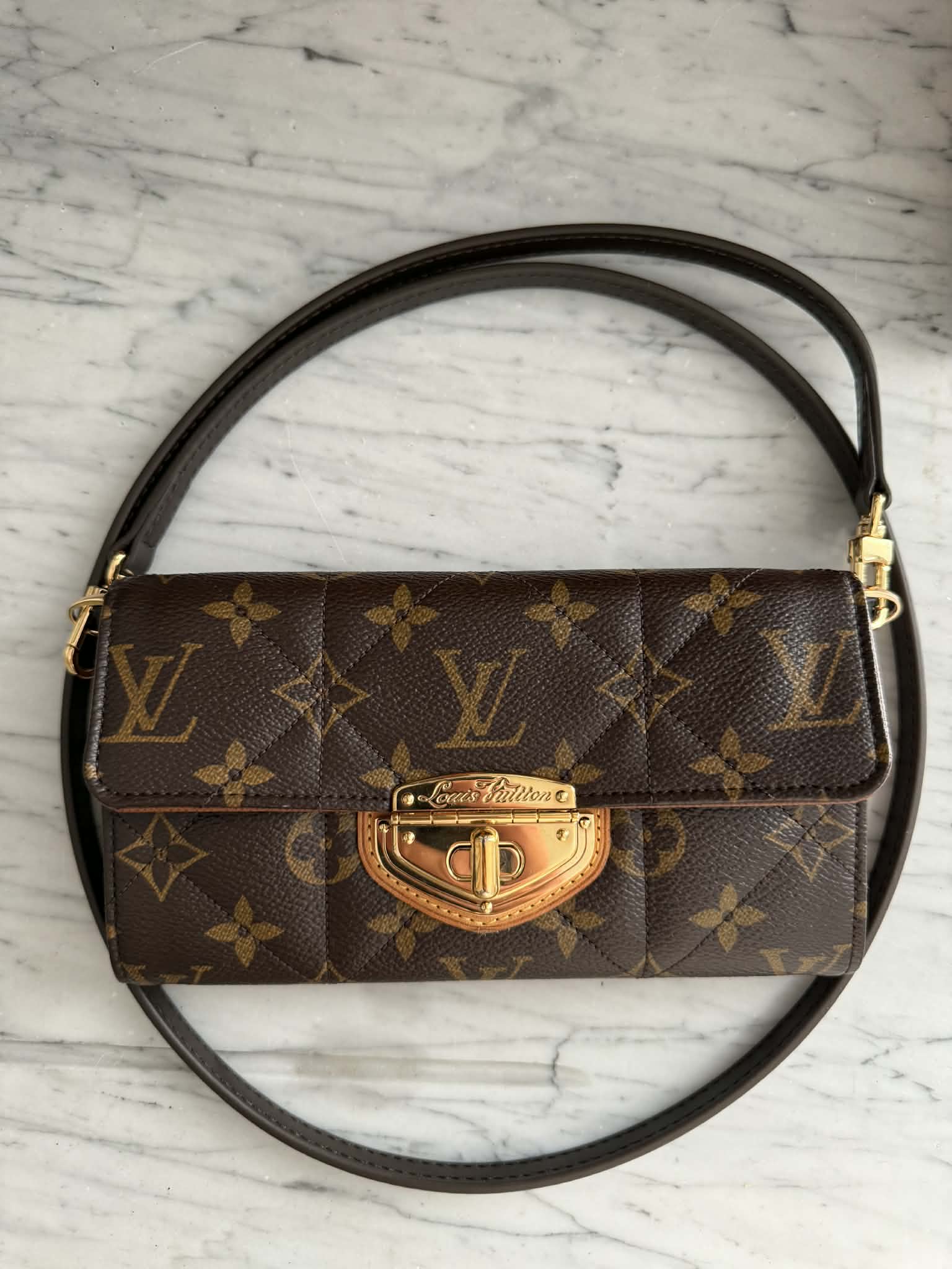 Stylowy i funkcjonalny portfel od Louis Vuitton, który dzięki dodatkowej wkładce i paskowi może pełnić również rolę eleganckiej torebki. Model z kultowej linii Monogram zachwyca charakterystycznym pikowaniem oraz ponadczasowym designem, idealnym na co dzień i na specjalne okazje.