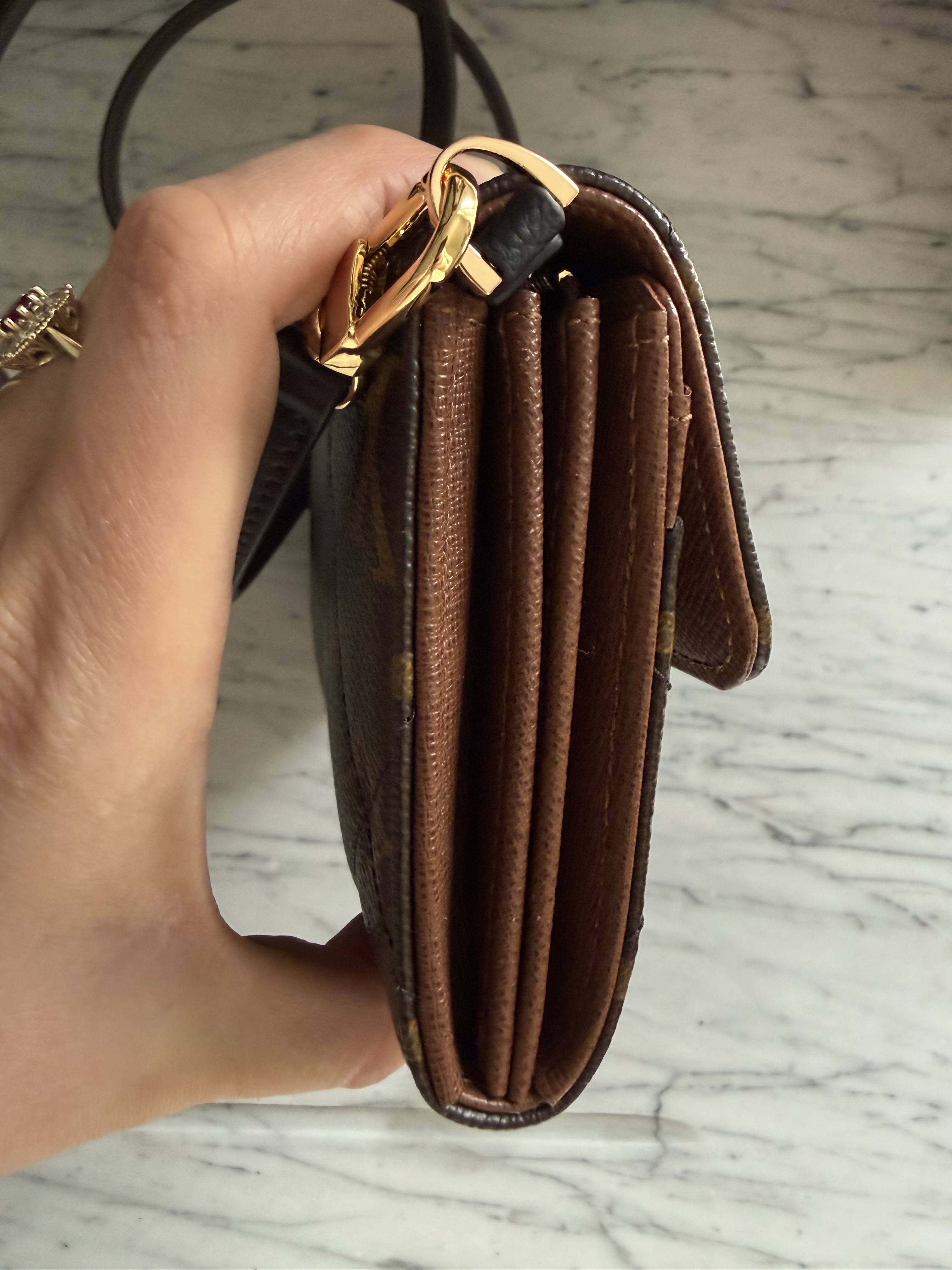 Dzięki dołączonej wkładce oraz paskowi (stylizowanemu na LV), możesz łatwo przekształcić portfel w praktyczną torebkę typu crossbody lub kopertówkę. (Wkładka i pasek nie są oryginalnymi produktami marki Louis Vuitton).