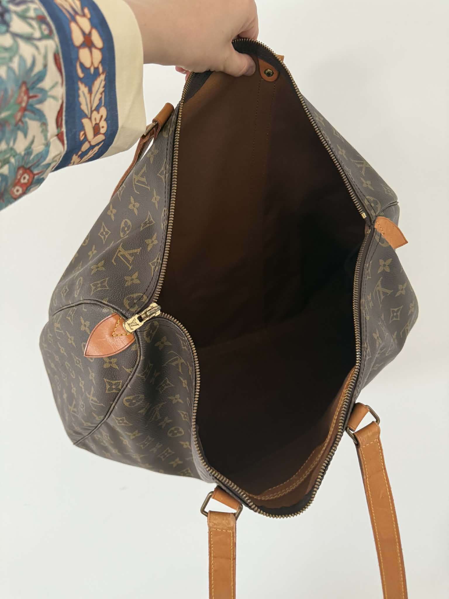 Elegancka i ponadczasowa torba podróżna wykonana z kultowego płótna Monogram Canvas. Model typu Boston Bag to idealny wybór zarówno na krótkie wyjazdy, jak i jako stylowy bagaż podręczny – bez problemu pomieści wszystkie niezbędne rzeczy.