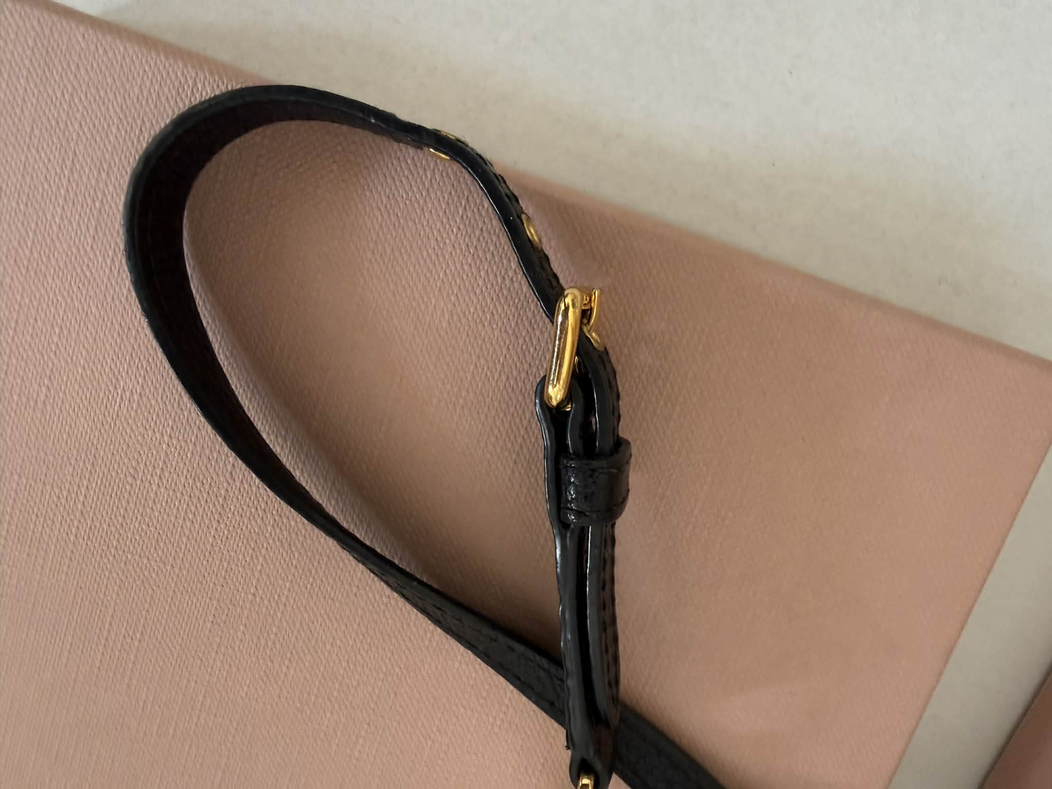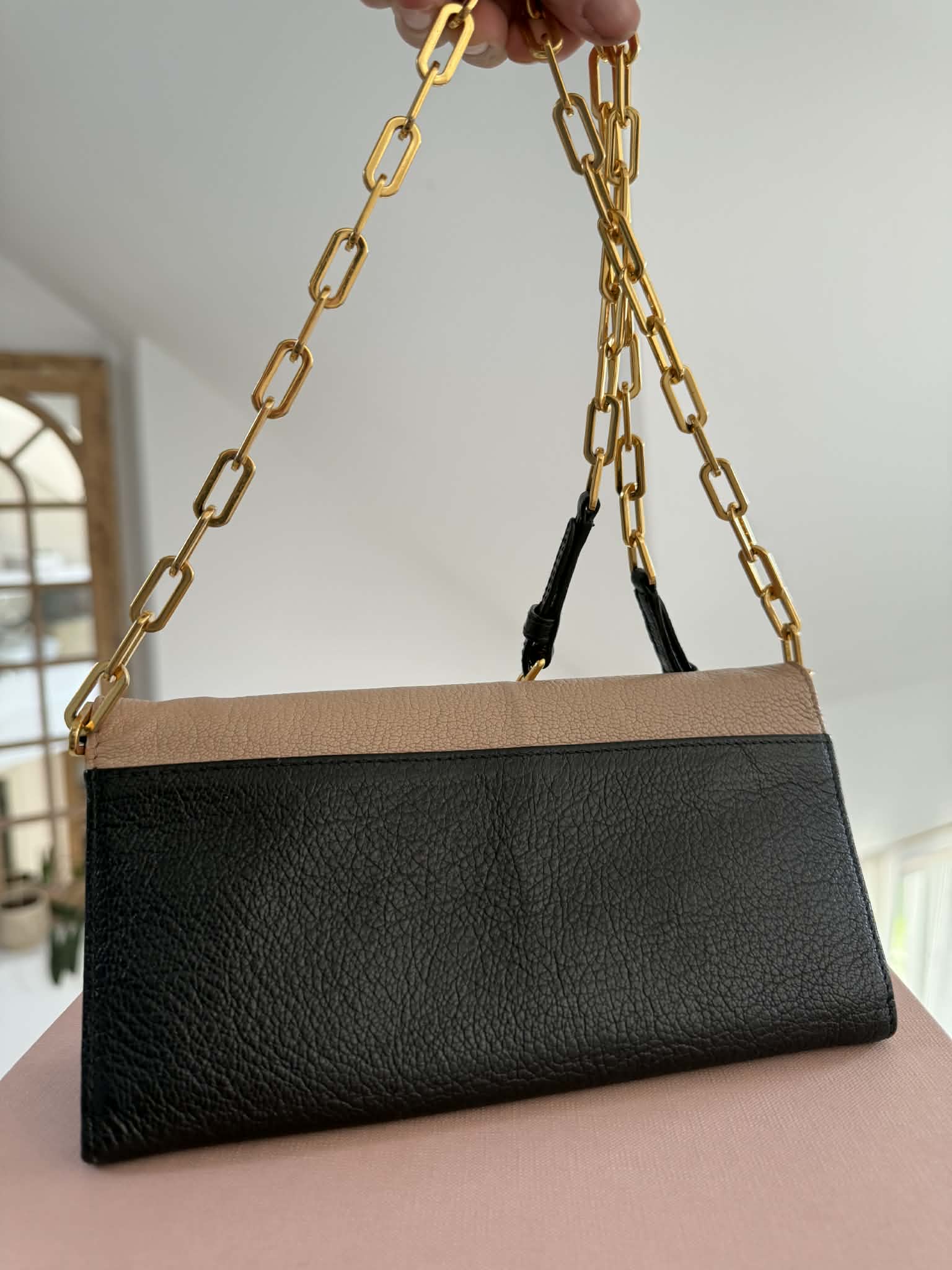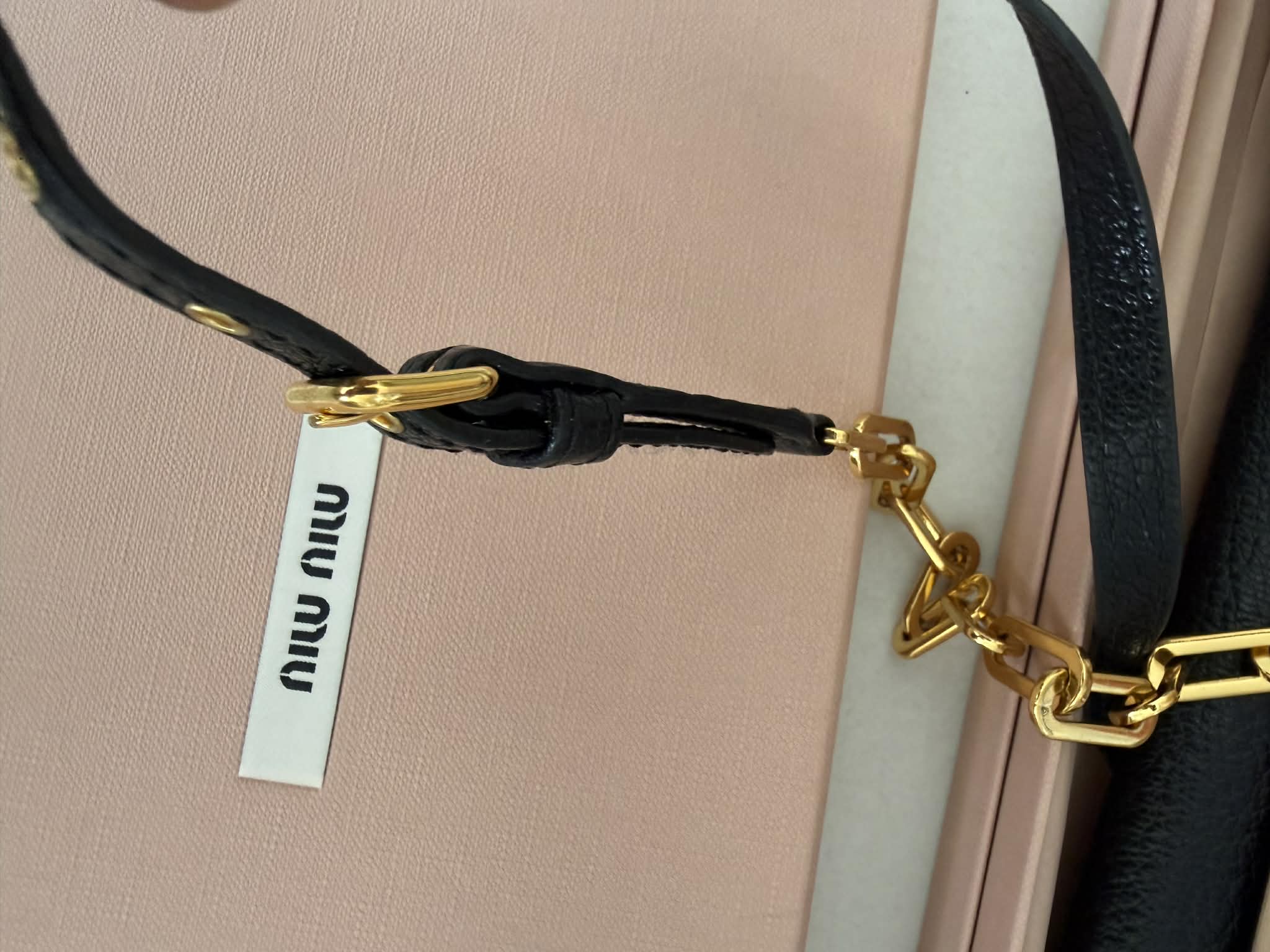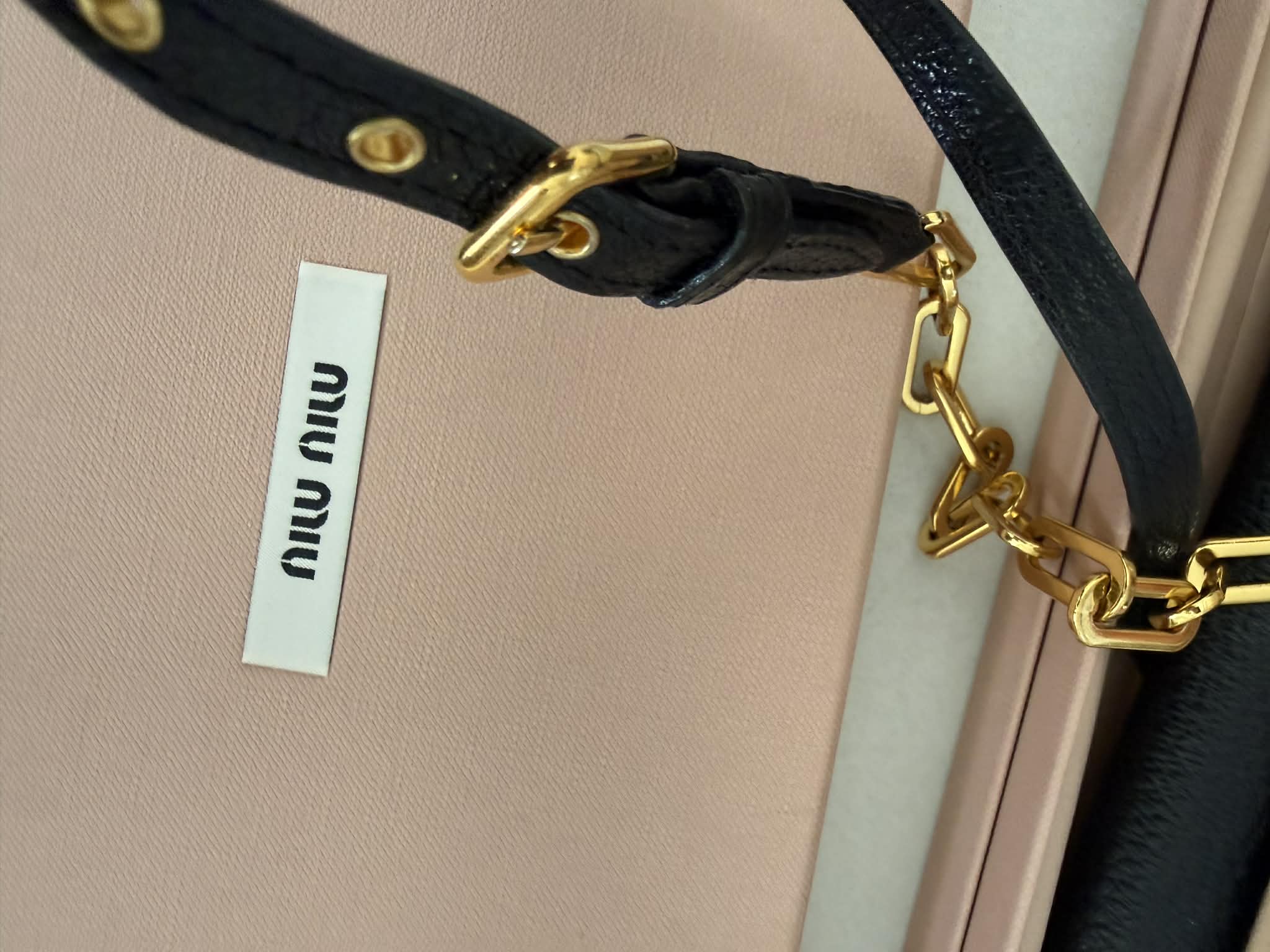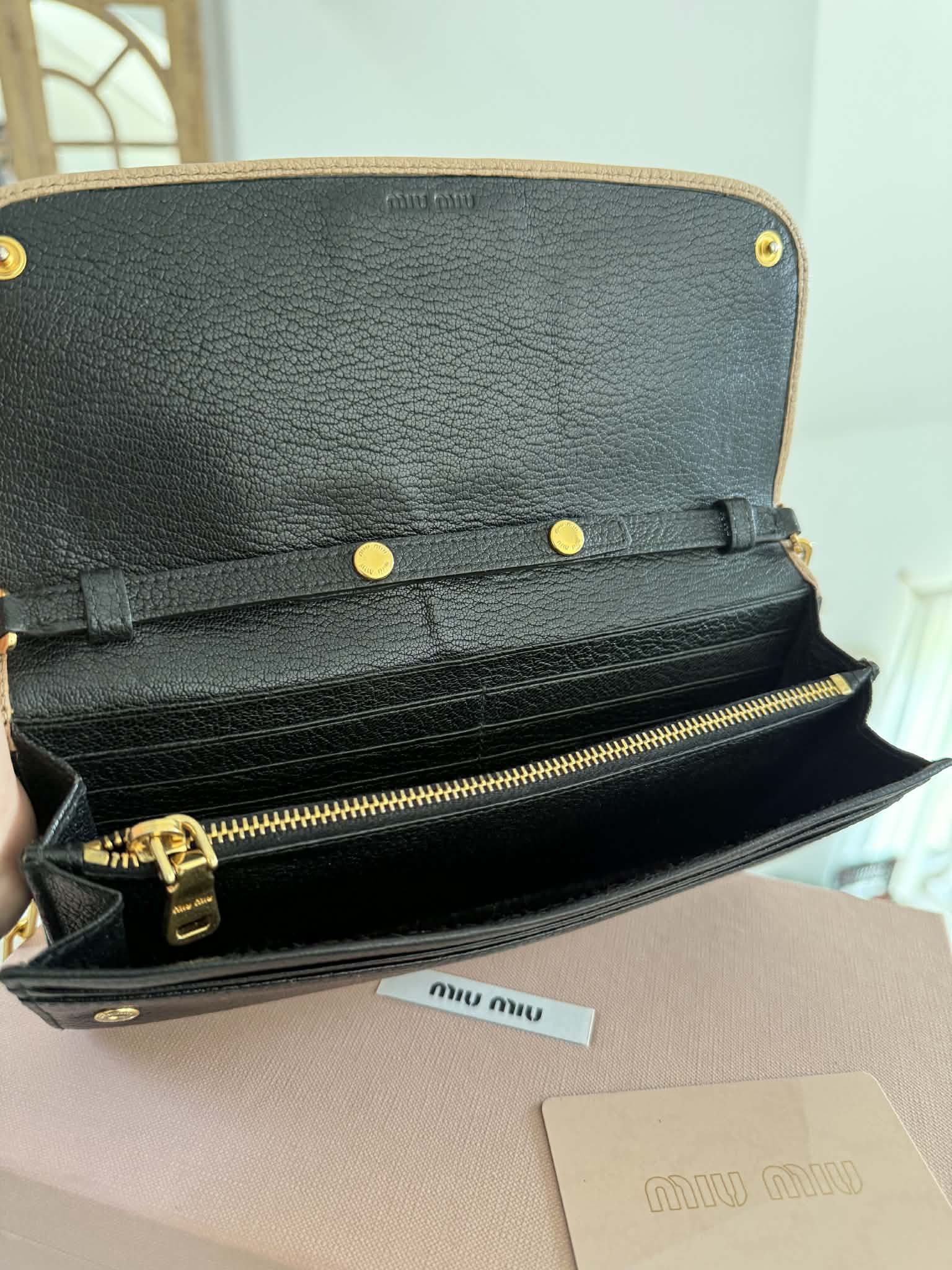 Stylowa i kompaktowa torebka na ramię marki Miu Miu, która łączy funkcjonalność portfela z elegancją małej torebki. Idealna na co dzień oraz na wyjścia – bez problemu pomieści telefon, karty.