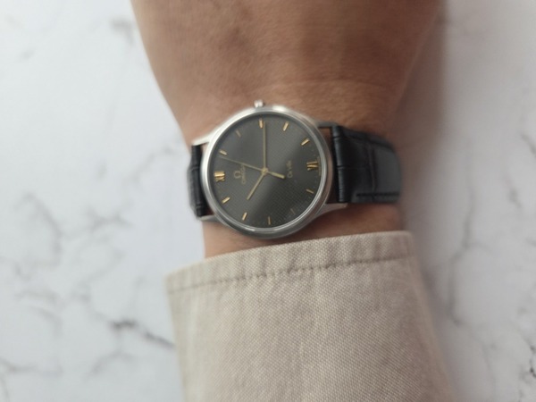 Zegarek kwarcowy - na baterię. Tarcza mierzy 32 mm, z koronką 34mm, koronka oryginalna Omega.