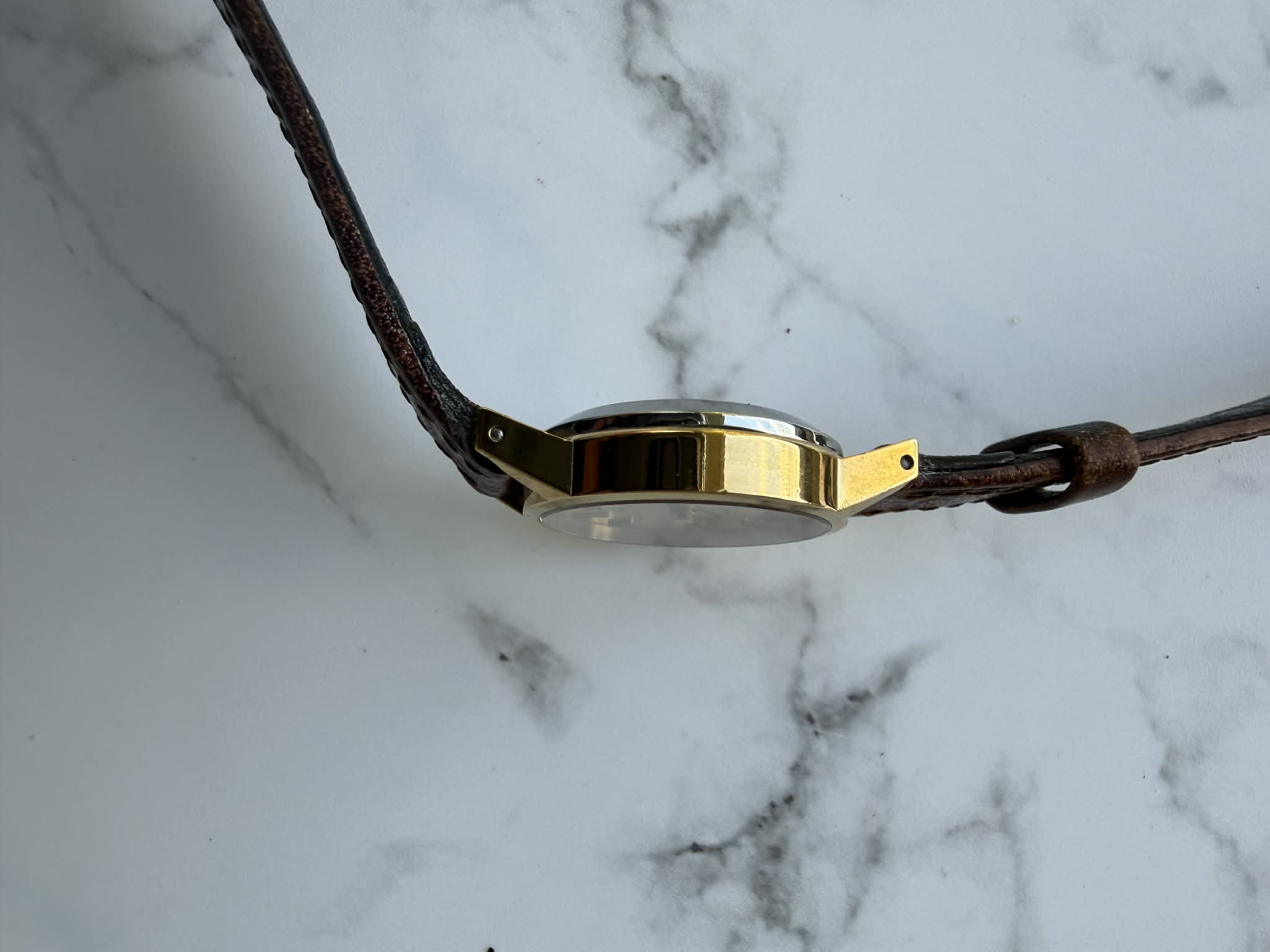 Brązowy pasek skórzany został wymieniony - zamiennik renomowanej firmy Hirsch, skóra z wielbłąda.
