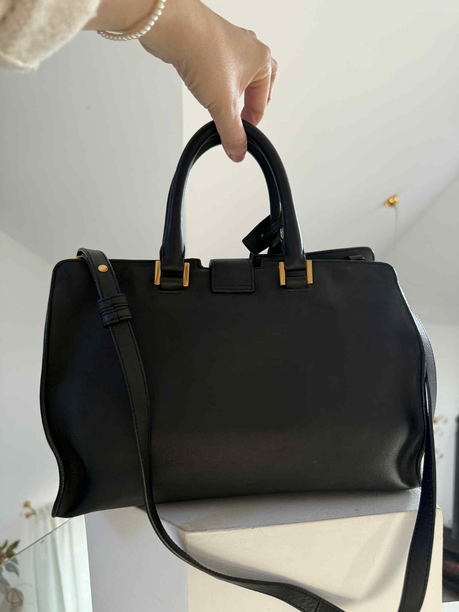 Torba wyposażona jest w dodatkowy pasek na ramię, dzięki czemu można nosić ją na dwa sposoby: – w dłoni, – na ramieniu / crossbody. W zestawie znajduje się również clochette (skórzany brelok) i worek przeciwkurzowy