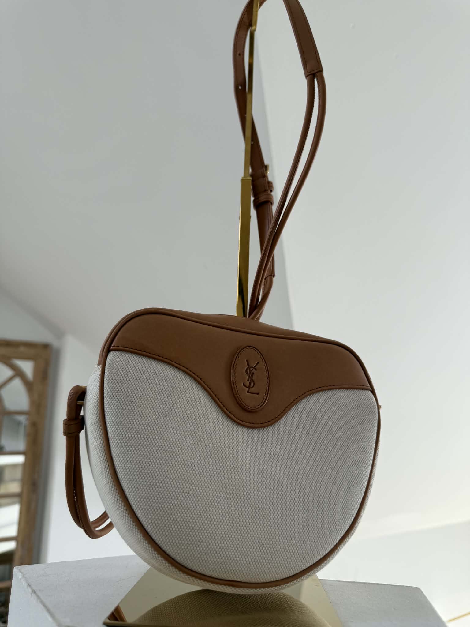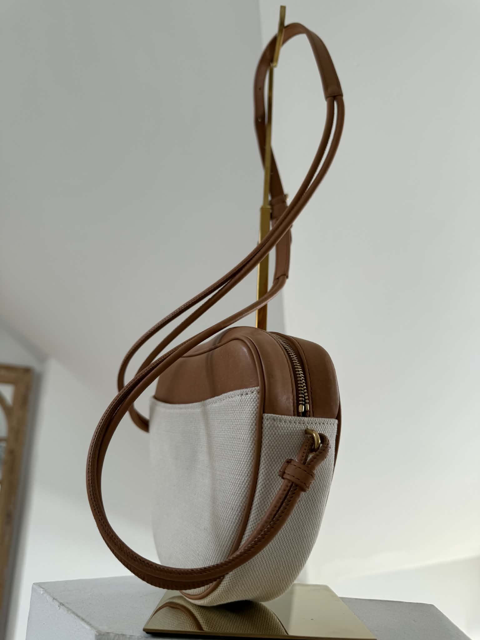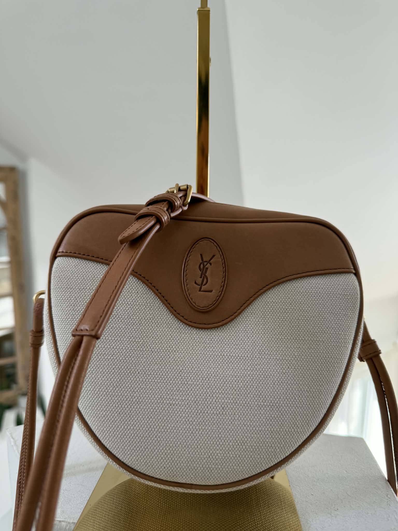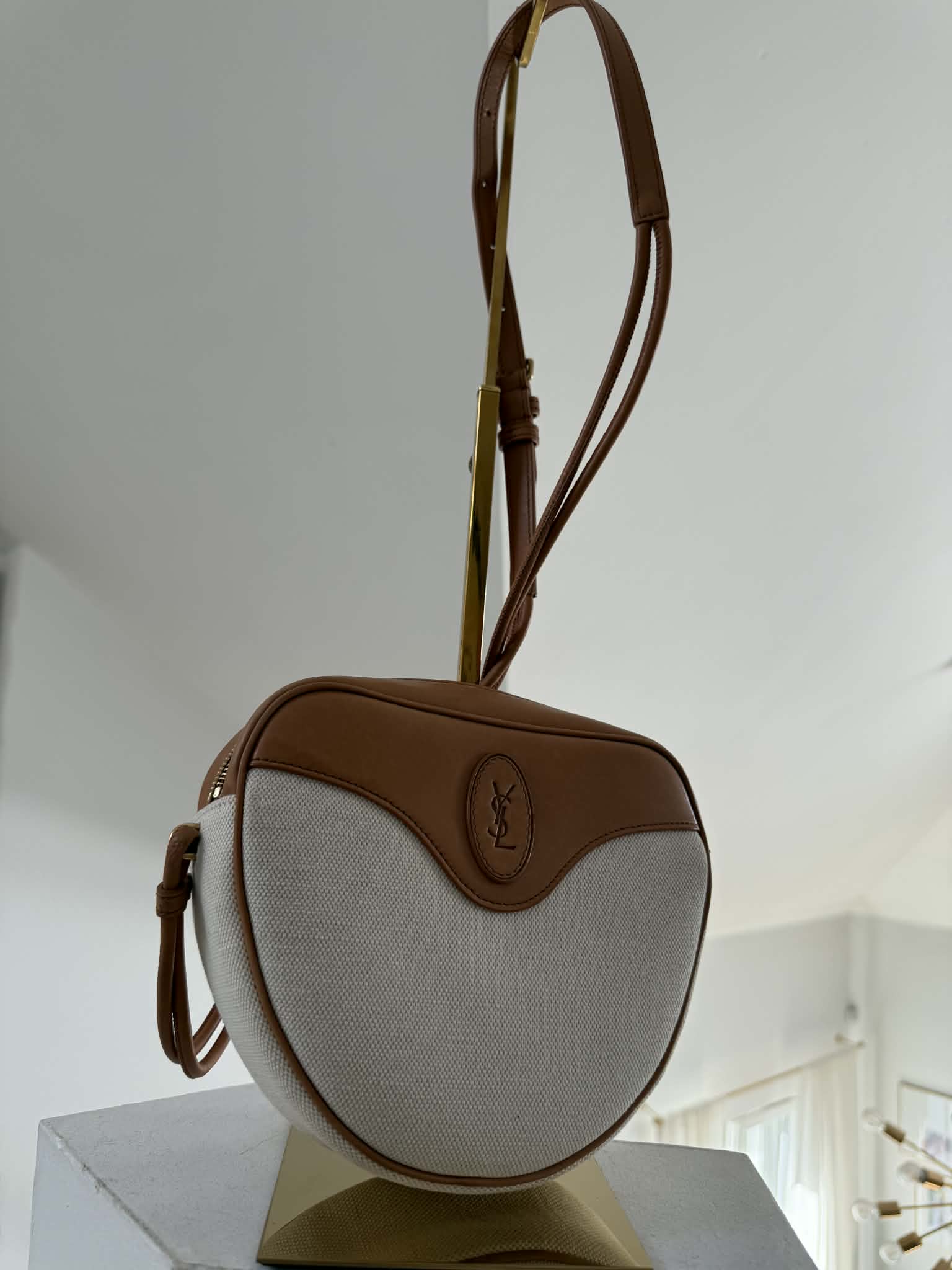 Torebka została wykonana z wysokiej jakości canvasu oraz skóry naturalnej, co zapewnia trwałość i elegancki wygląd. Klasyczne połączenie kolorów białego i brązowego oraz charakterystyczny monogram marki podkreślają jej luksusowy charakter.