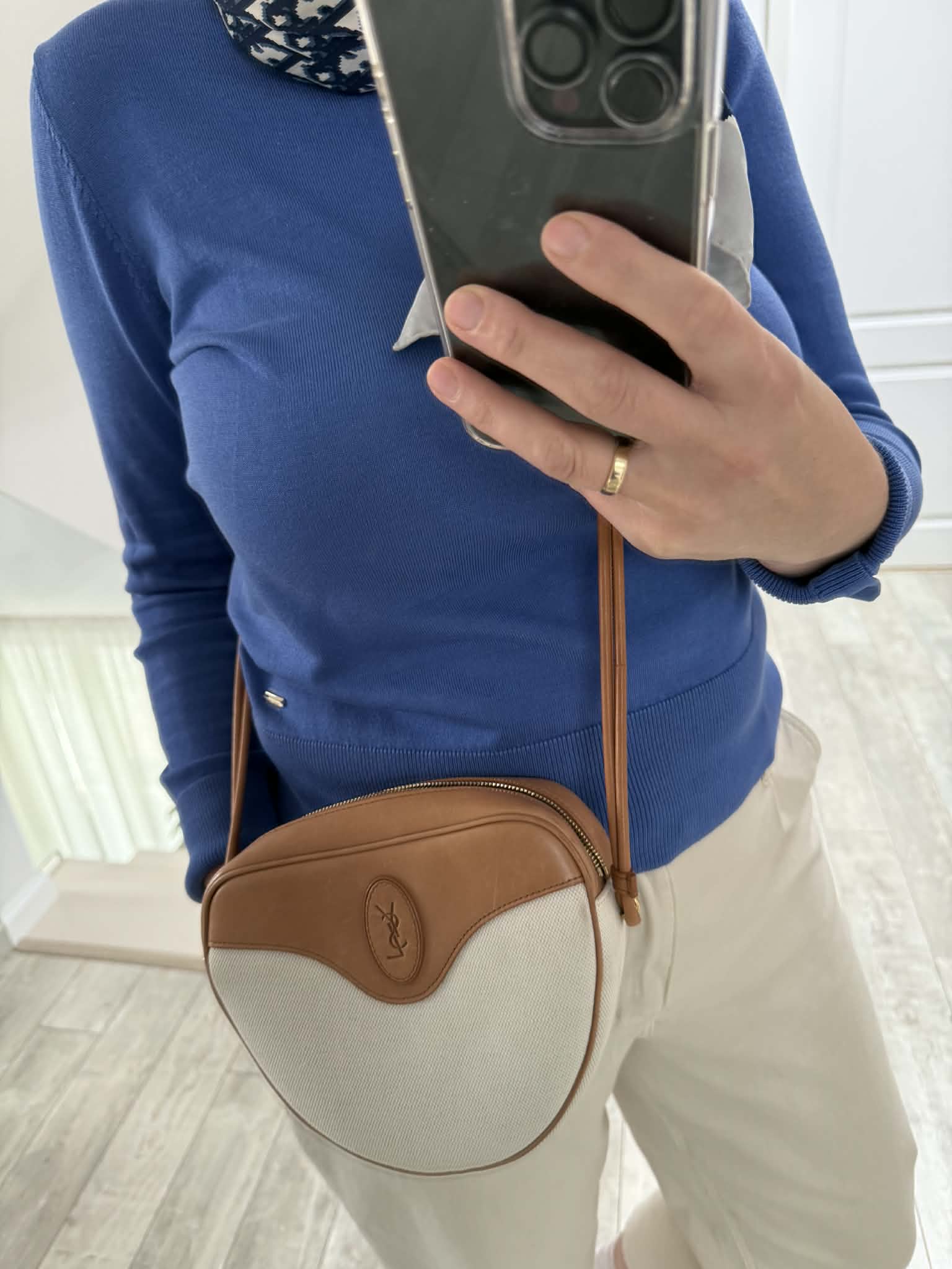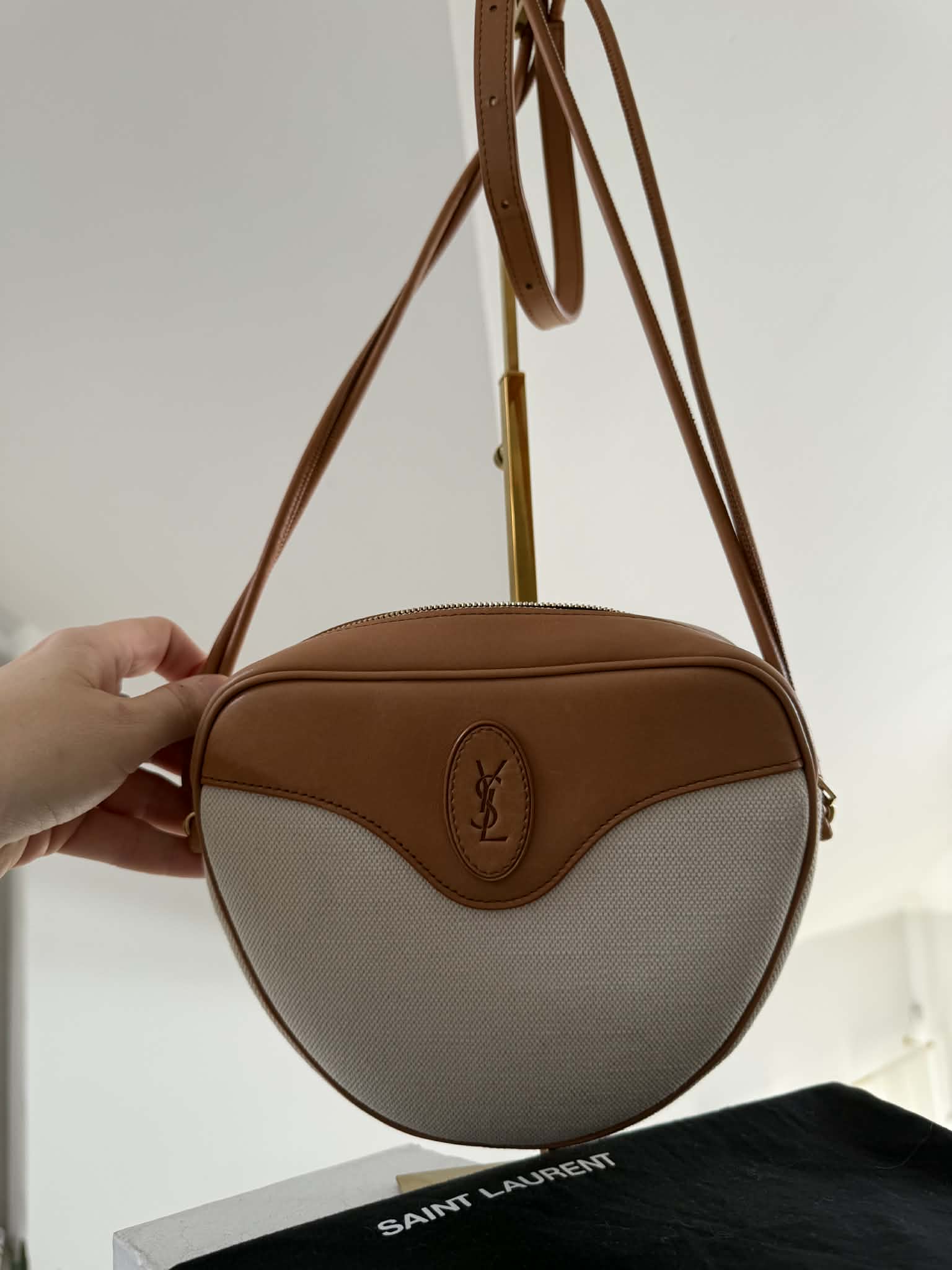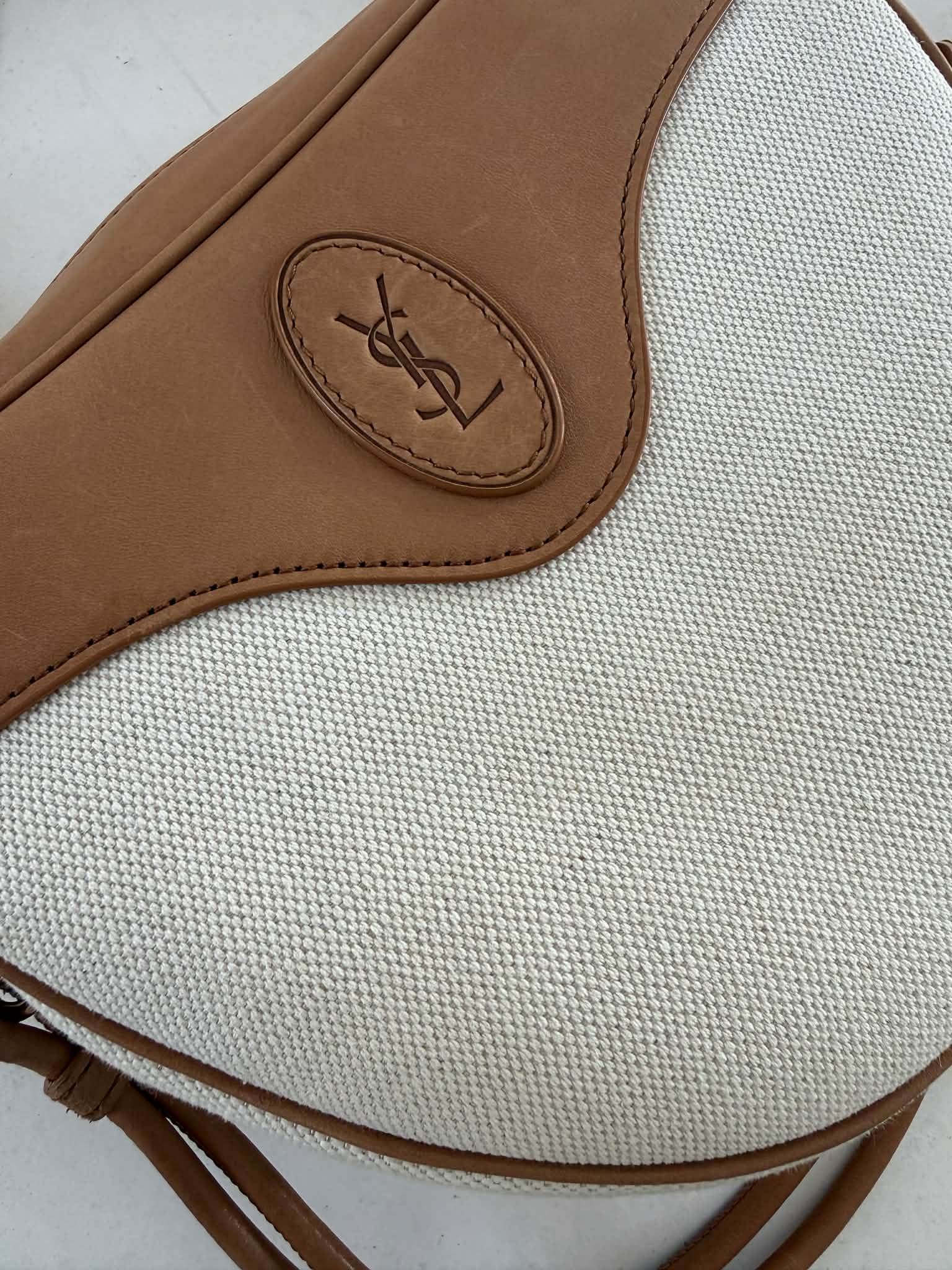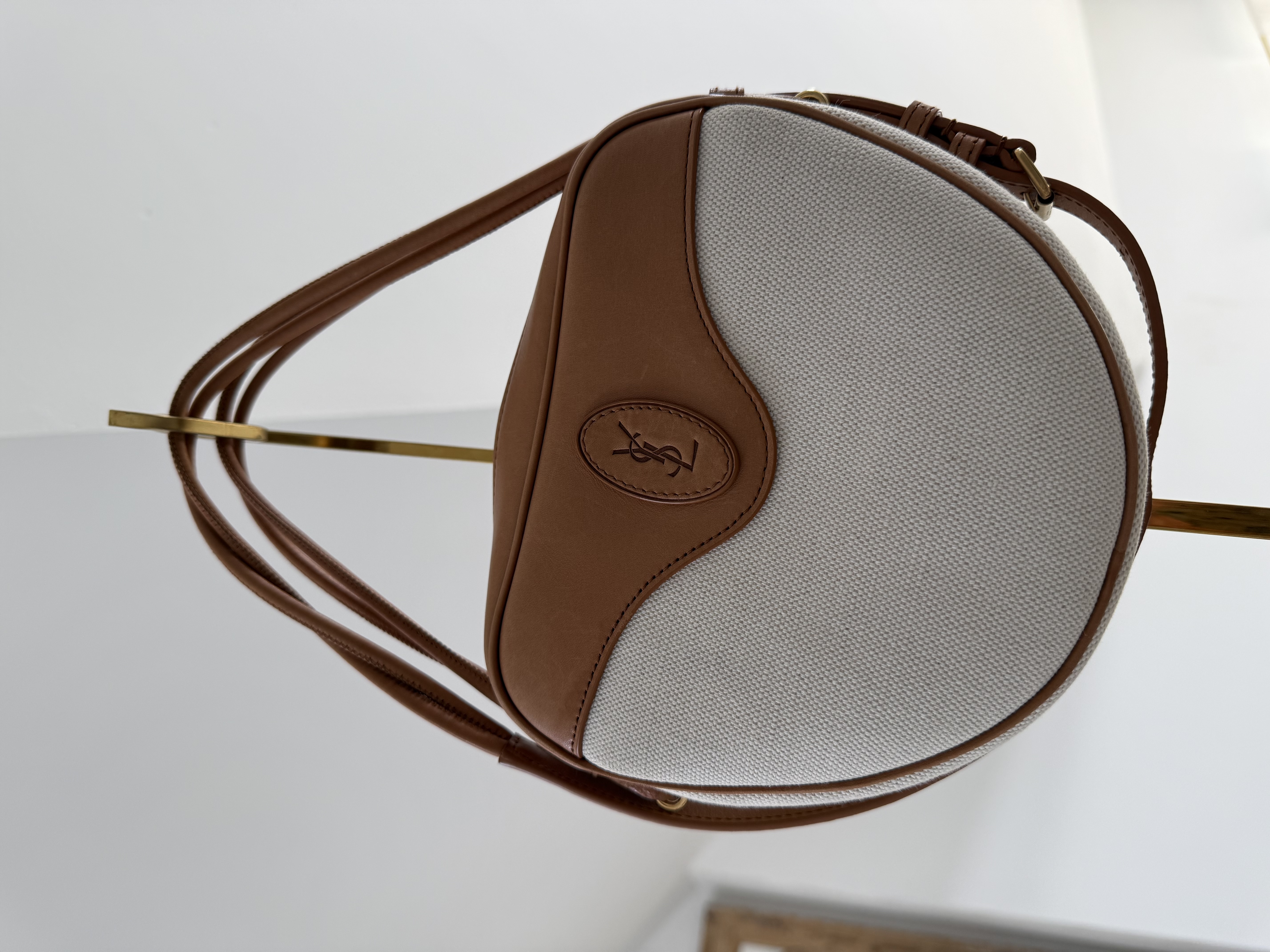 Torebka została wykonana z wysokiej jakości canvasu oraz skóry naturalnej, co zapewnia trwałość i elegancki wygląd. Klasyczne połączenie kolorów białego i brązowego oraz charakterystyczny monogram marki podkreślają jej luksusowy charakter.