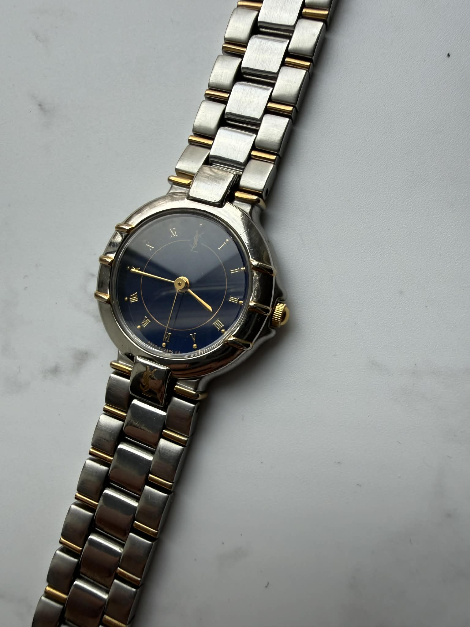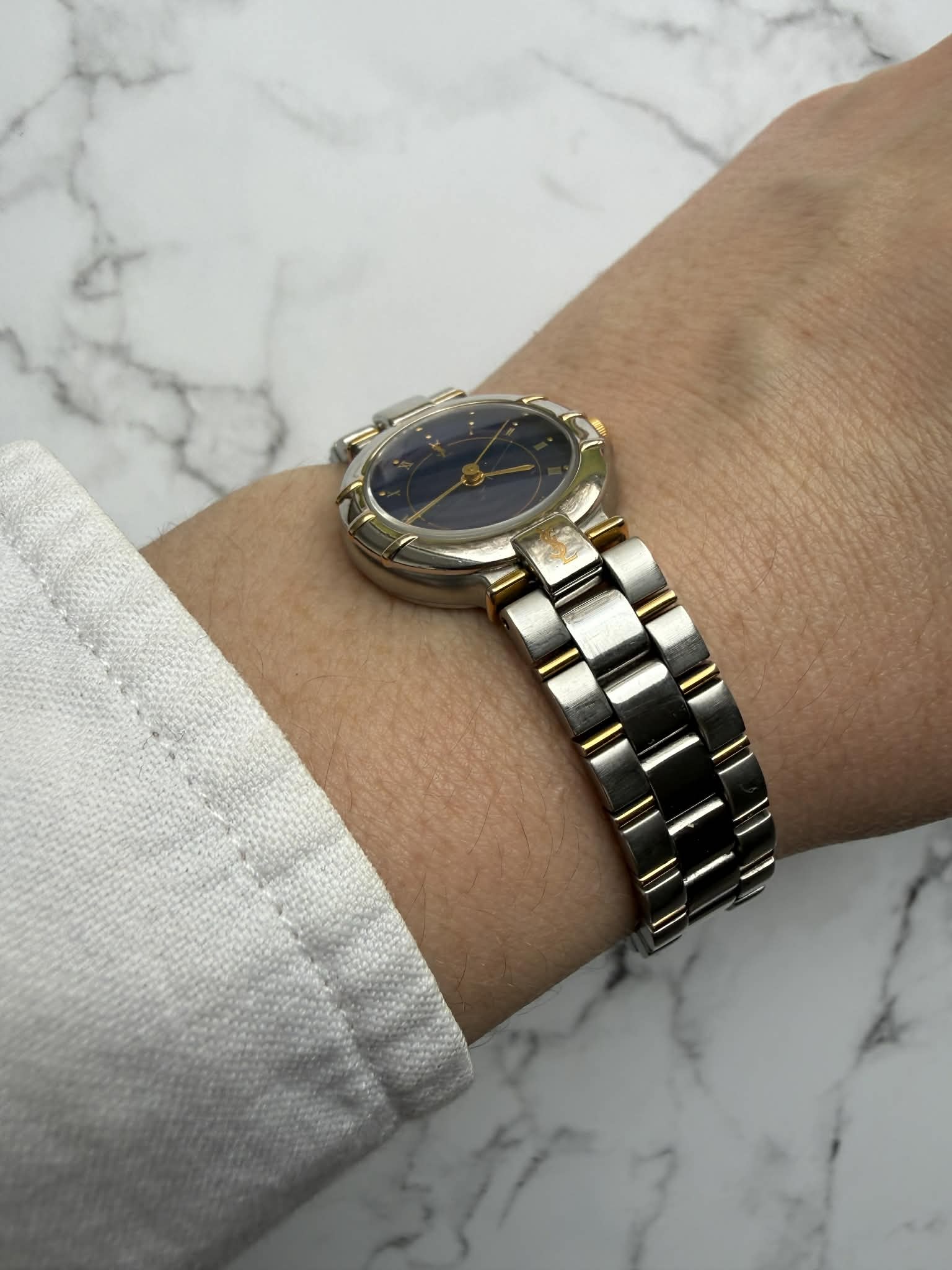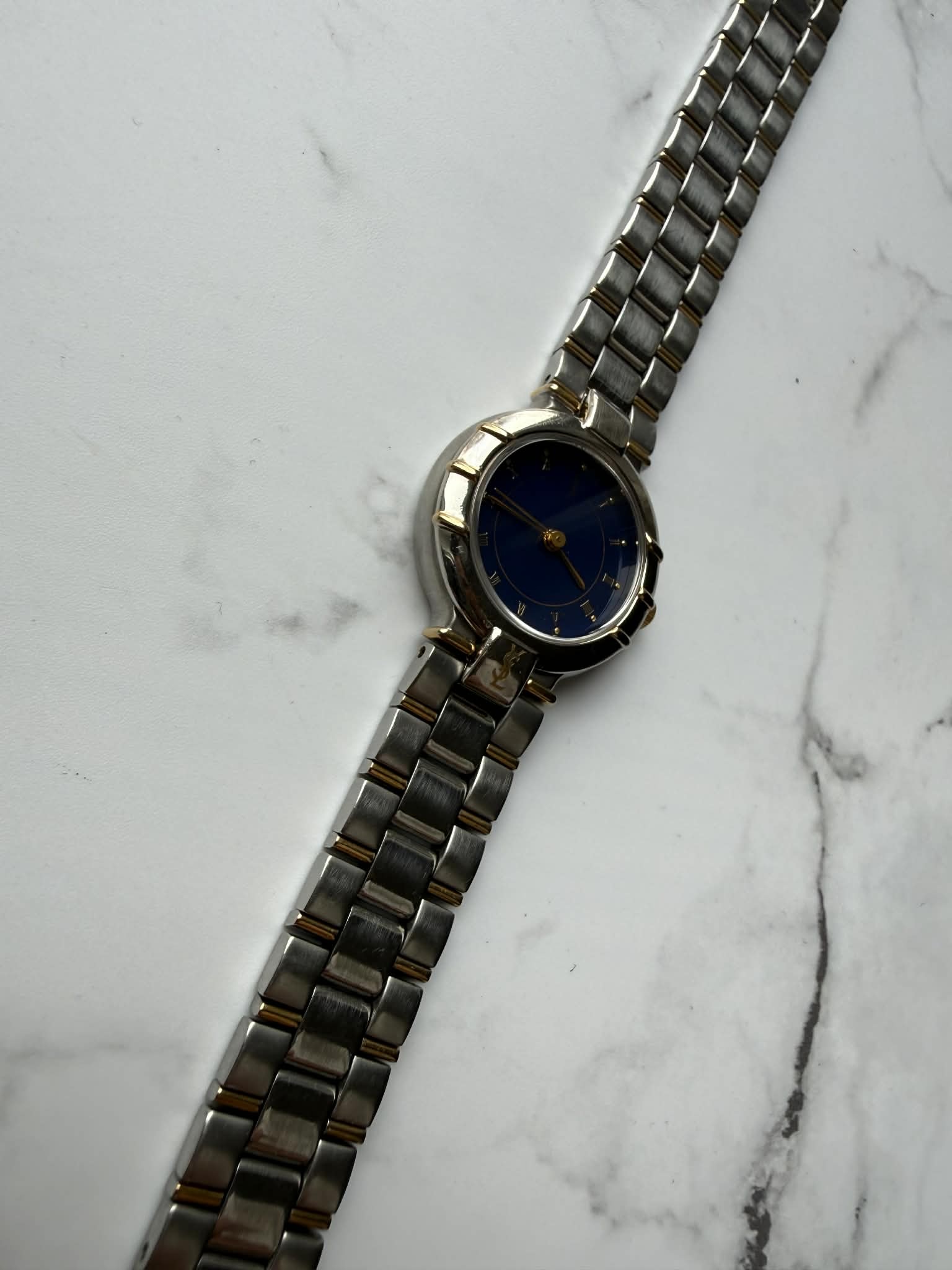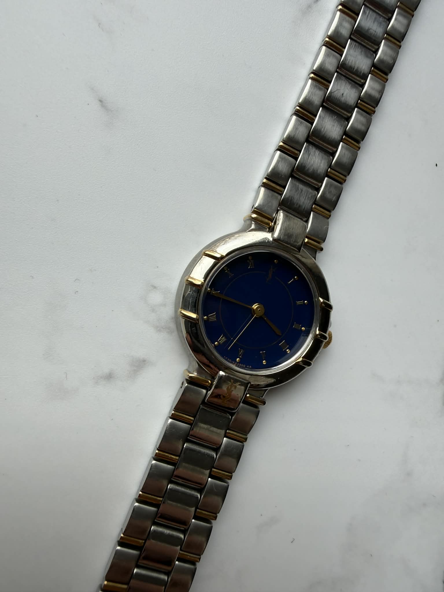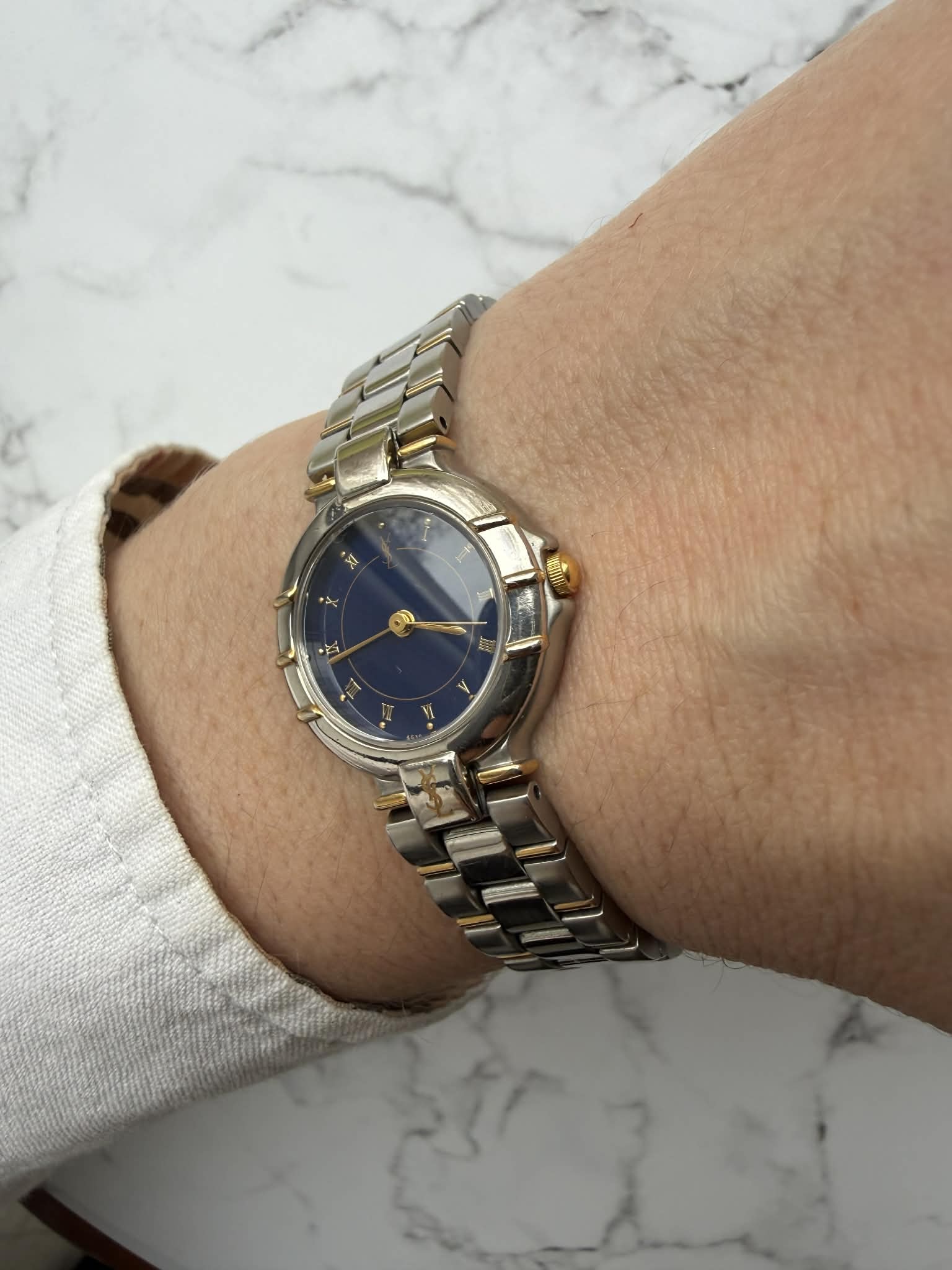 YSL oryginalny zegarek vintage, złoto-srebrny, koperta 25mm niebieska tarcza, oryginalny