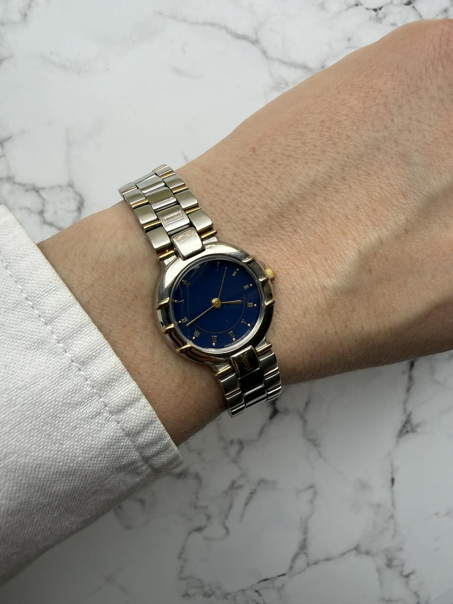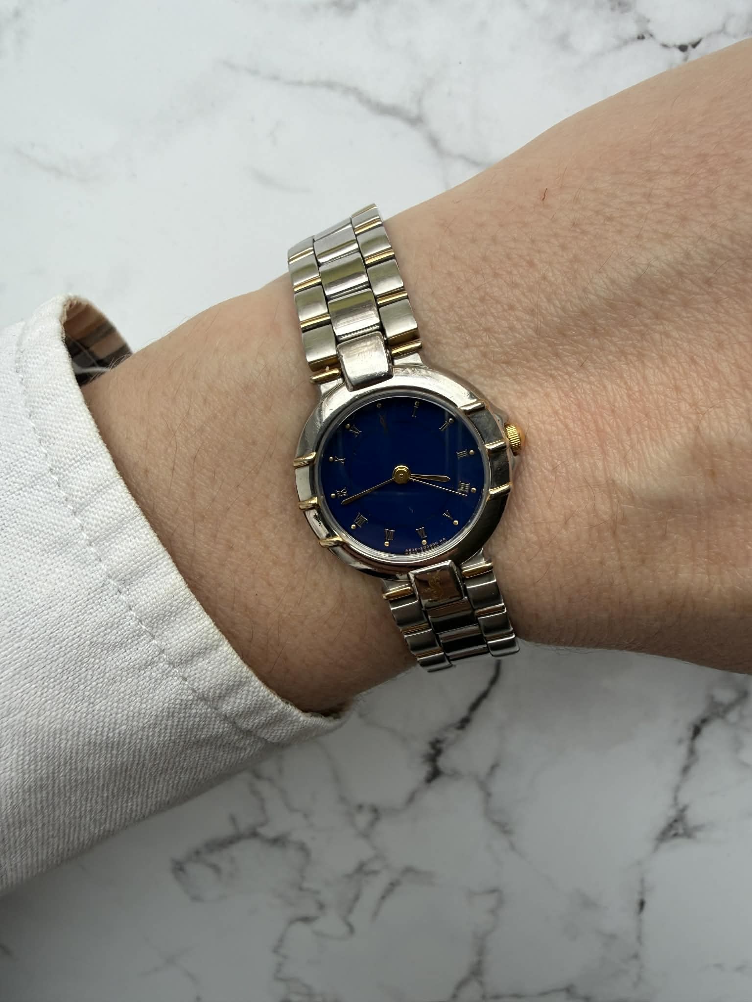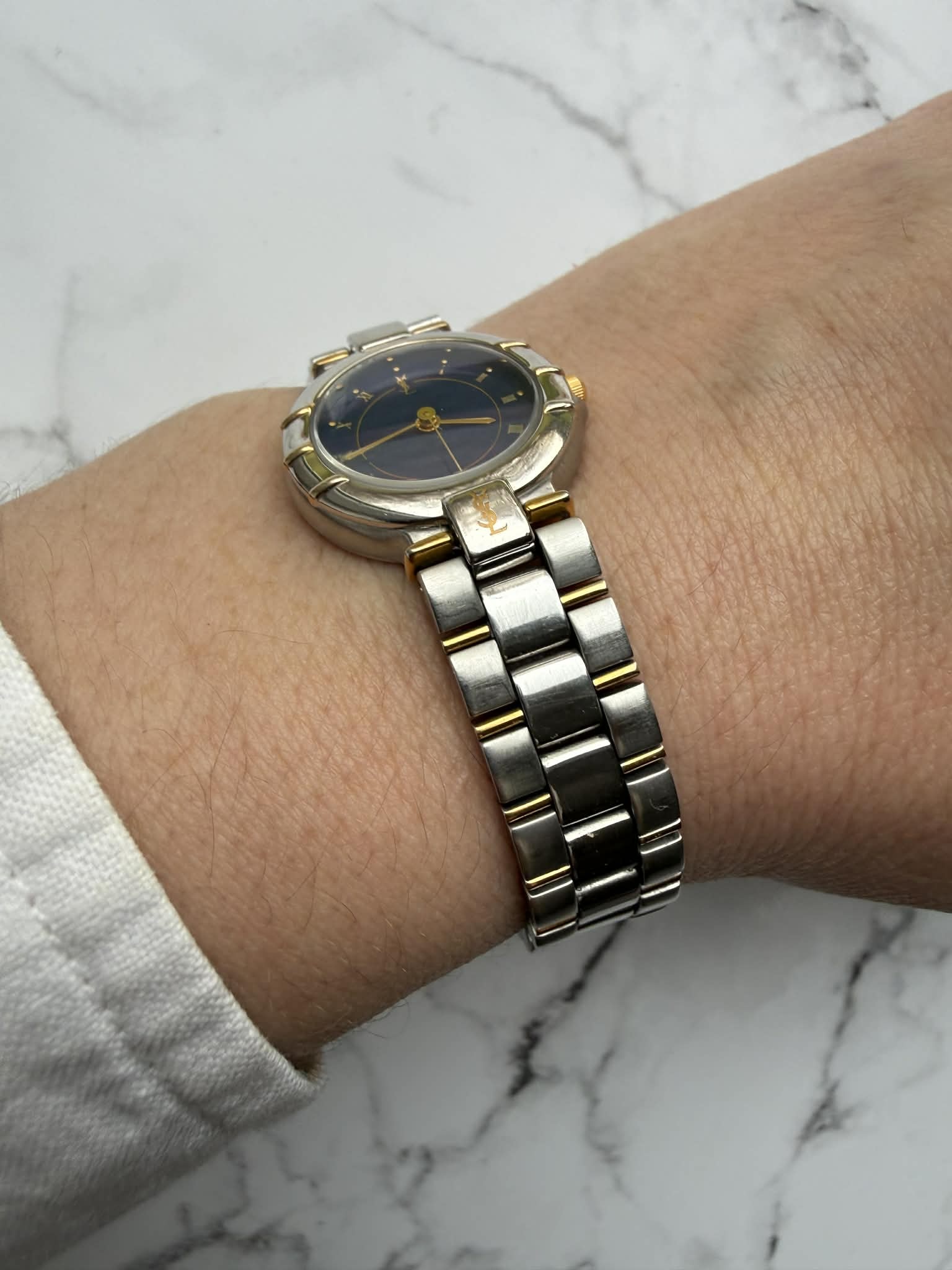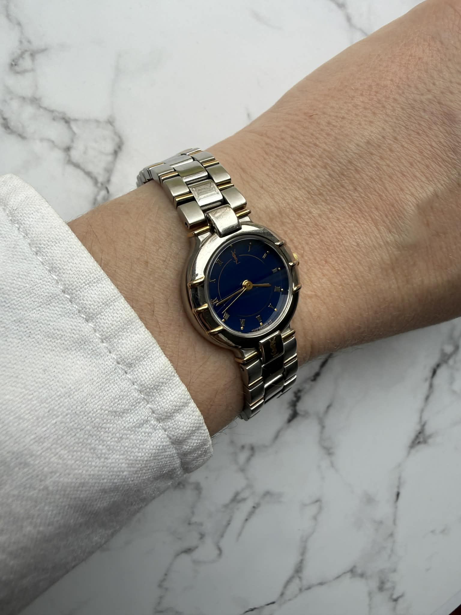 YSL oryginalny zegarek vintage, złoto-srebrny, koperta 25mm niebieska tarcza, oryginalny