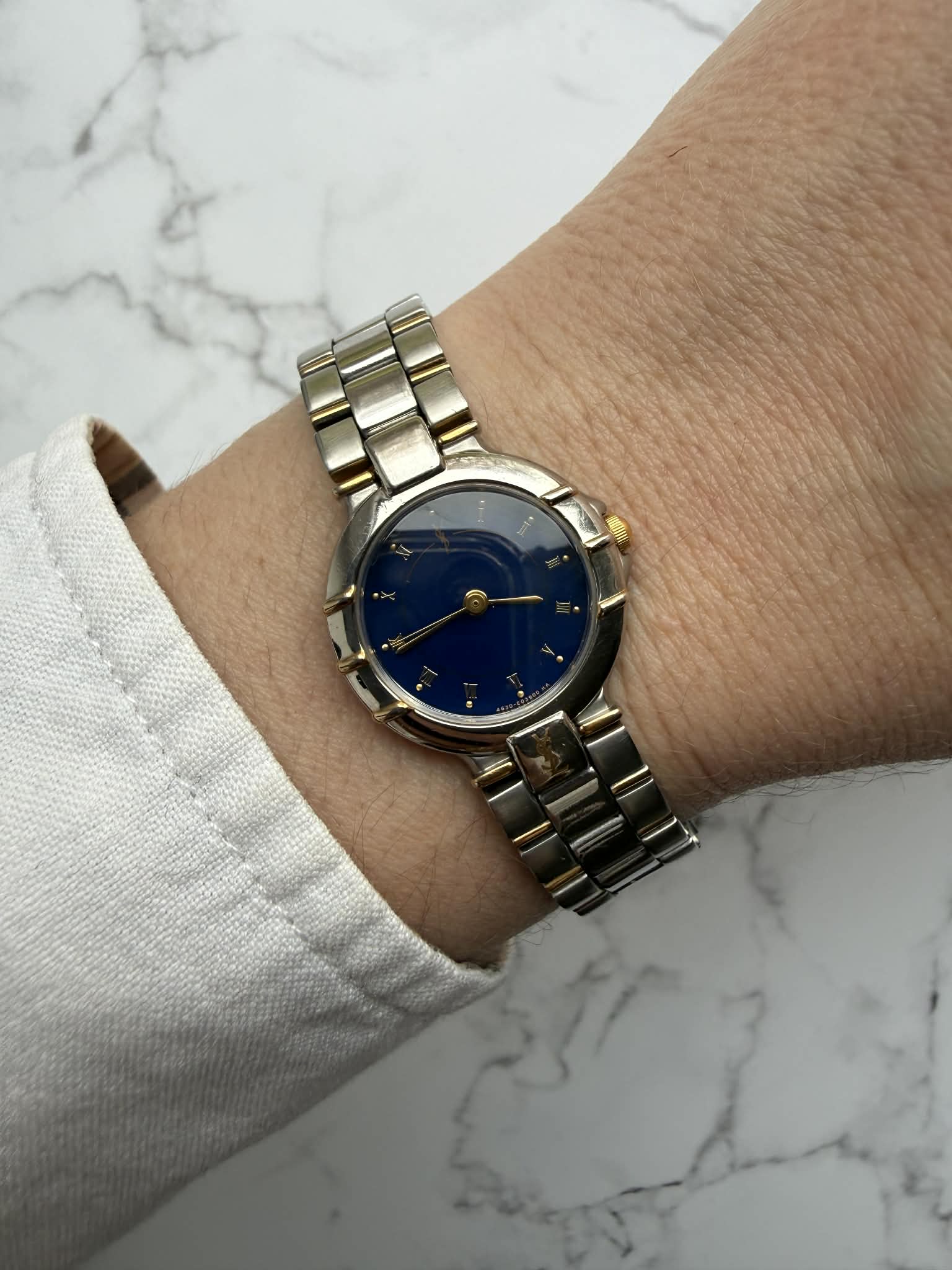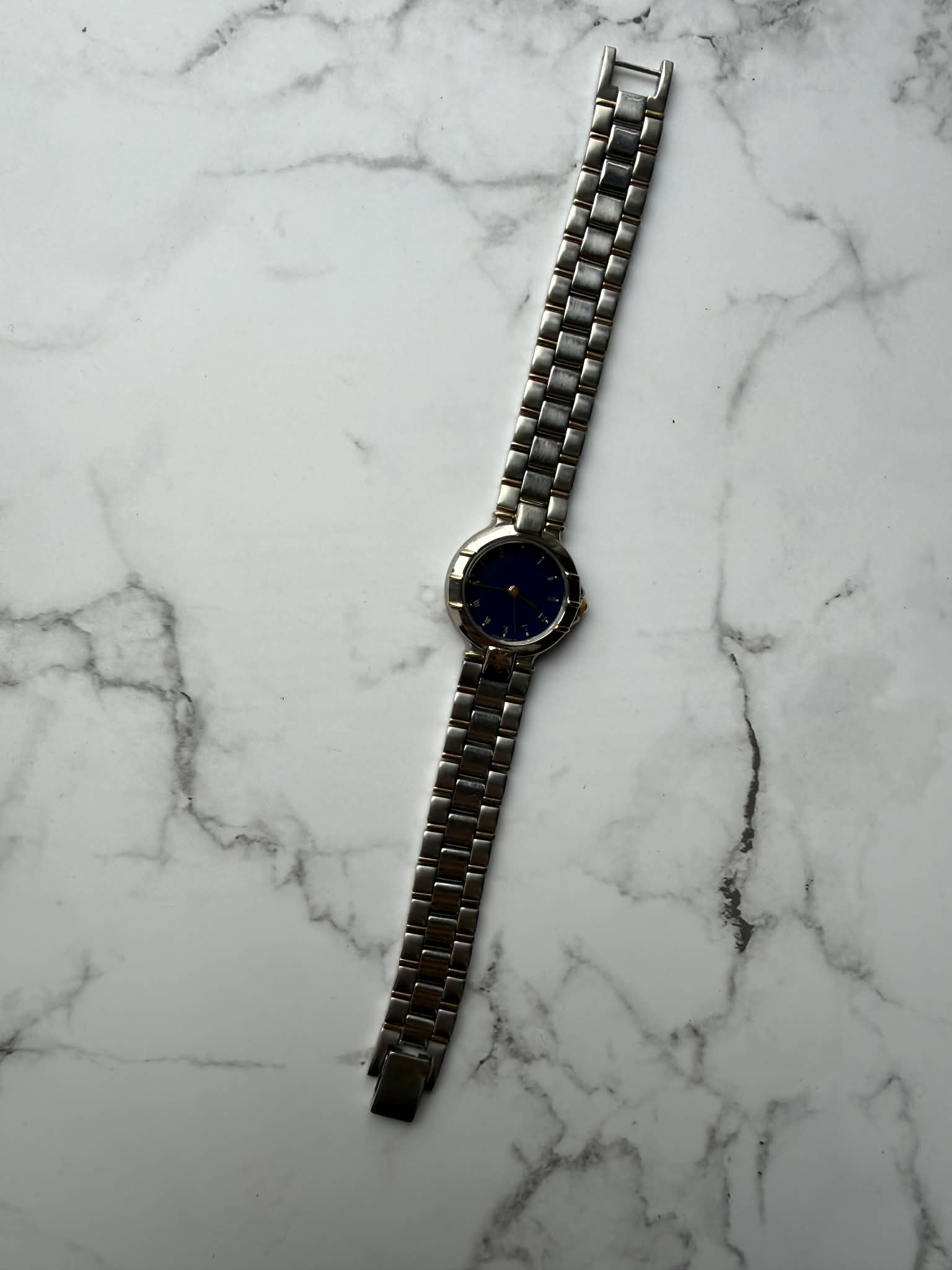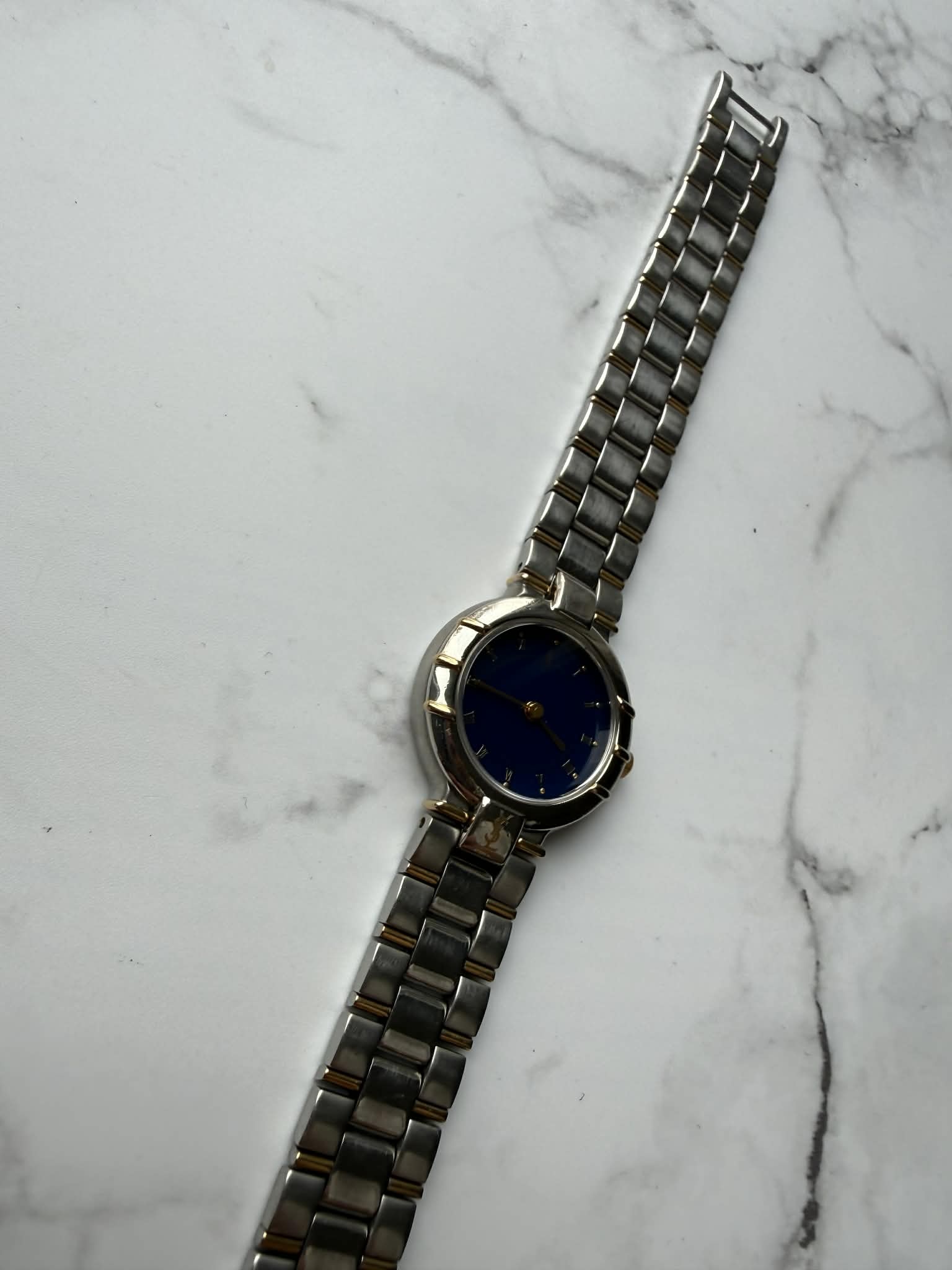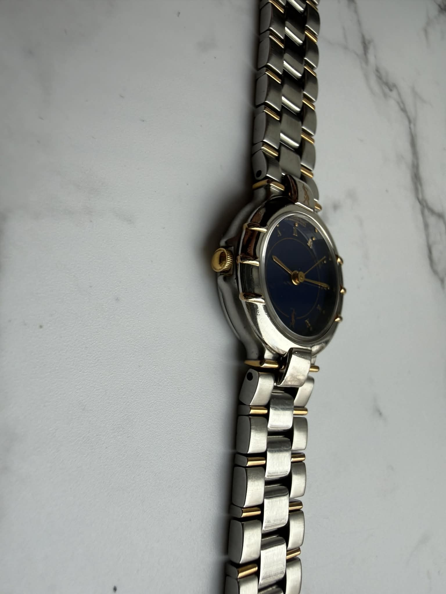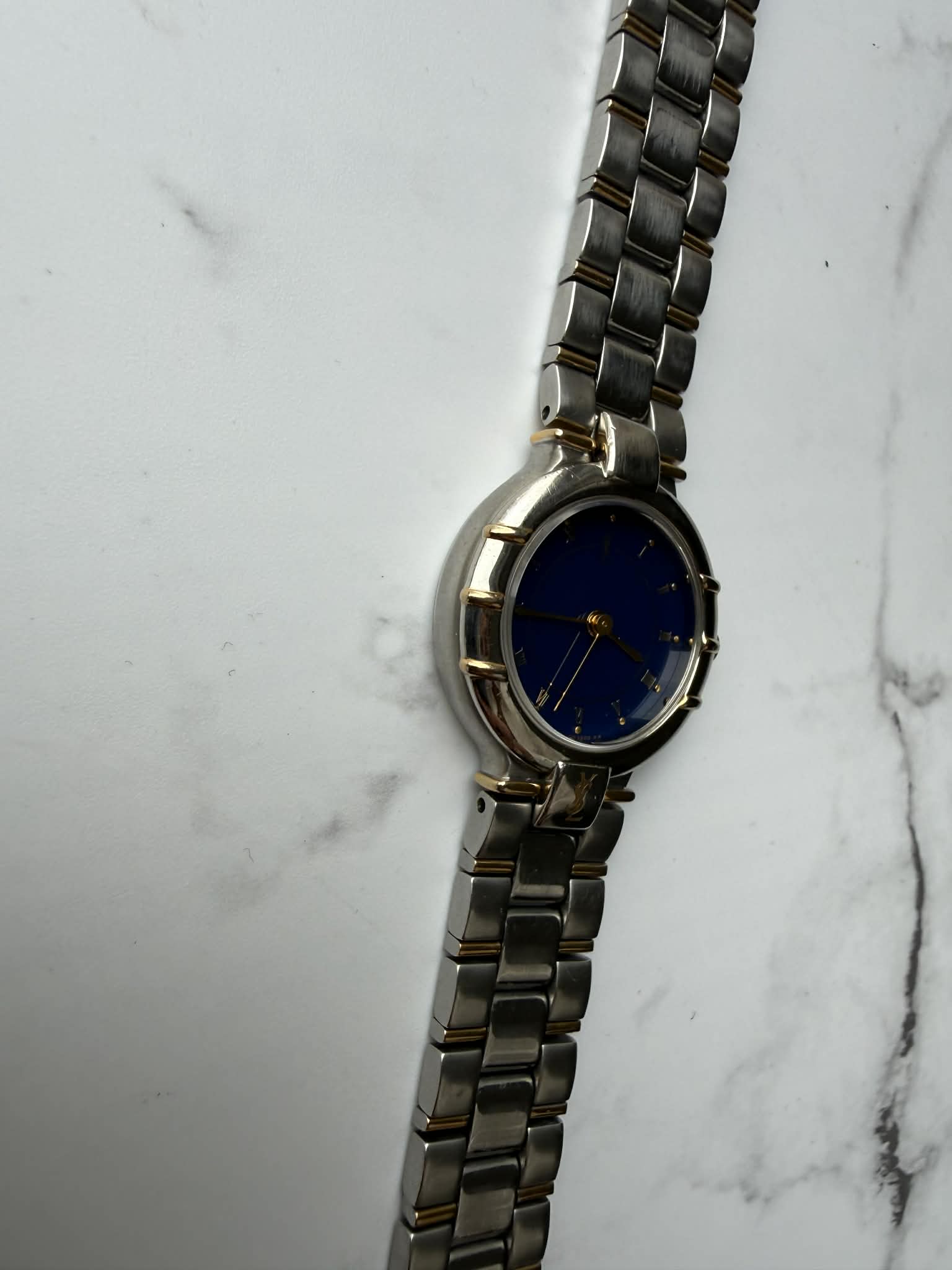 YSL oryginalny zegarek vintage, złoto-srebrny, koperta 25mm niebieska tarcza, oryginalny