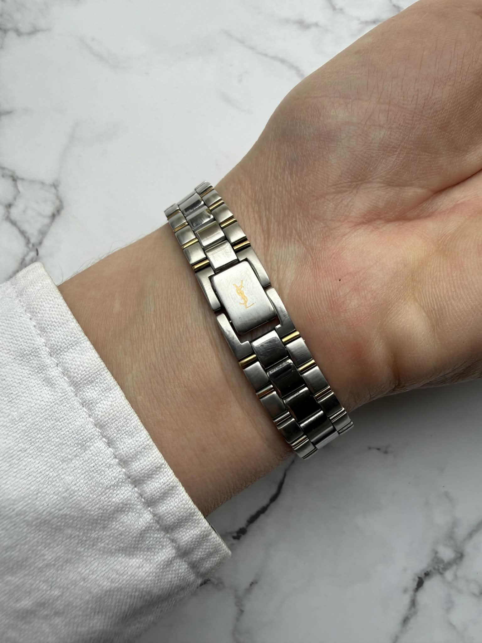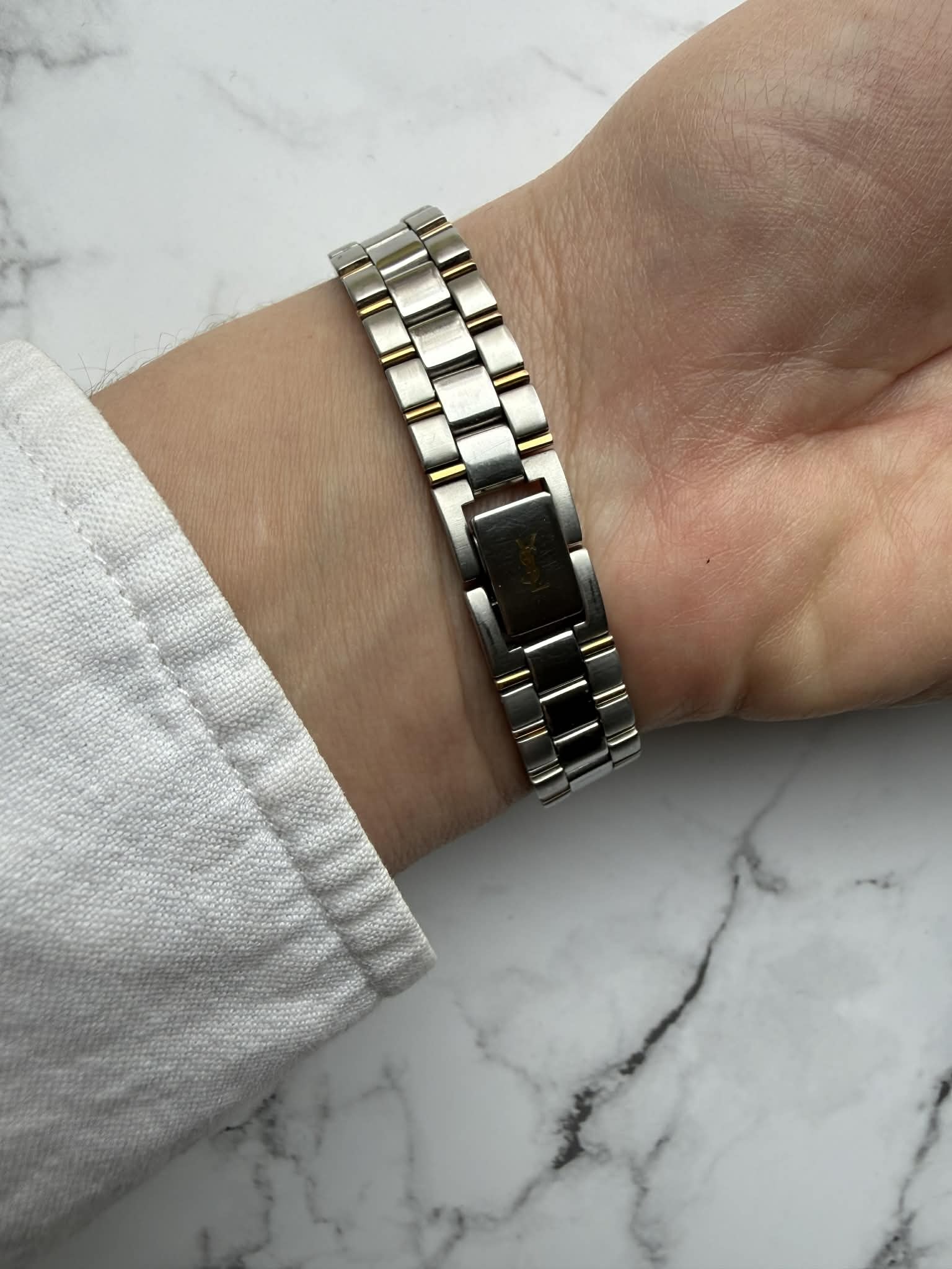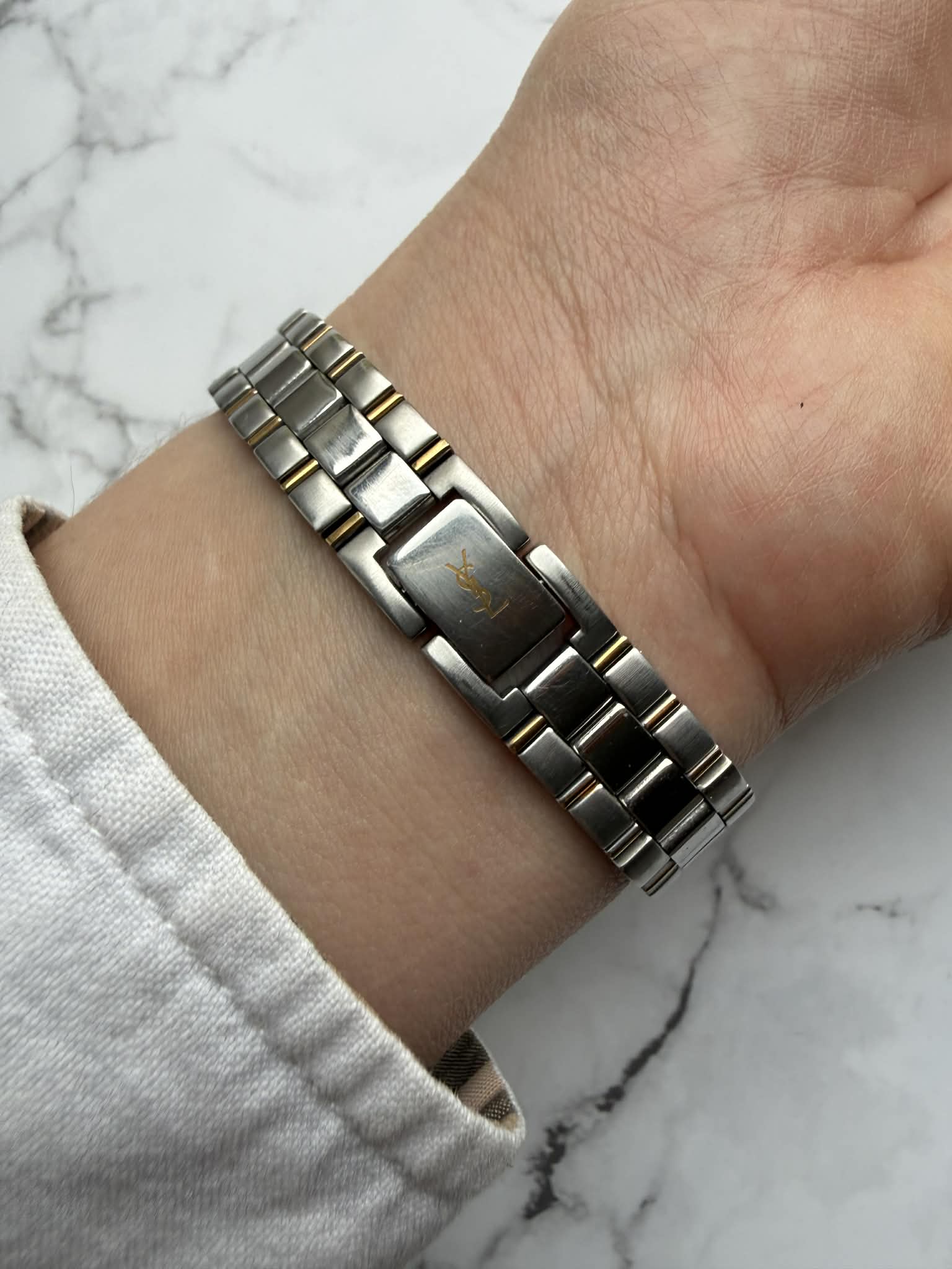 Zegarek z oryginalną, logowaną bransoletą i sprzączką YSL.