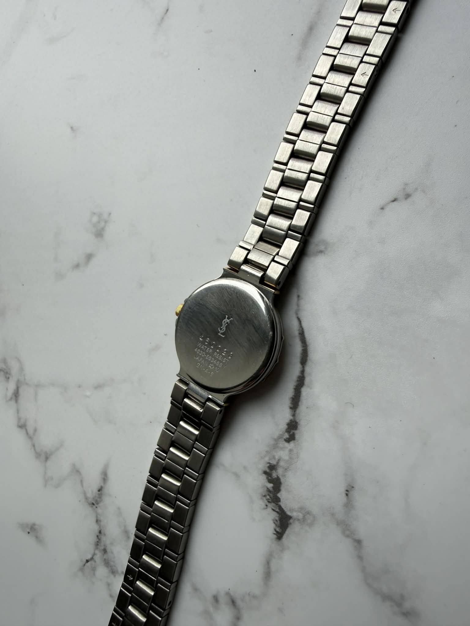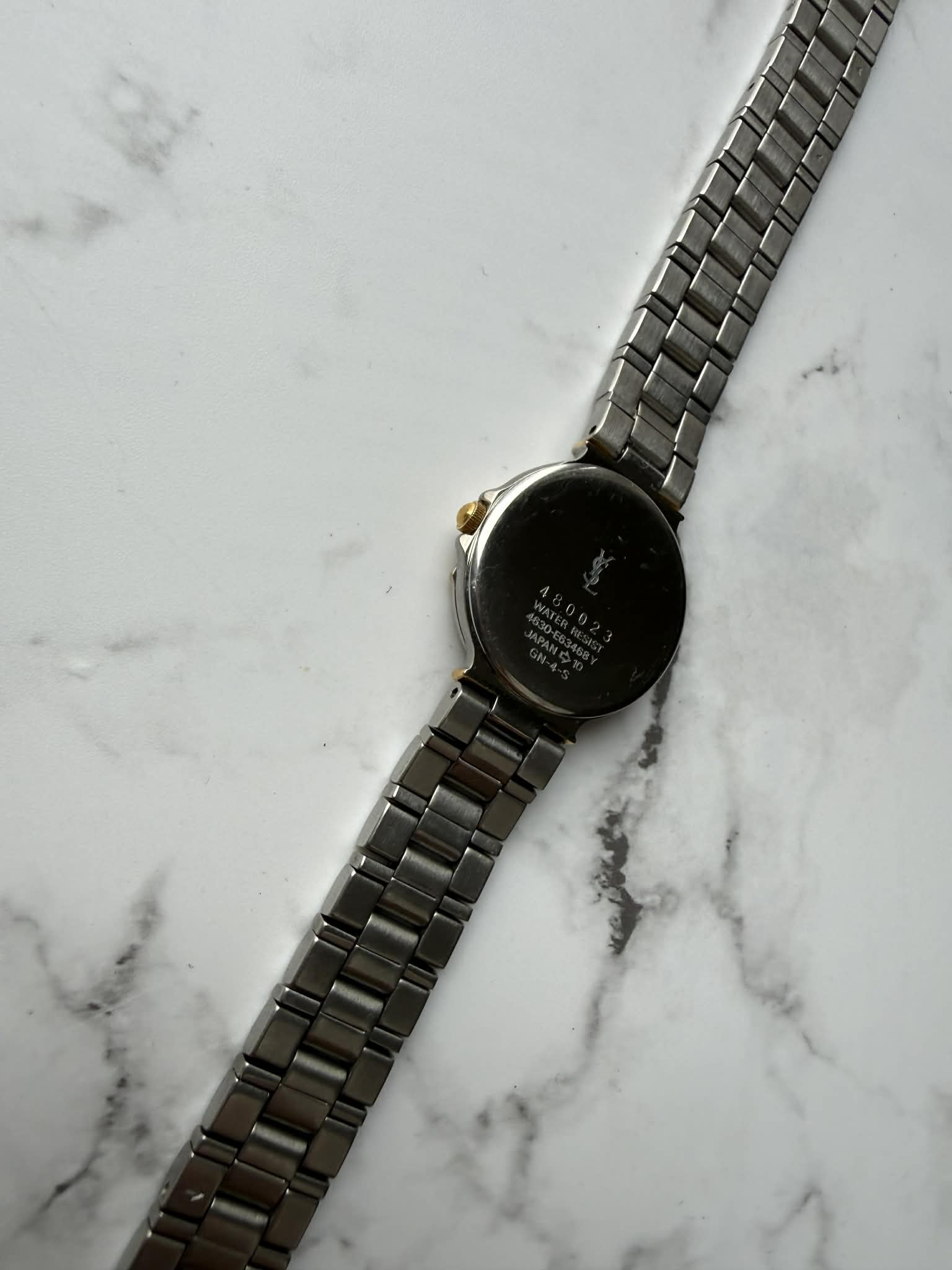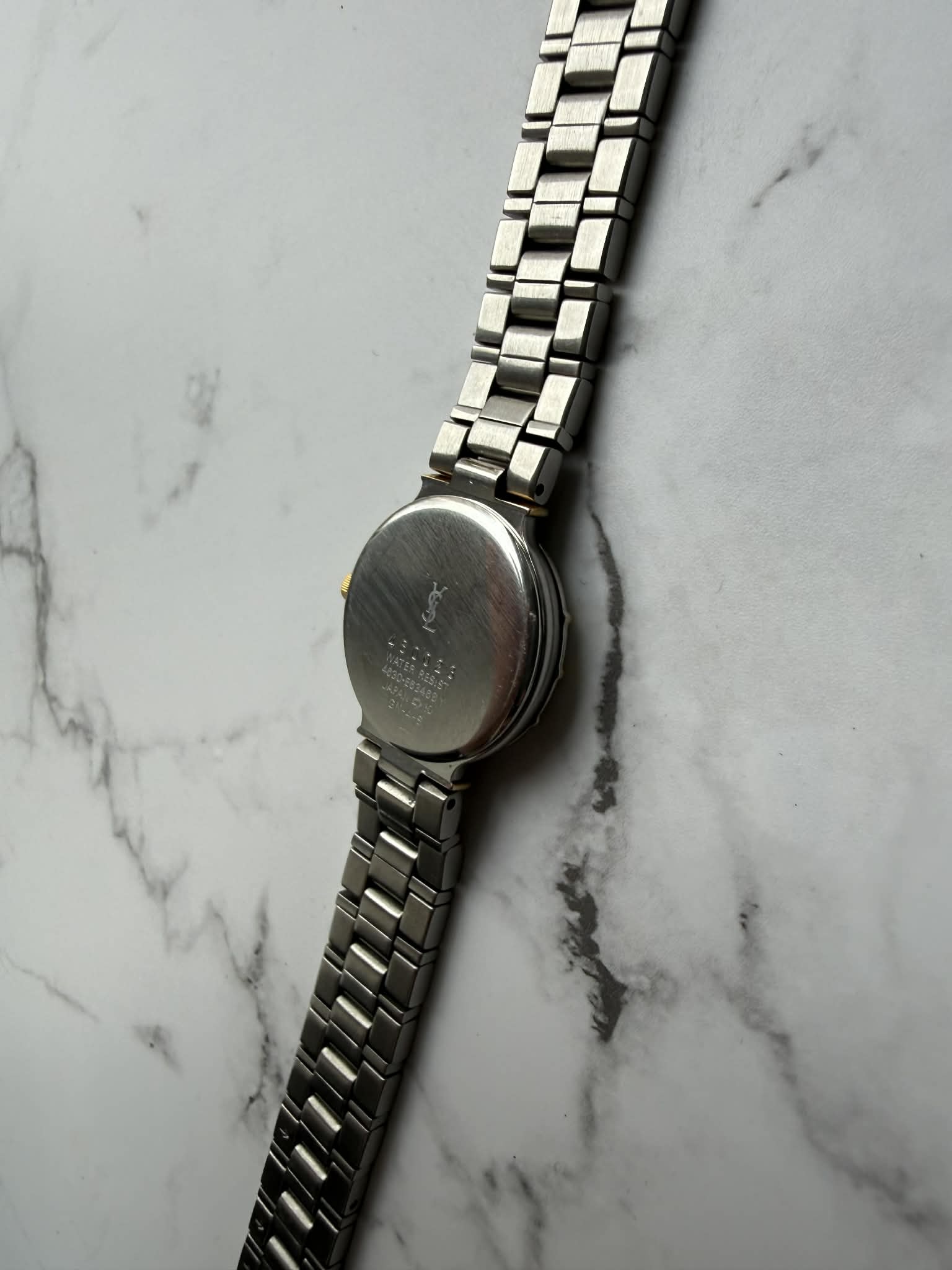 Zegarek z oryginalną, logowaną bransoletą i sprzączką YSL.